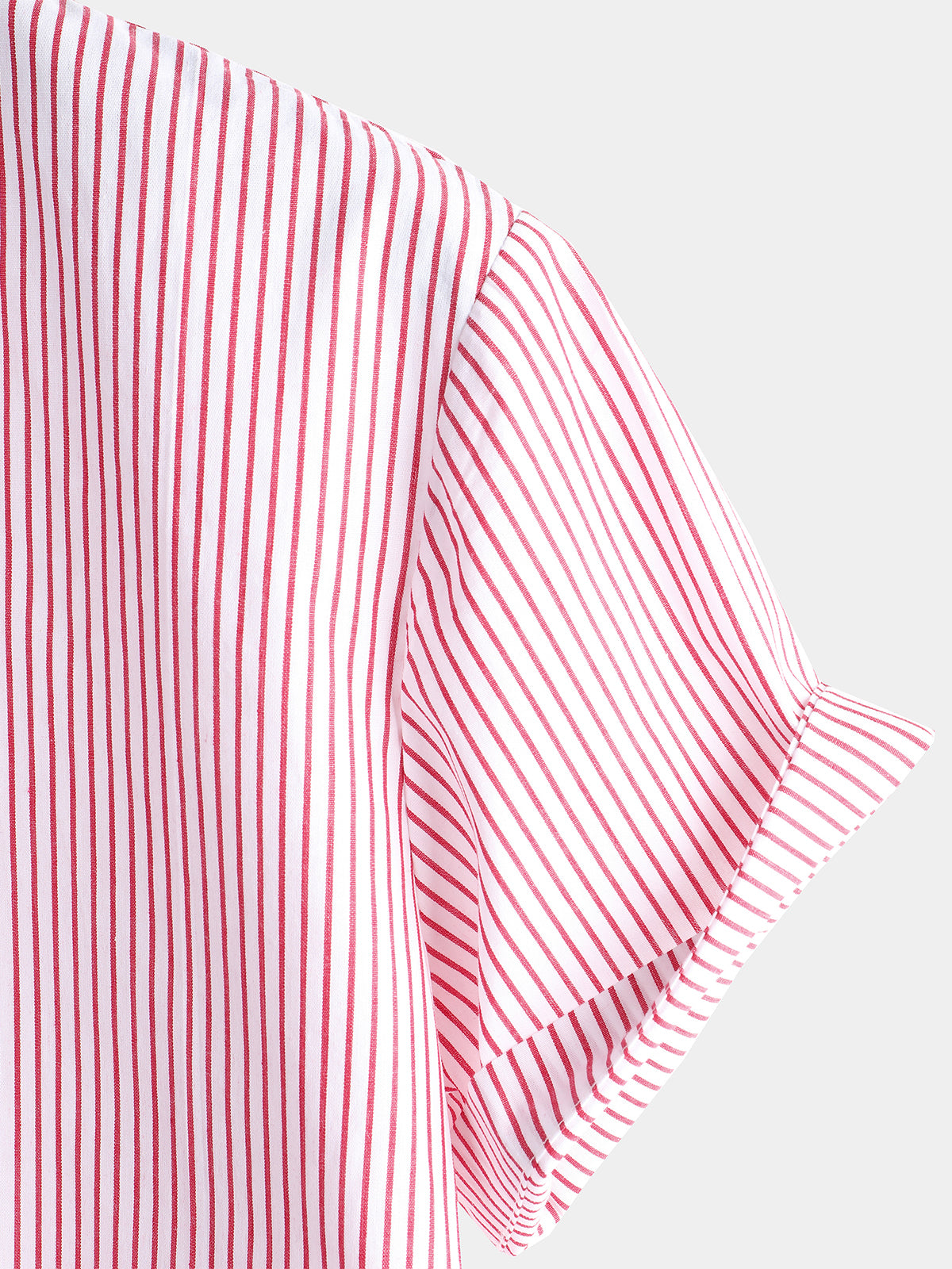 Men's Breathable Cotton Stand Collar Short Sleeve Striped Classic Shirts