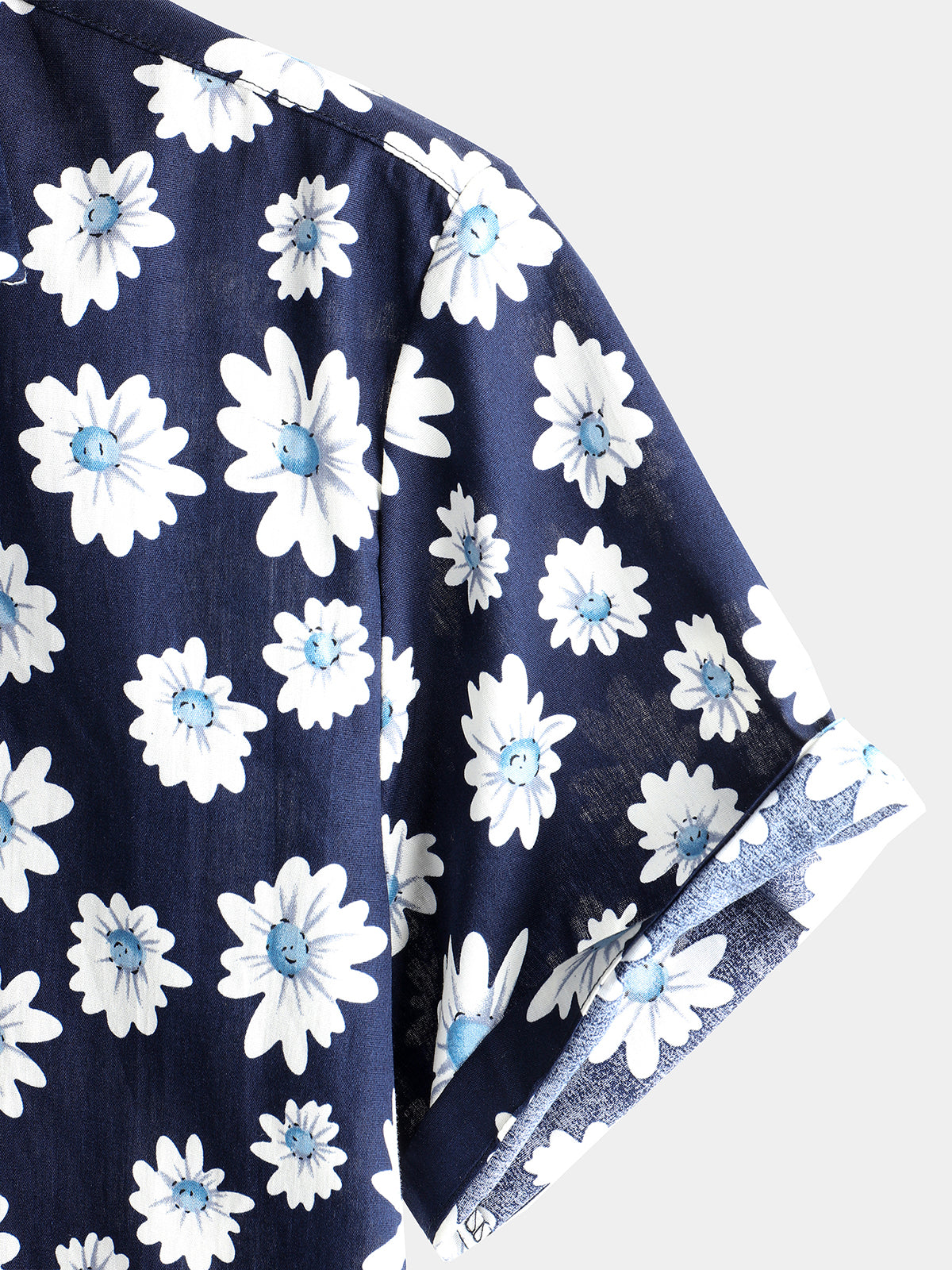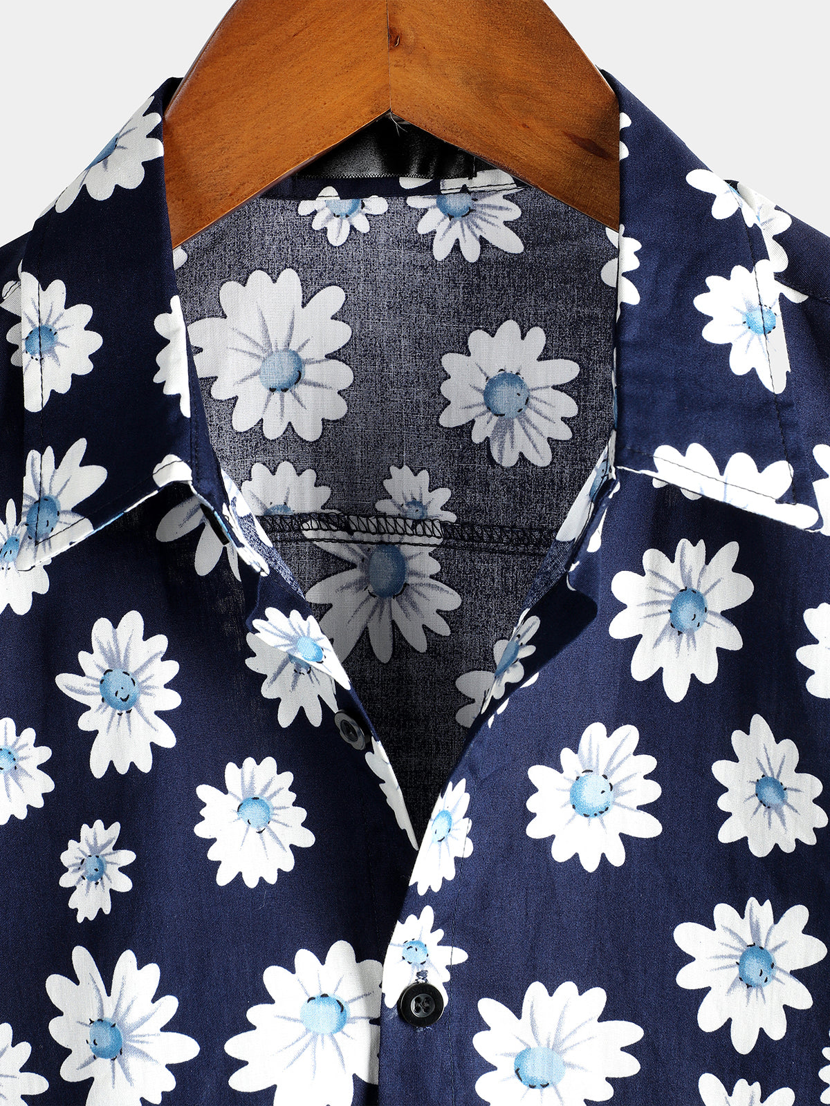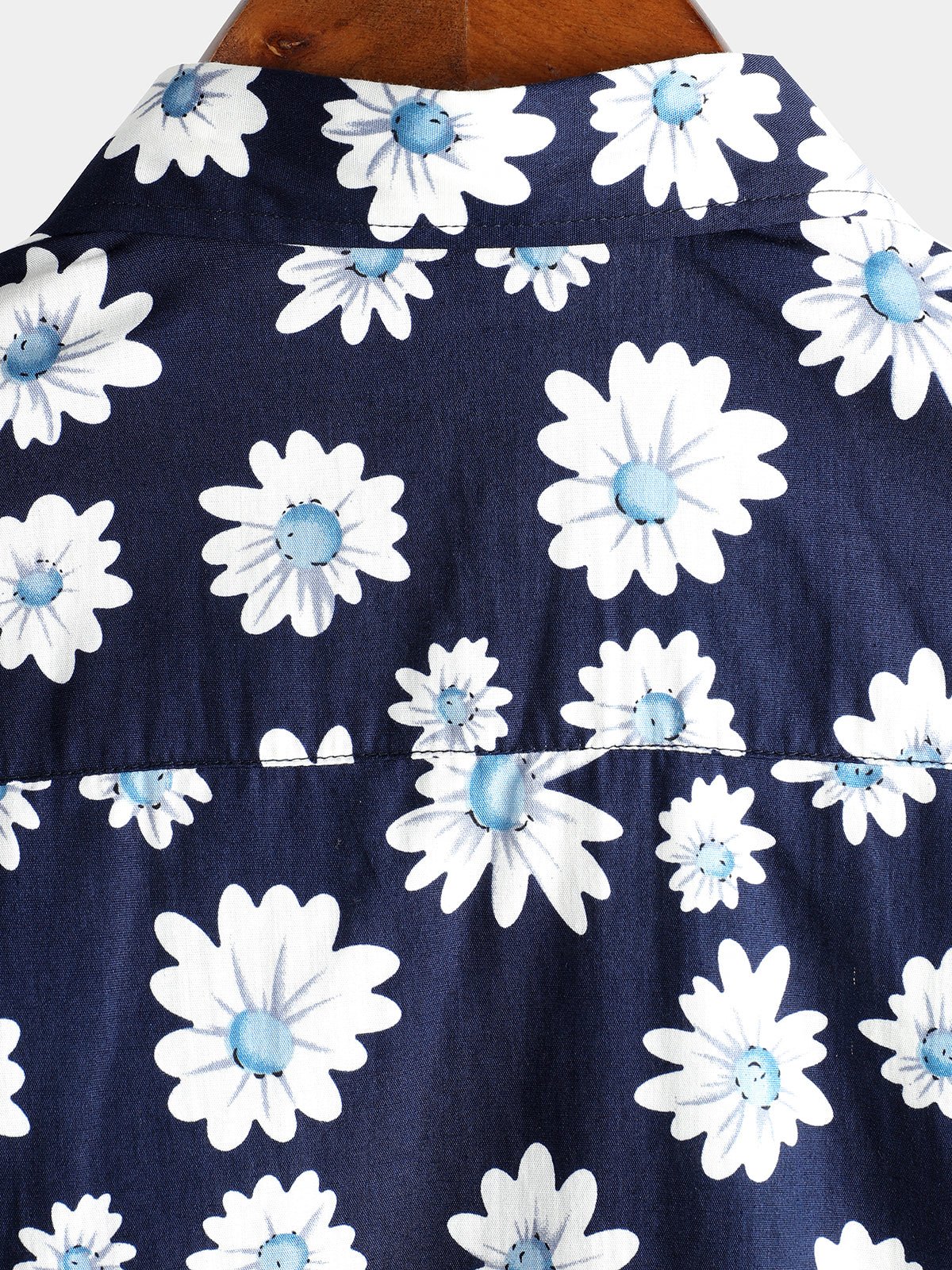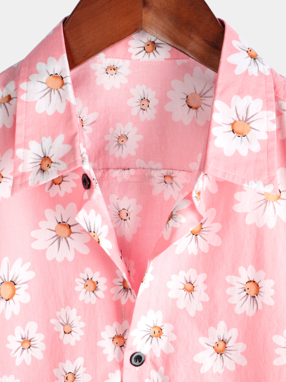 Men's Floral Daisy Print Tropical Hawaiian Cotton Flower Shirt