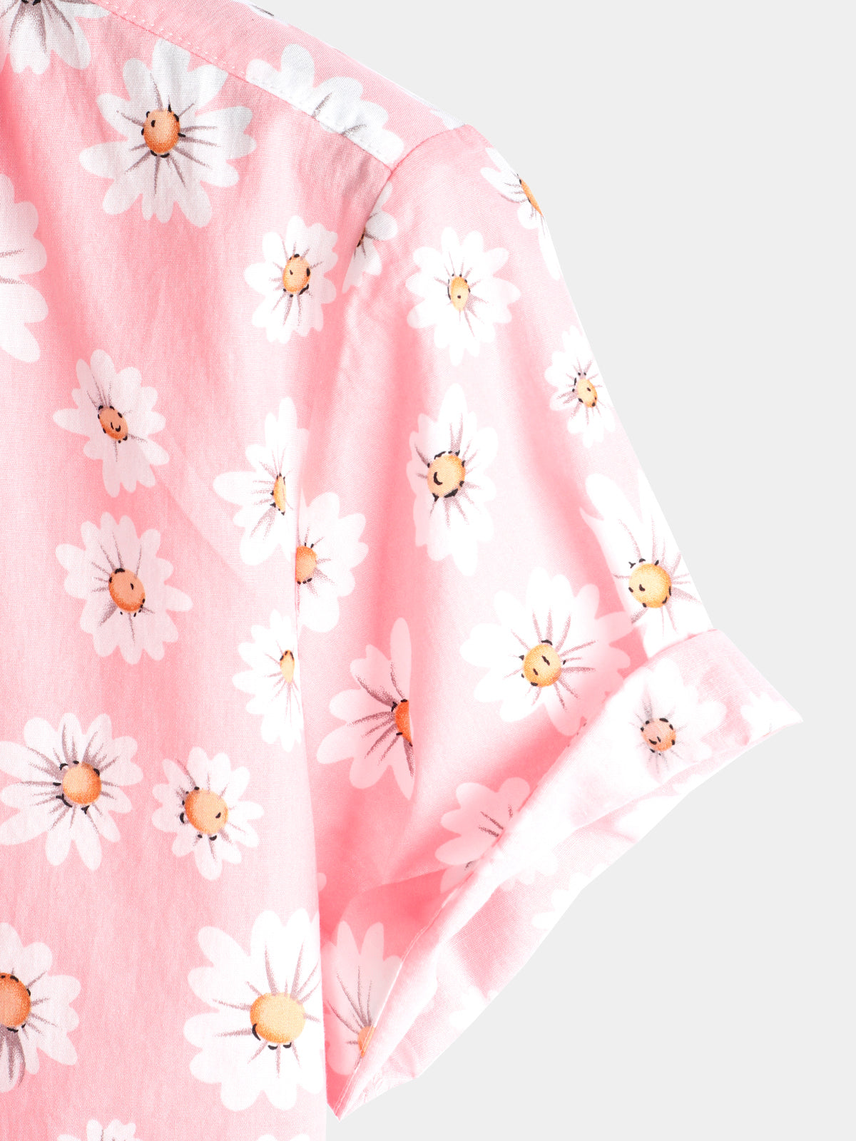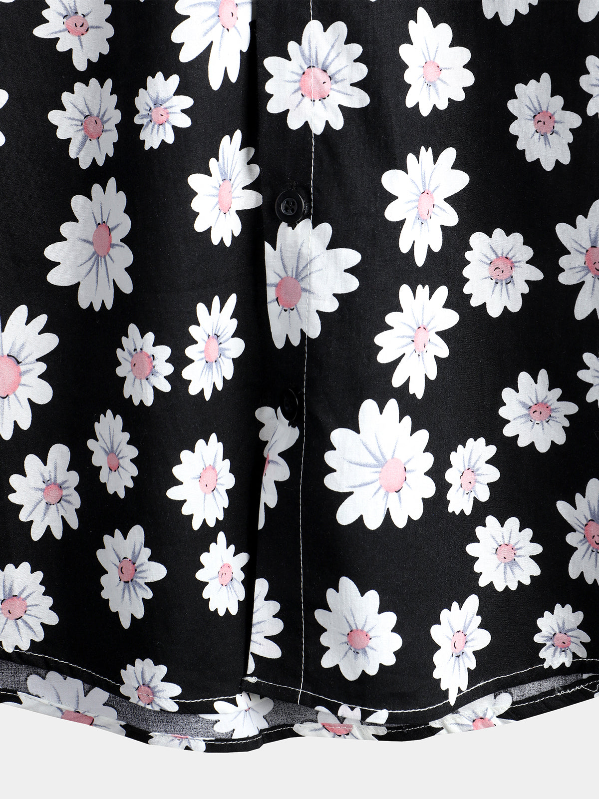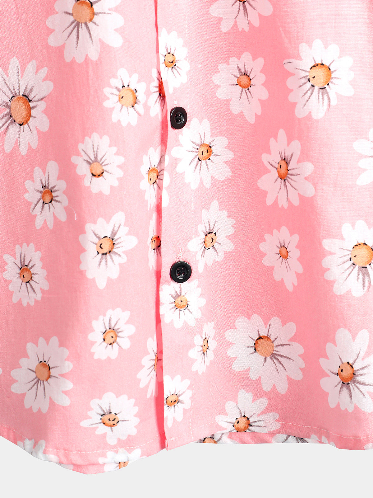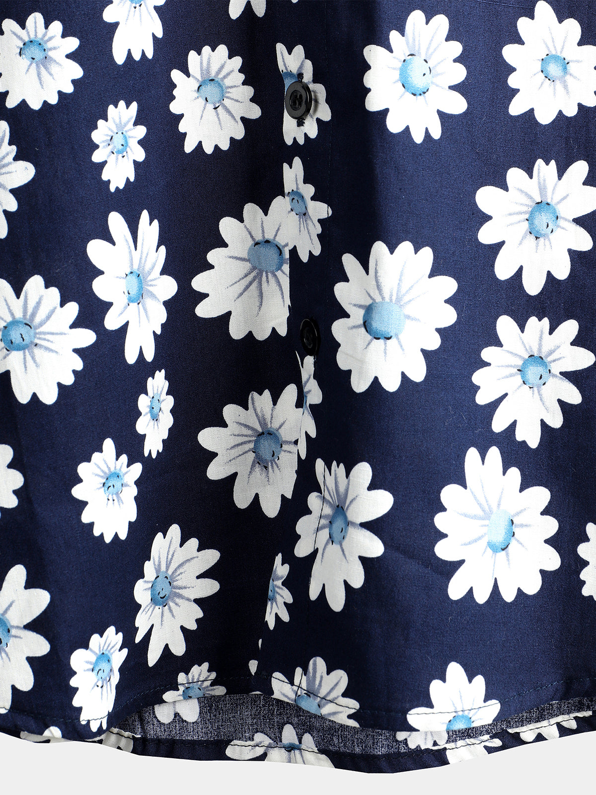 Men's Floral Daisy Print Tropical Hawaiian Cotton Flower Shirt