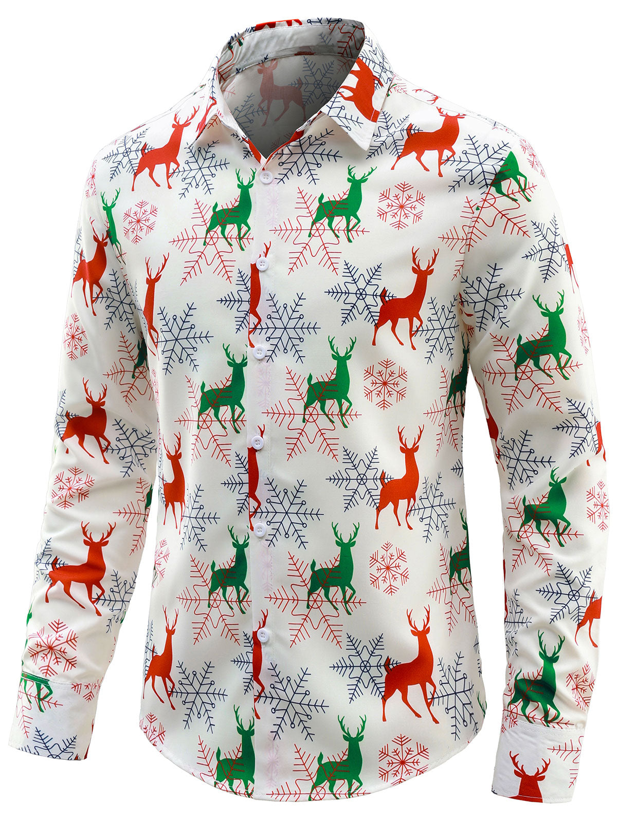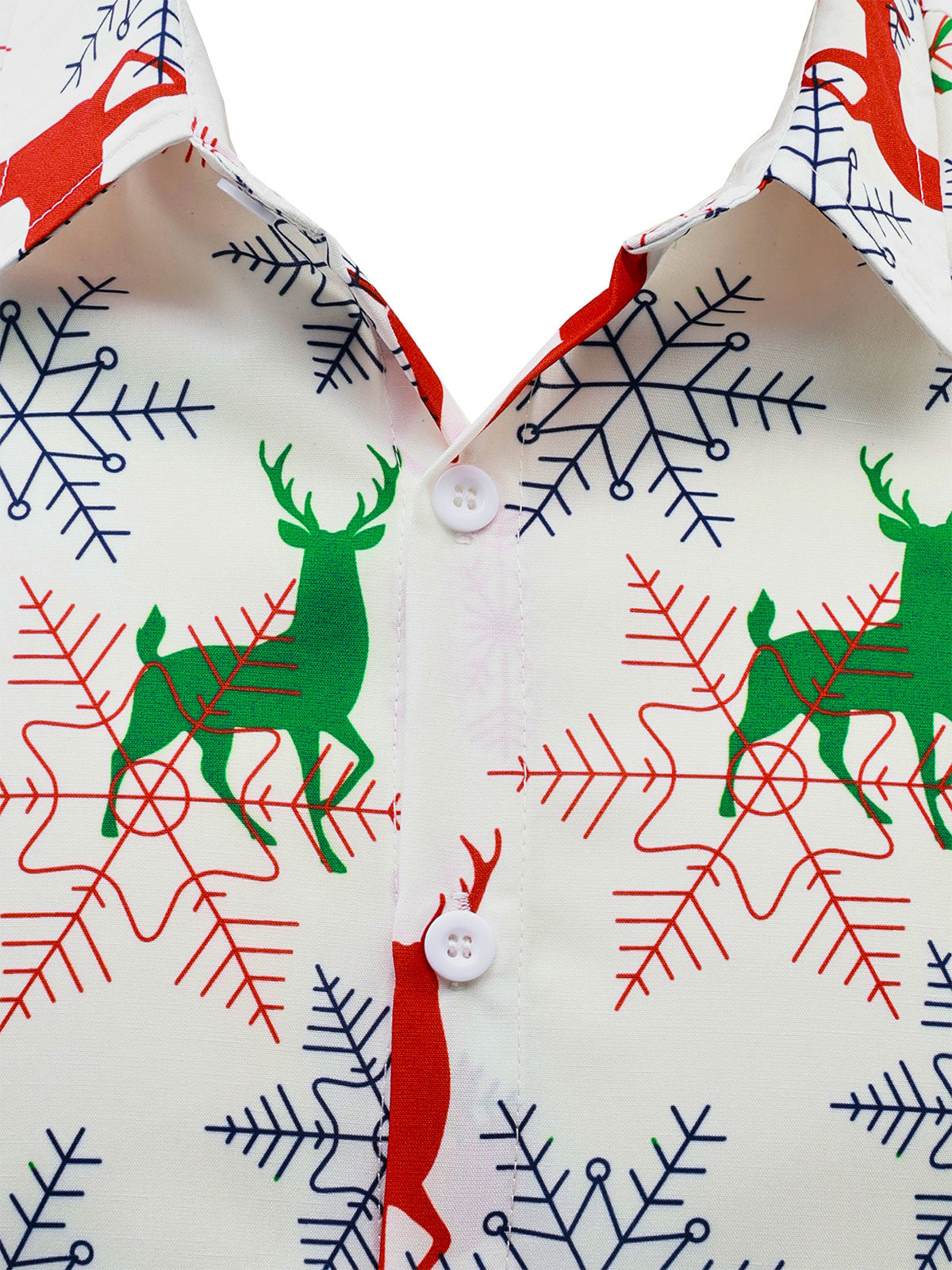 Men's Christmas Elk Holiday Button Down Long Sleeve Shirt