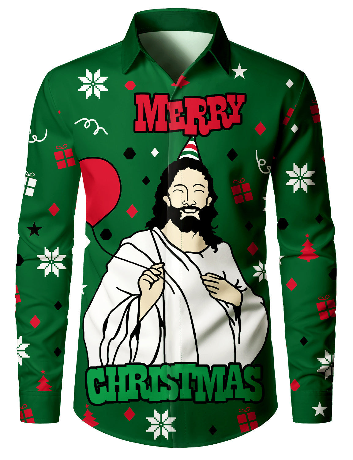 Men's Christmas Happy Birthday Jesus Long Sleeve Shirt