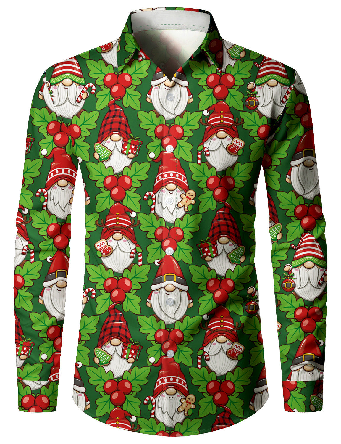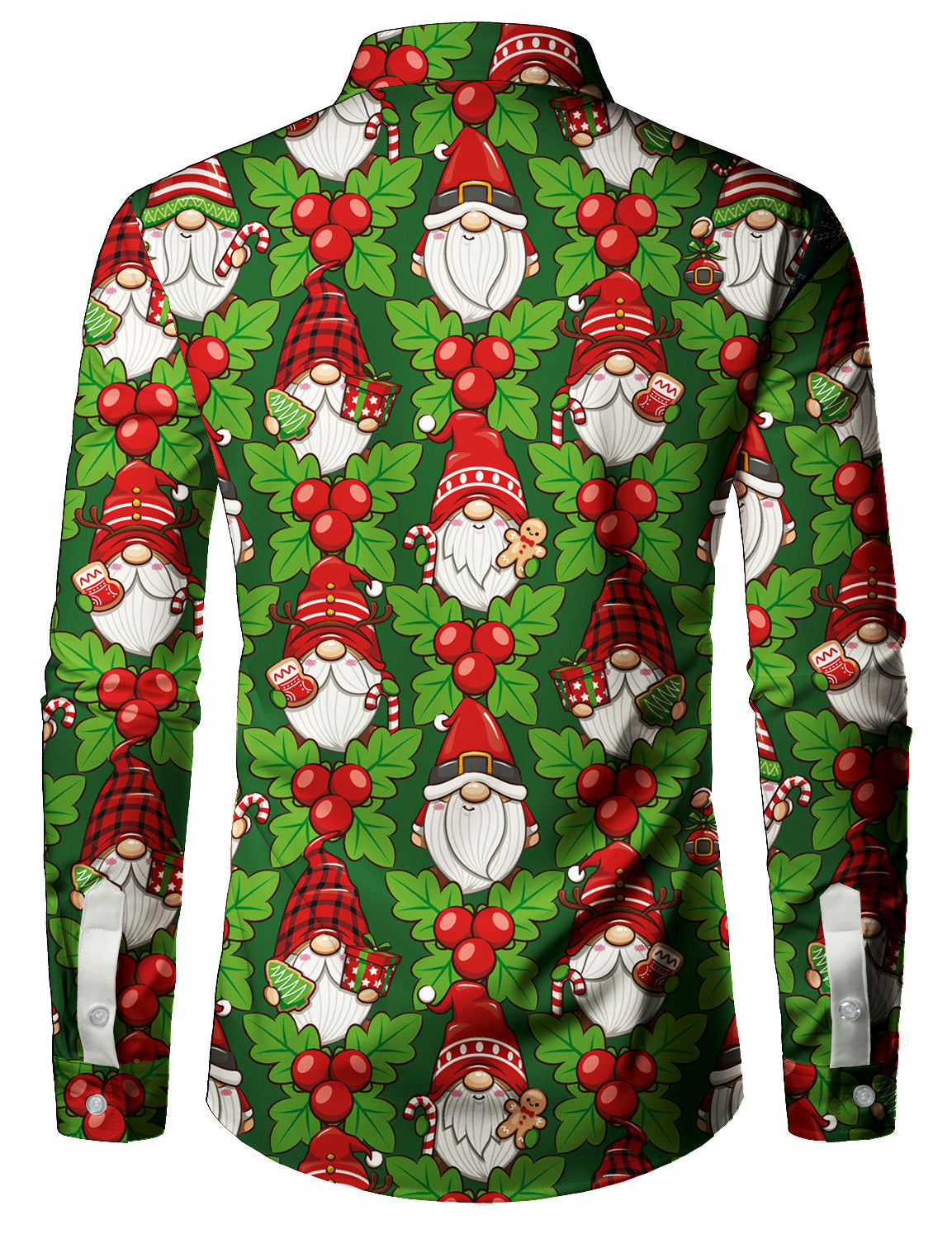 Men's Christmas Holiday Funny Gnome Print Long Sleeve Shirt
