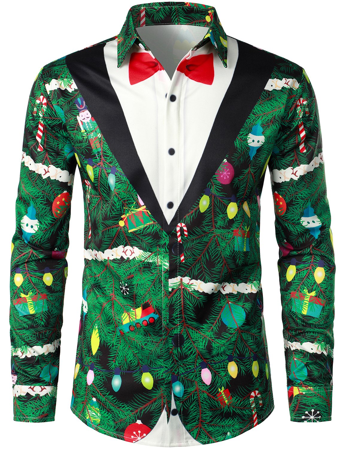 Men's Christmas Tree Camo Print Regular Fit Funny Outfit Themed Top Long Sleeve Shirt