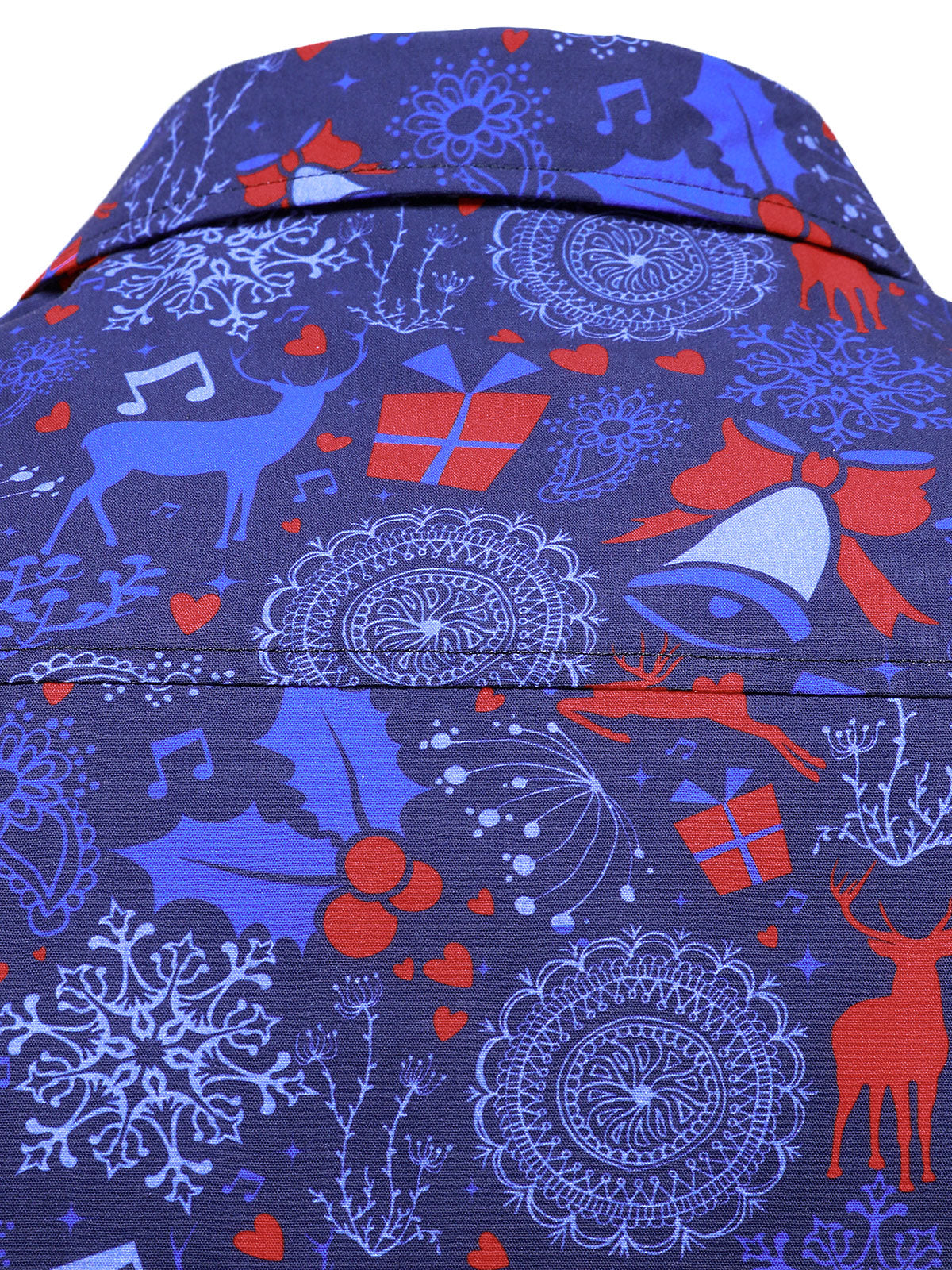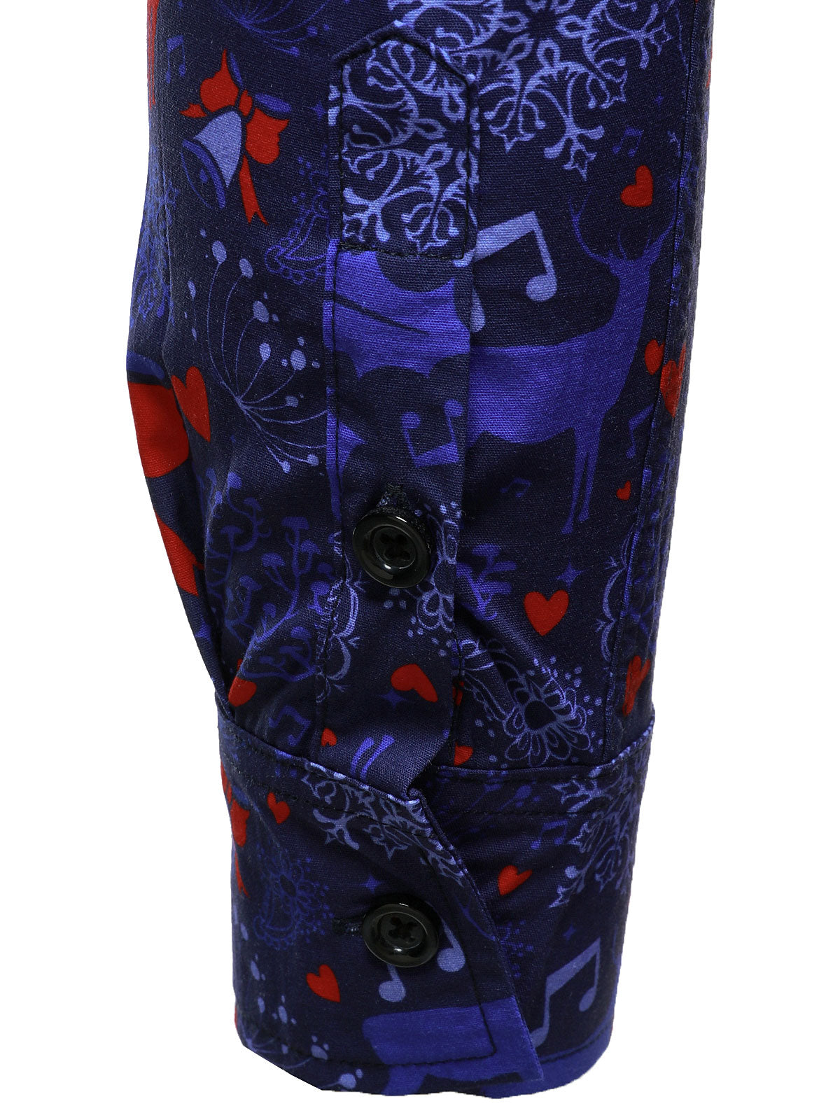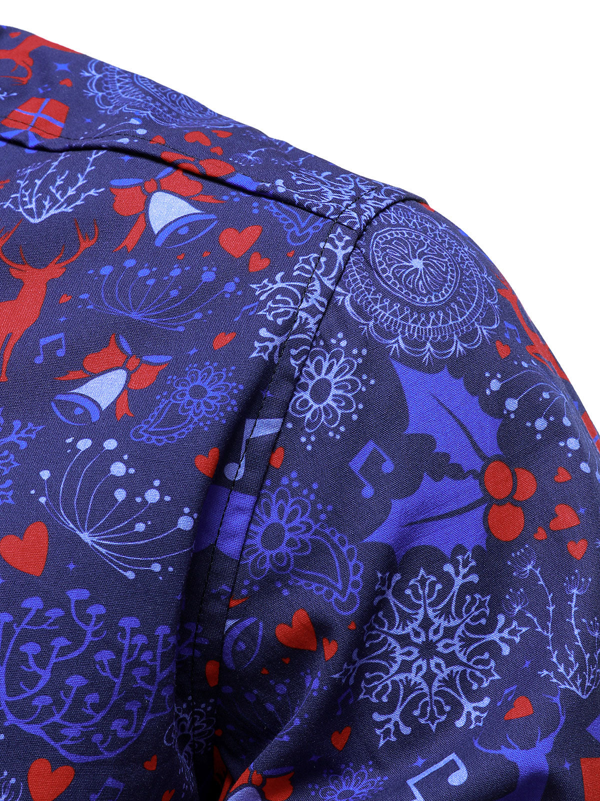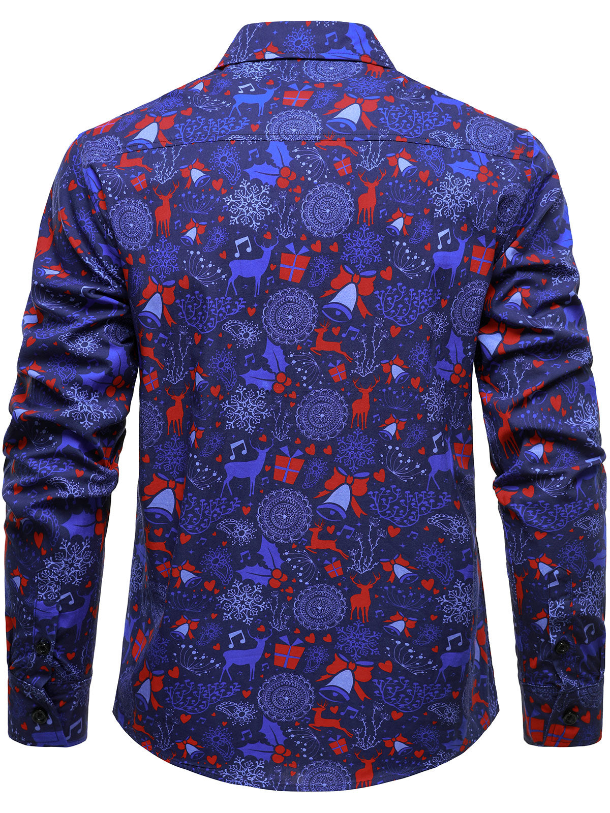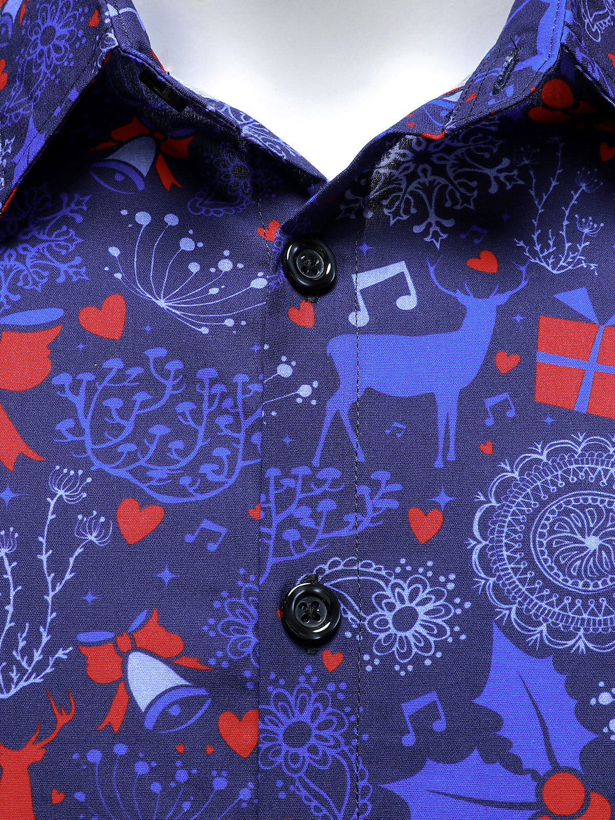 Men's Christmas Reindeer Festive Print Xmas Holiday Purple Long Sleeve Shirt