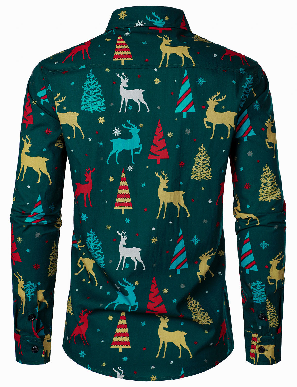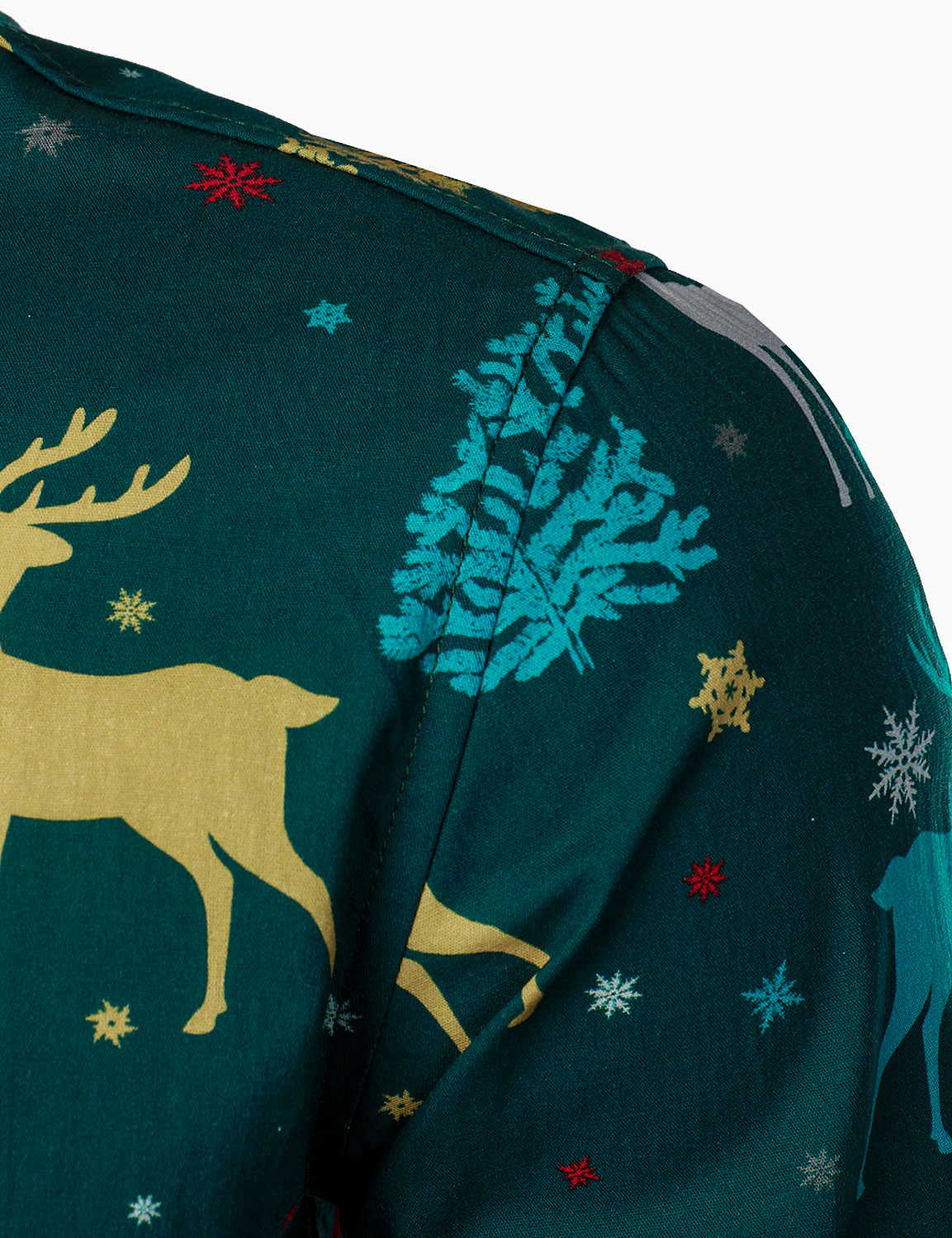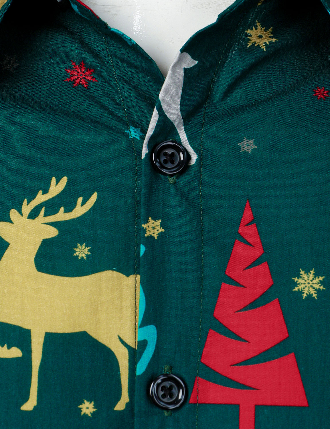 Men's Christmas Reindeer Holiday Green Cotton Long Sleeve Shirt