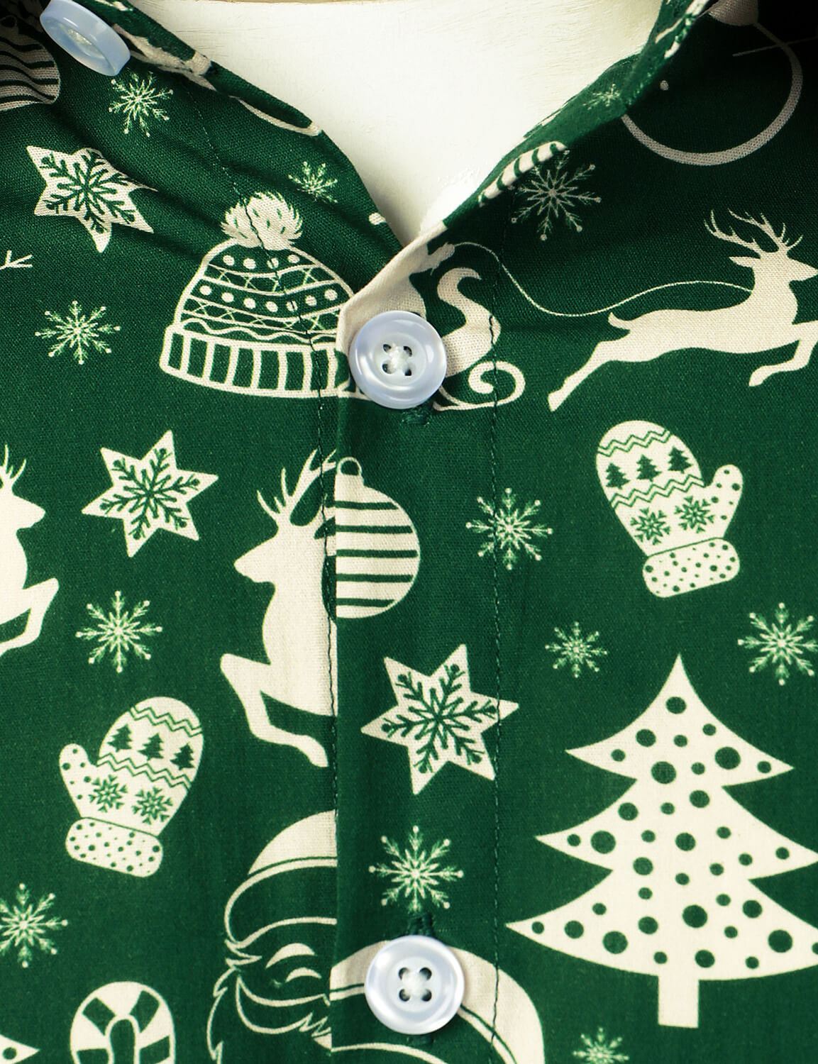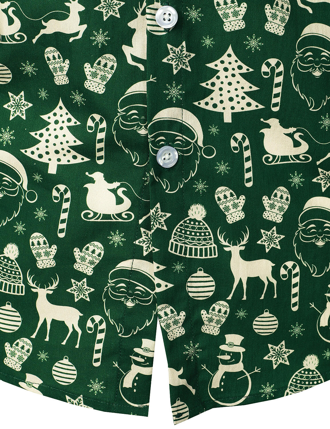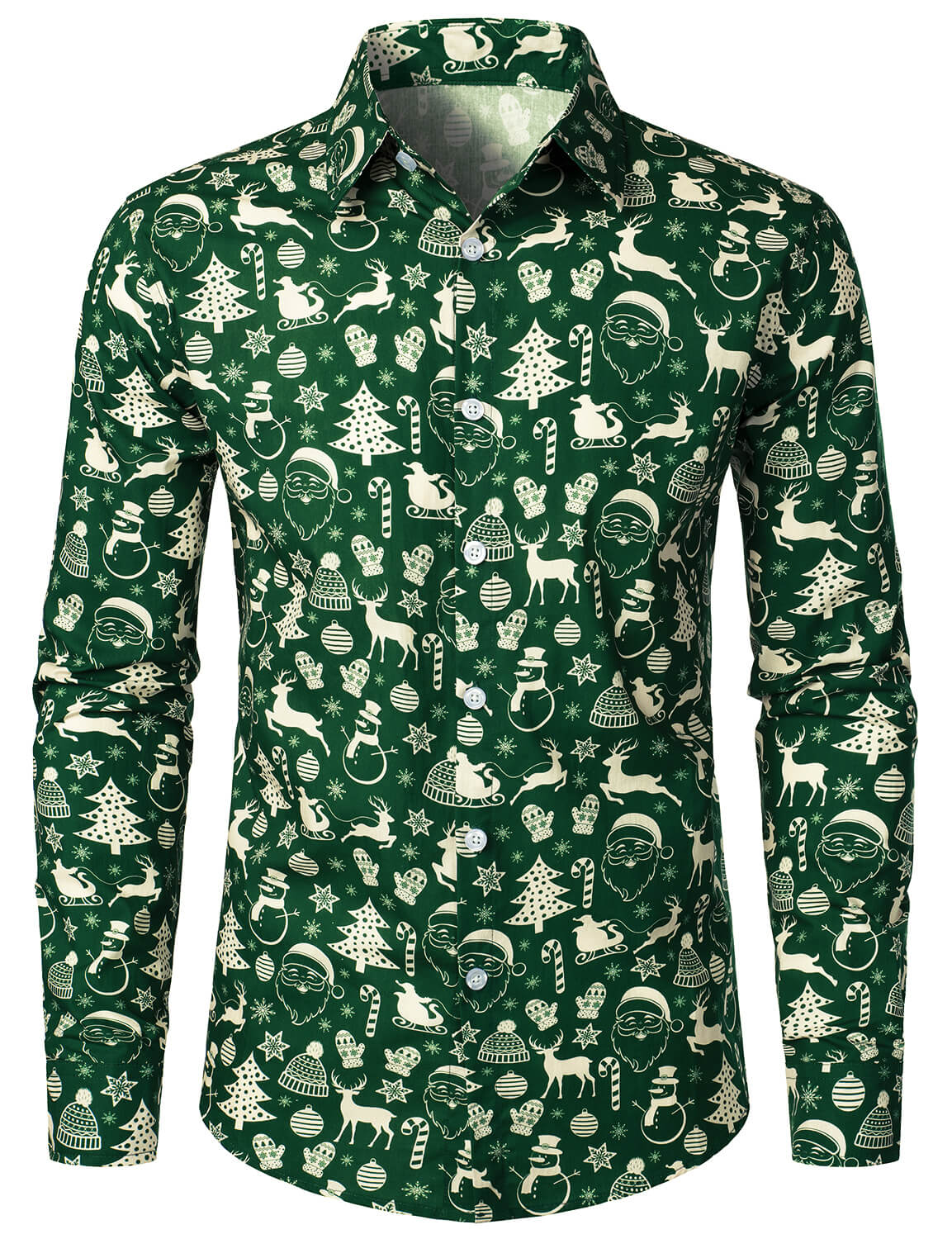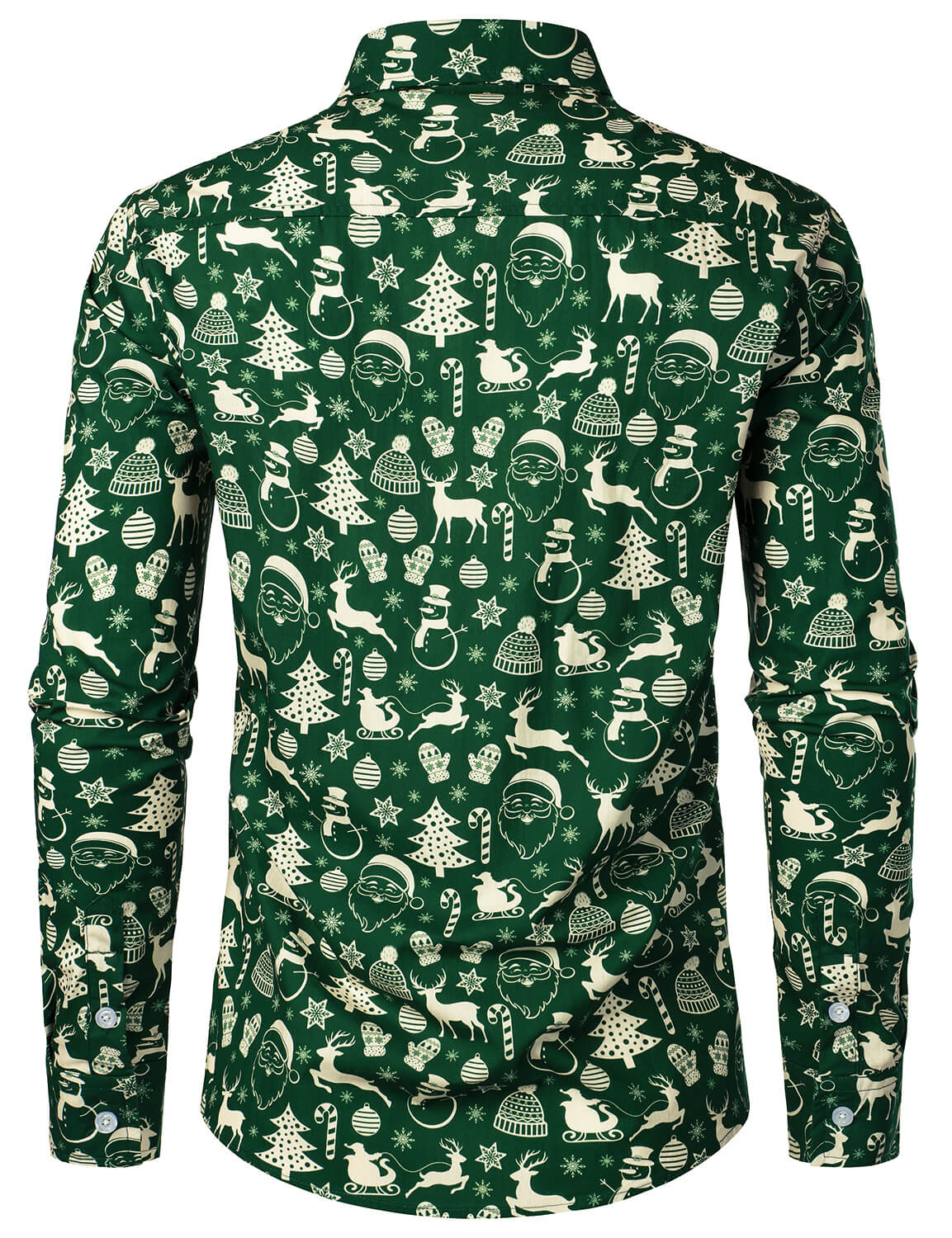 Men's Christmas Santa Claus Print Cotton Holiday Long Sleeve Shirt