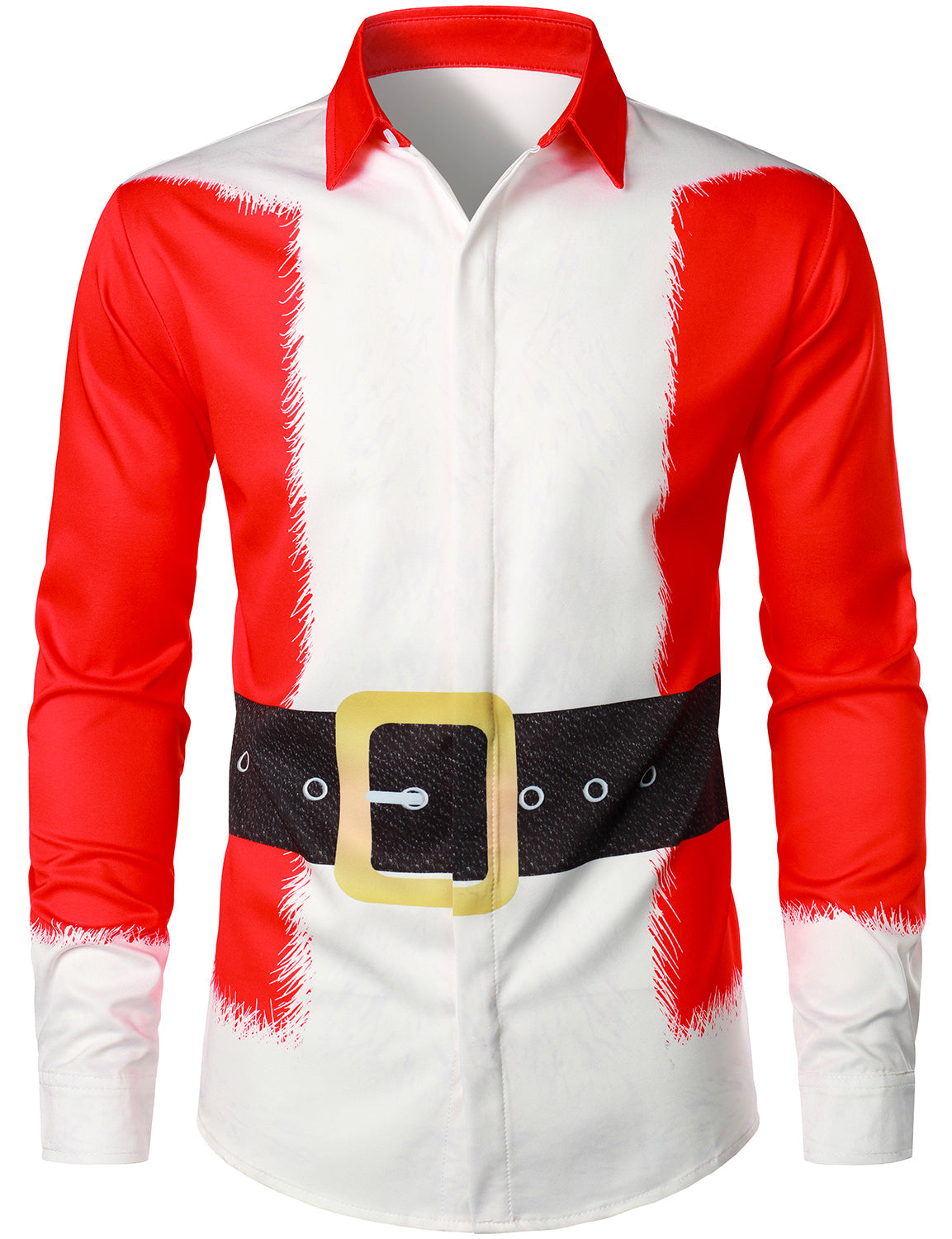 Men's Christmas Santa Claus Xmas Costume Red Funny Outfit Long Sleeve Shirt
