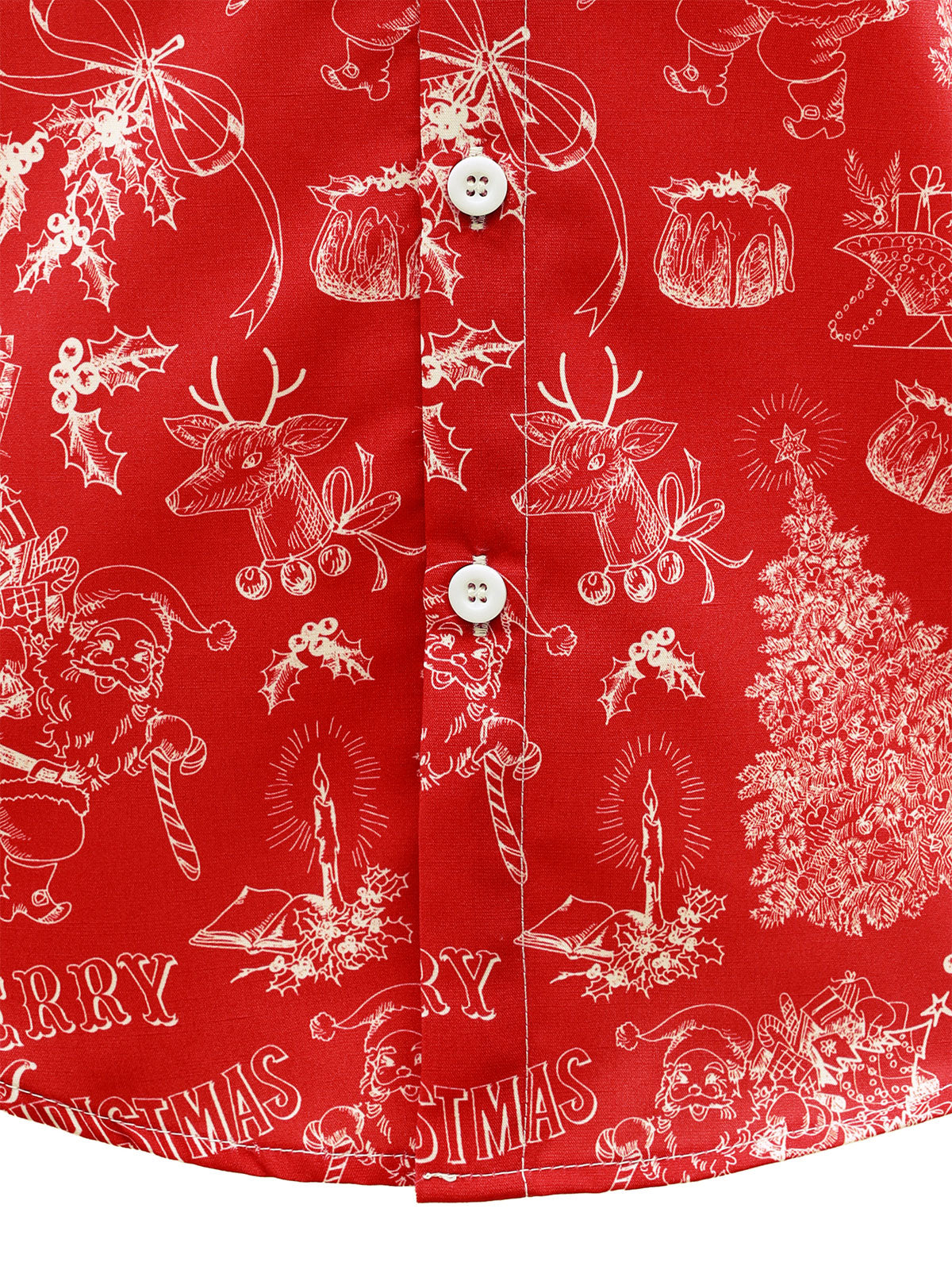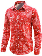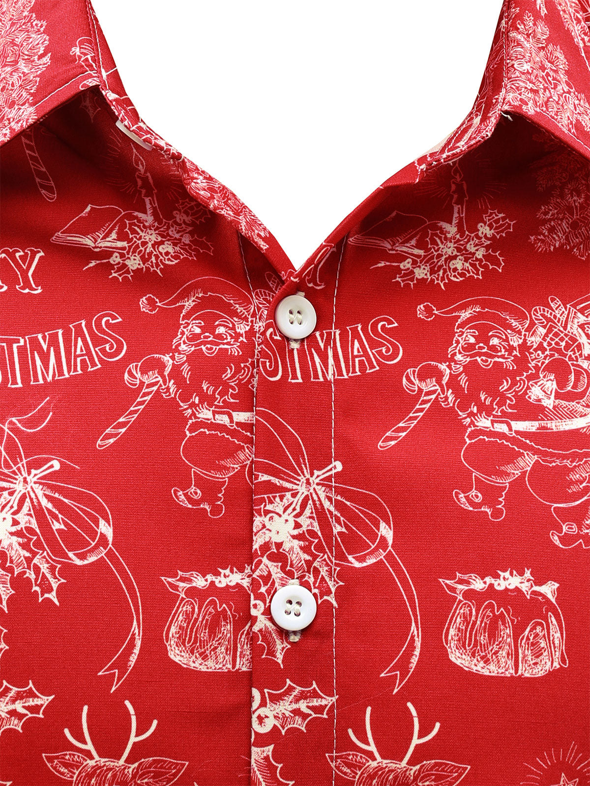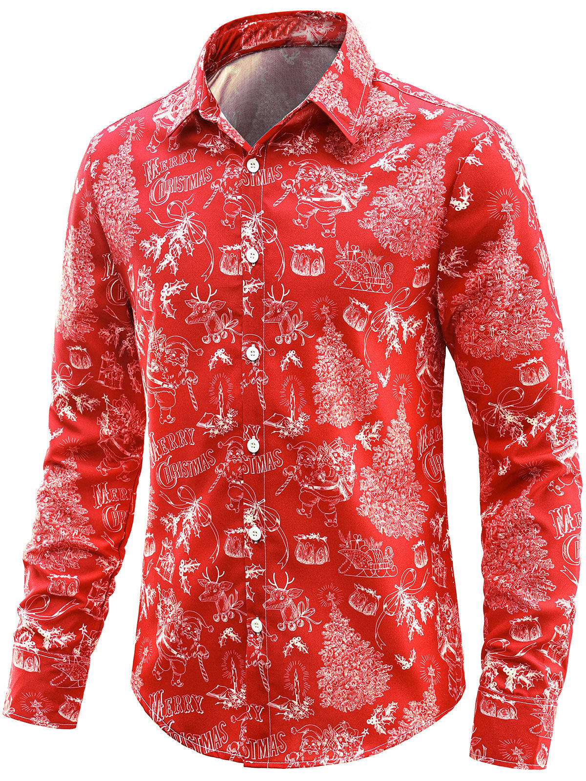 Men's Christmas Santa Elk Holiday Button Down Long Sleeve Shirt