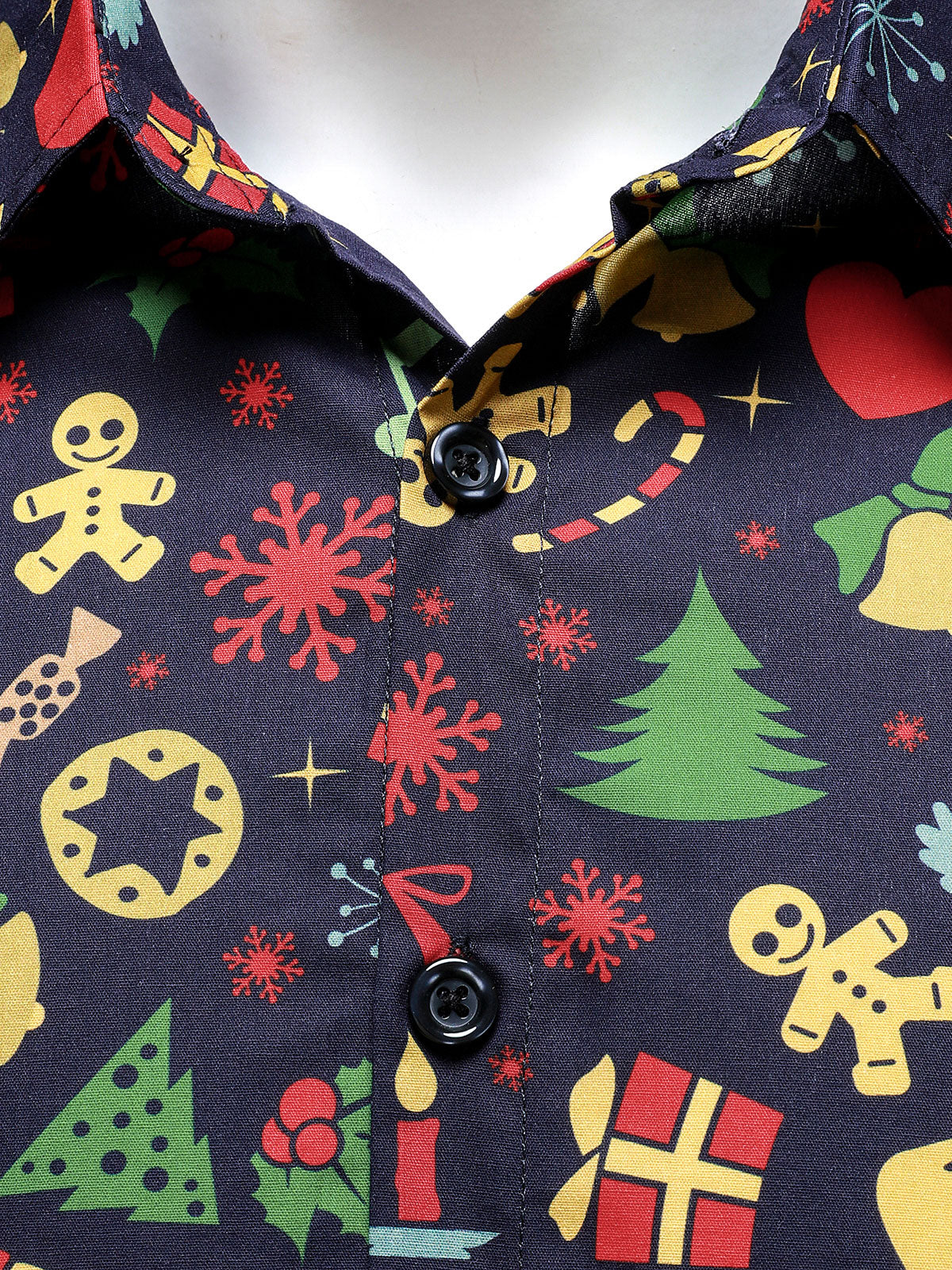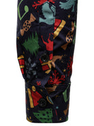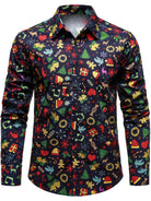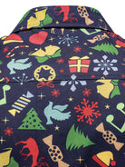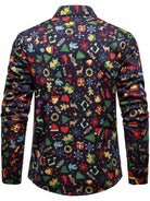 Men's Christmas Themed Festive Prints Navy Blue Long Sleeve Shirt