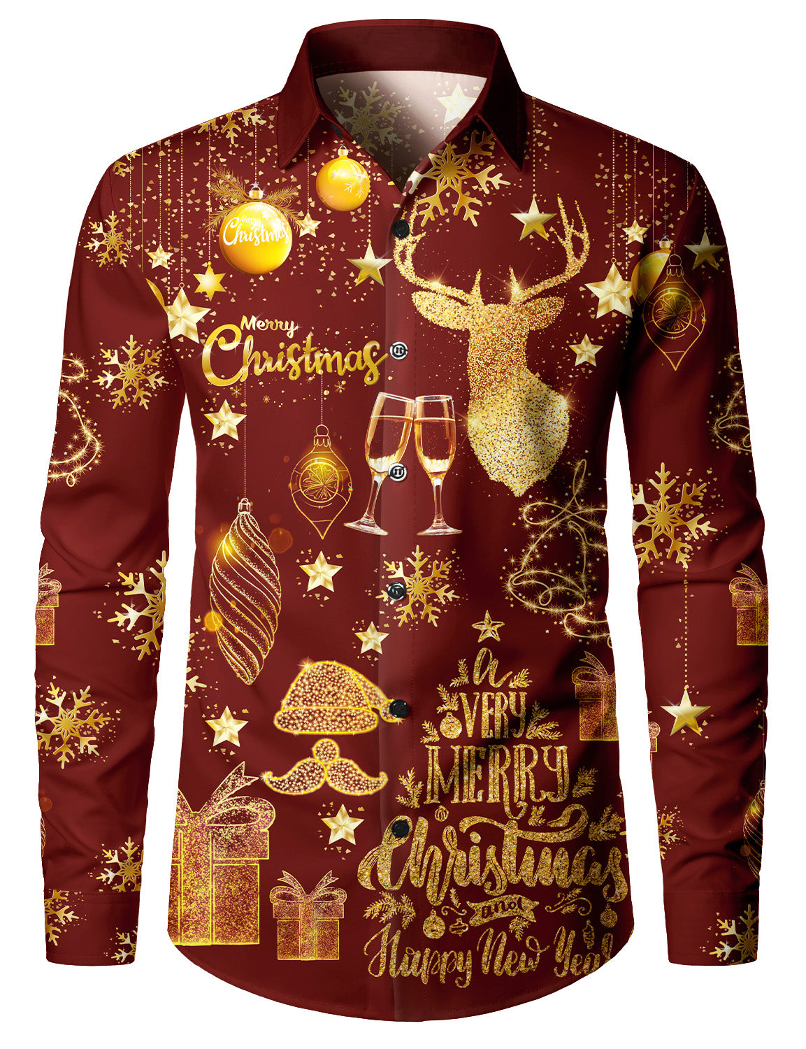 Men's Christmas Themed Funny Red Long Sleeve Shirt