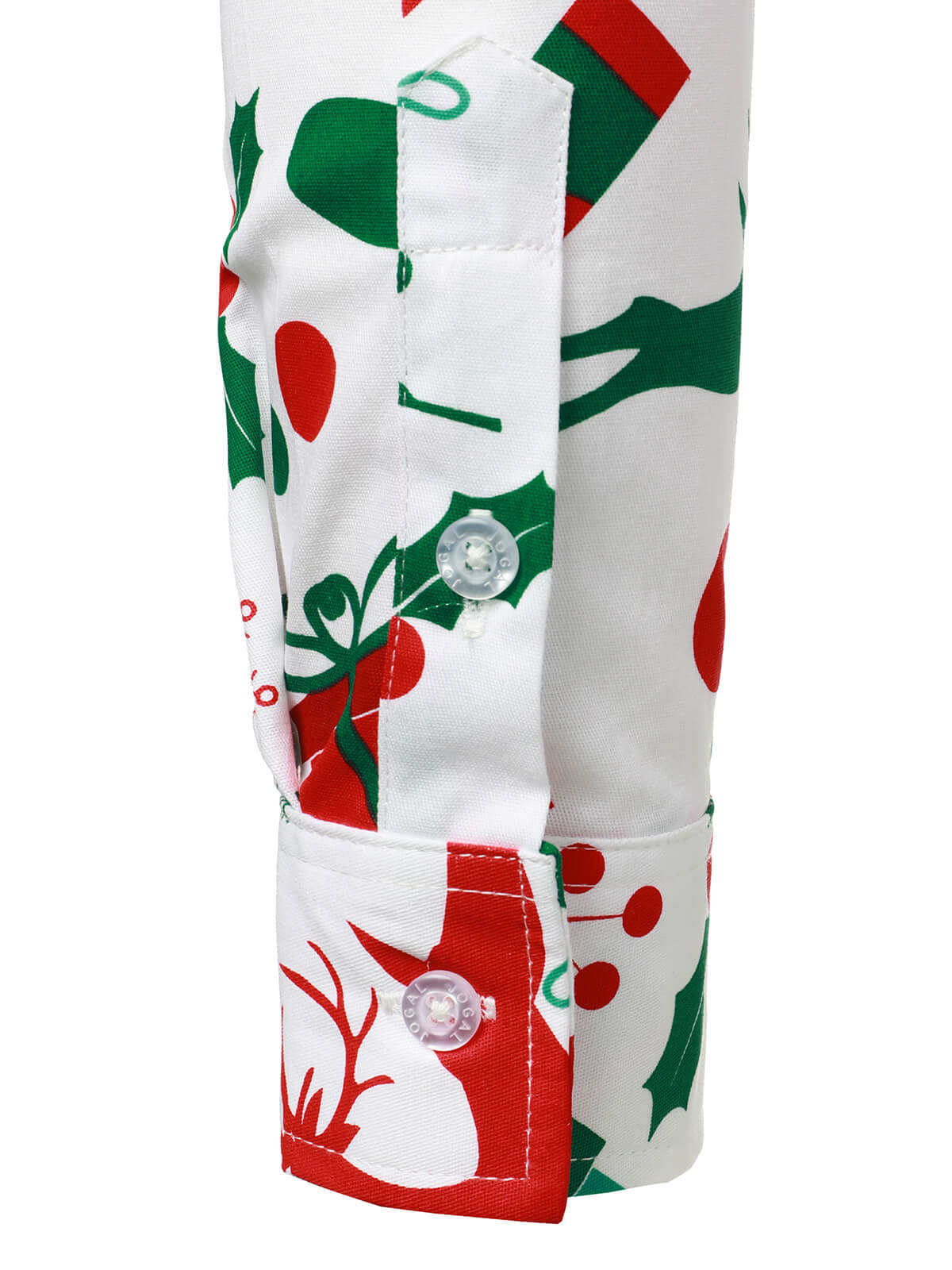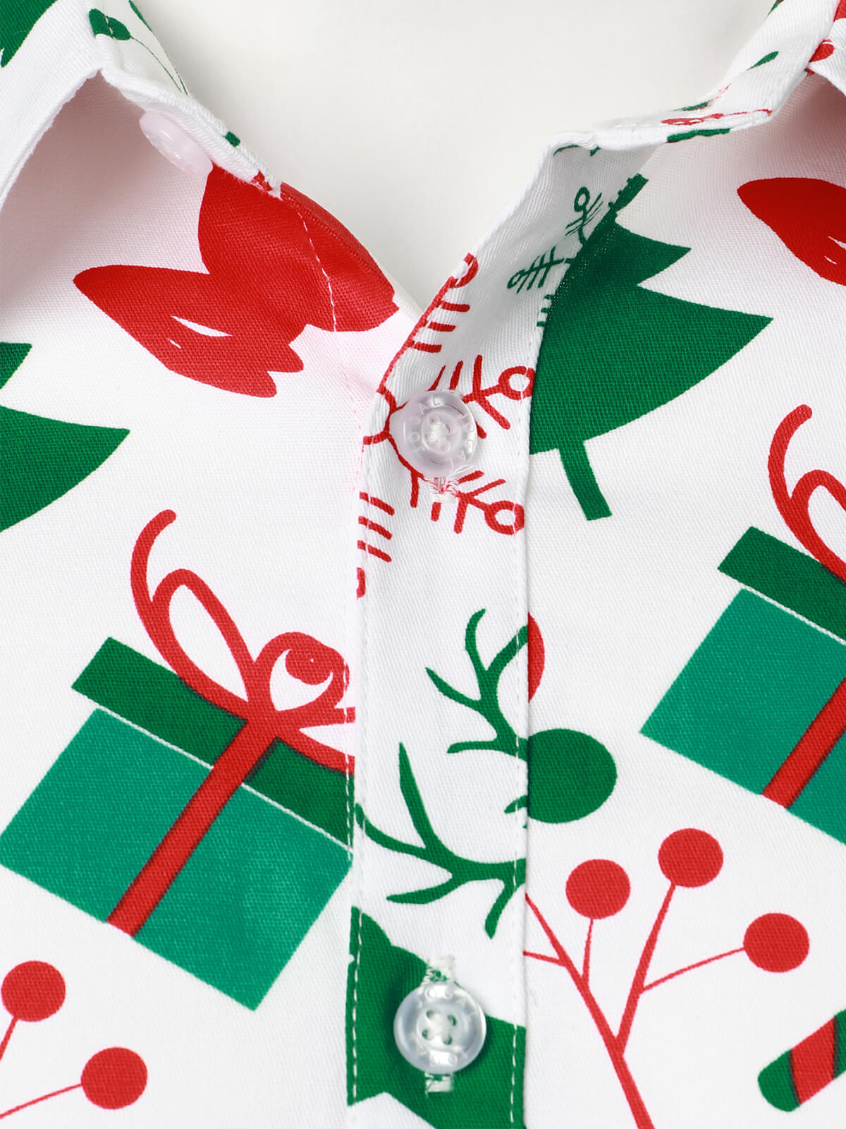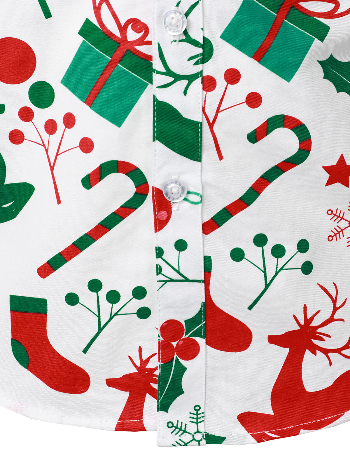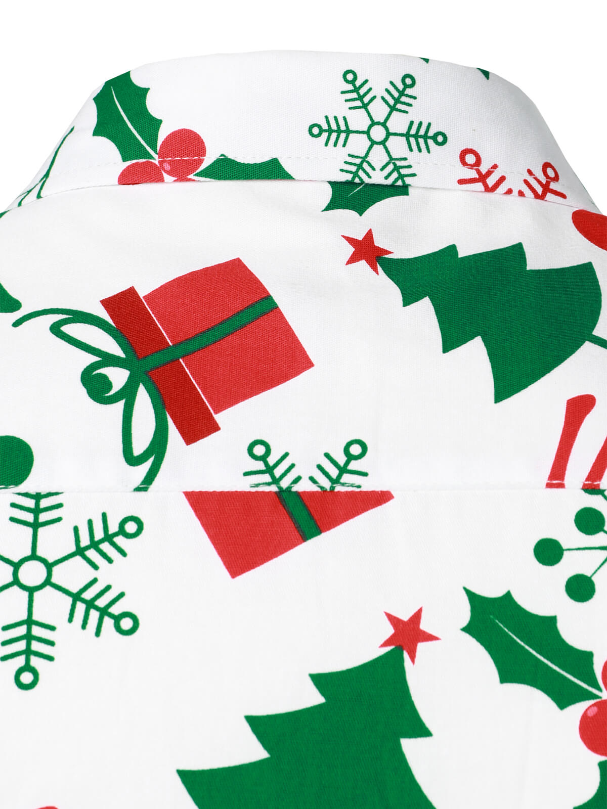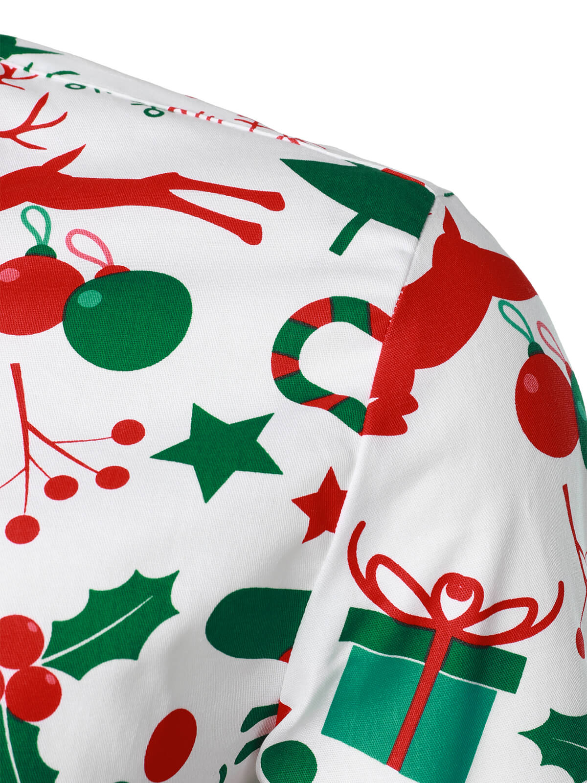 Men's Christmas Tree Gift Ornament Print Button Up Long Sleeve Shirt