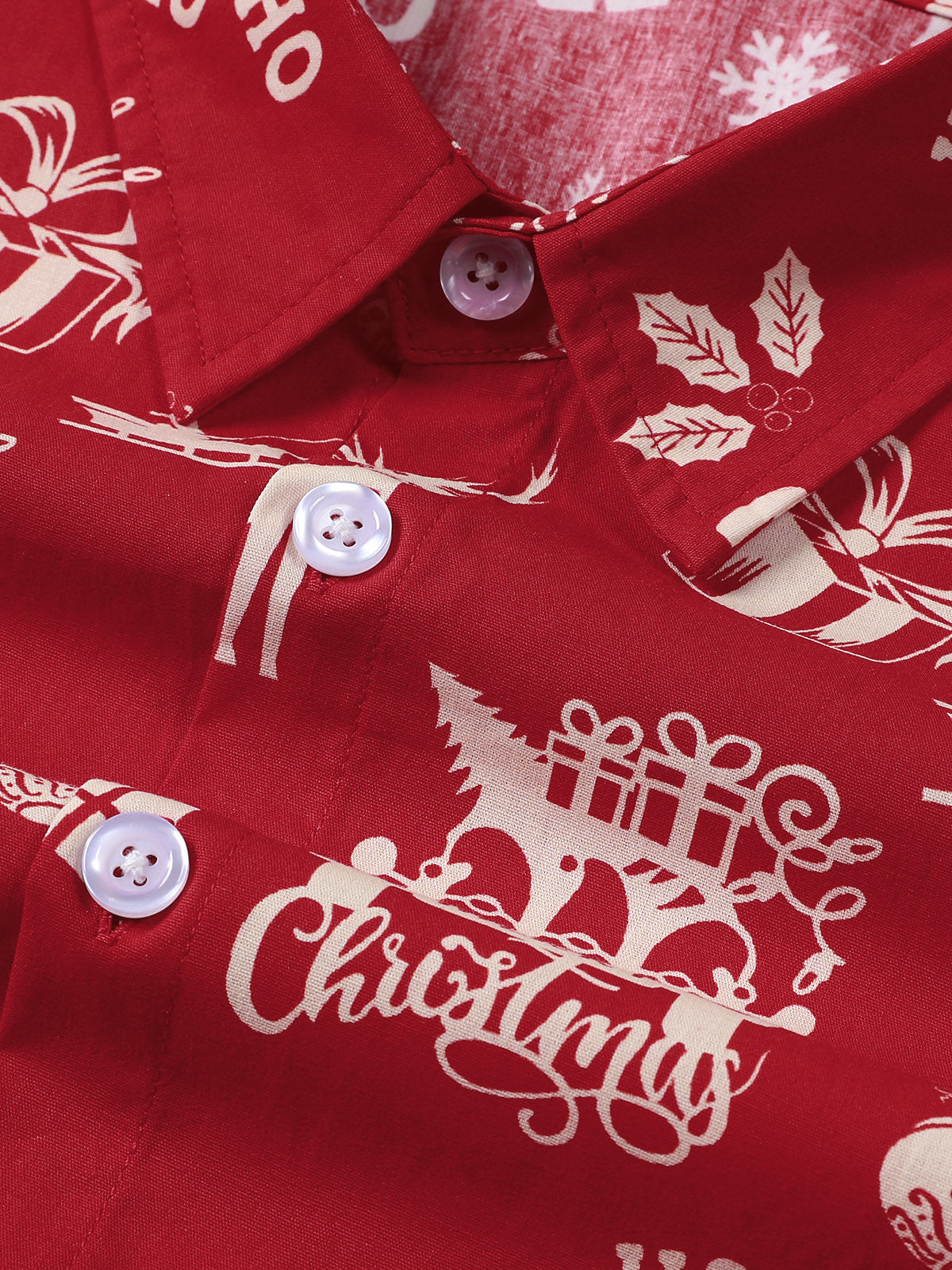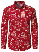 Men's Christmas Vintage Cotton Red Long Sleeve Shirt