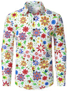 Men's Colorful 70s Floral Print Disco Long Sleeve Shirt