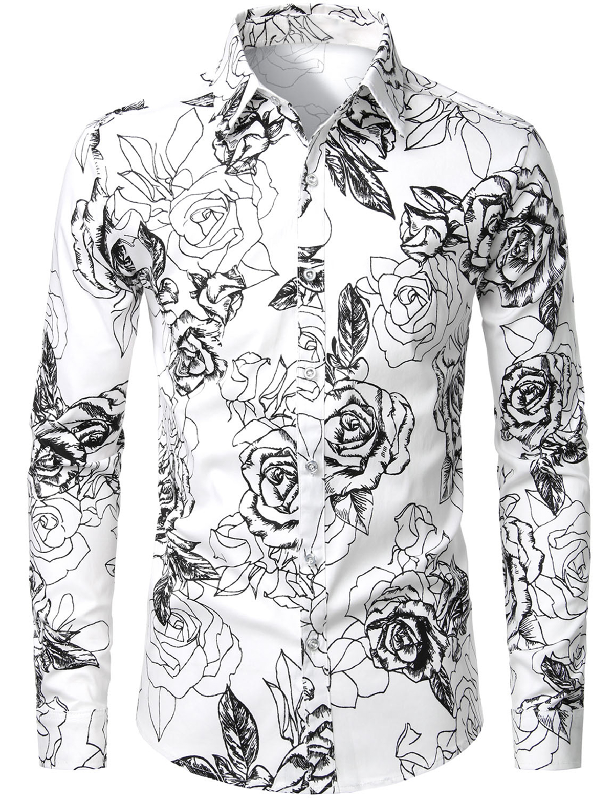 Men's Floral Long Sleeve Cotton Casual Button Down Shirt