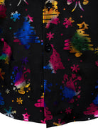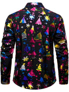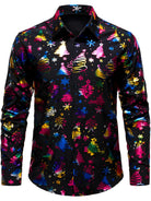 Men's Gold Christmas Print Regular Fit Black Long Sleeve Shirt