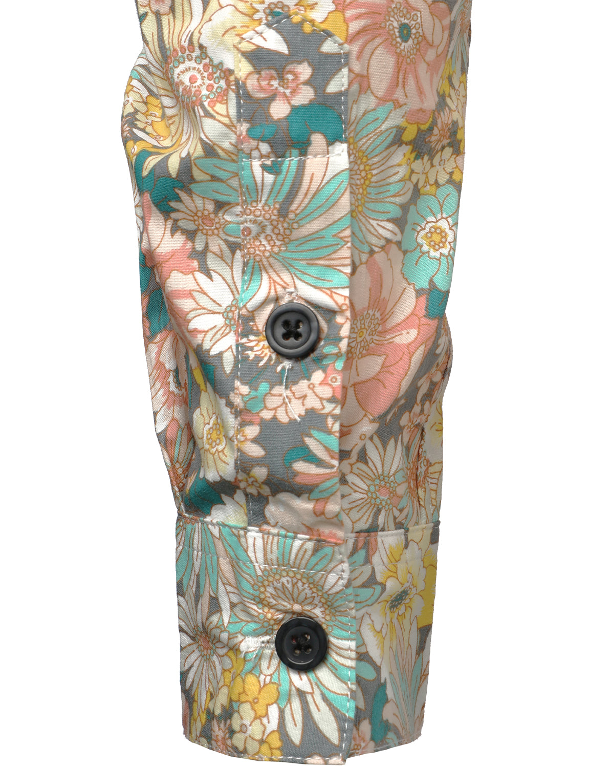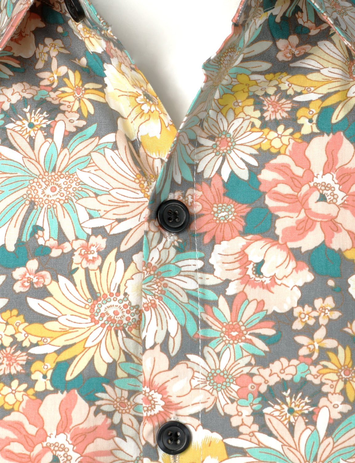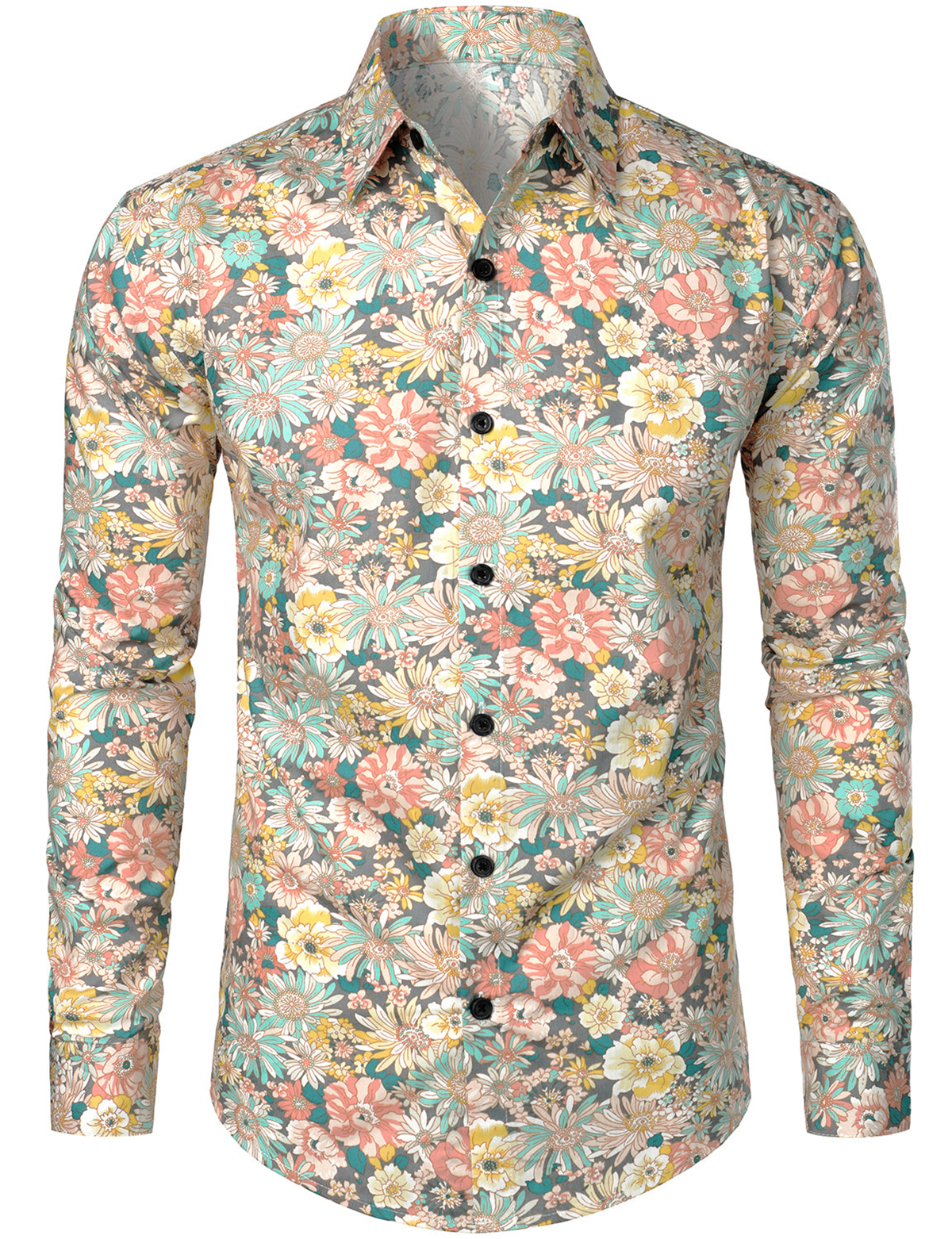 Men's Grey Cotton Floral Print Long Sleeve Shirt