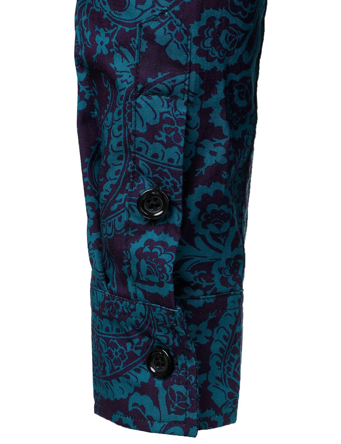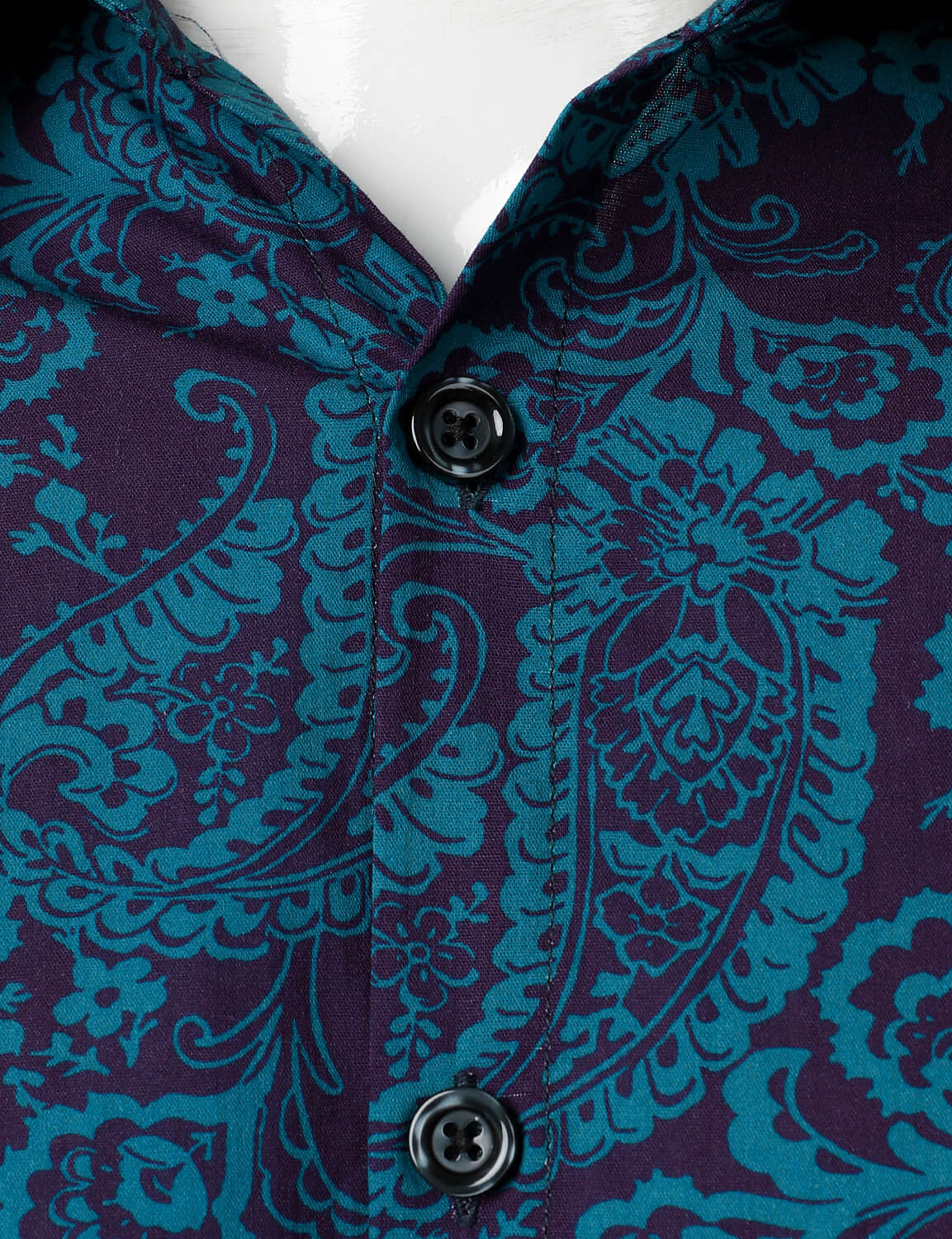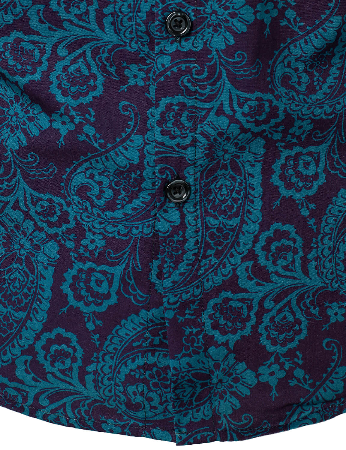 Men's Paisley Print Cotton Casual Button Up Long Sleeve Shirt