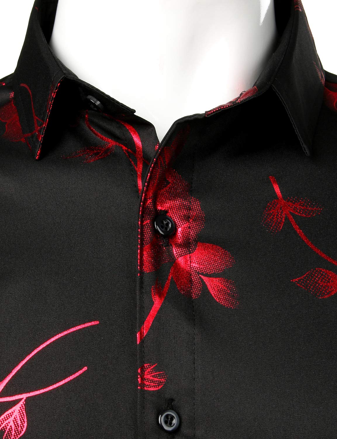 Men's Red Rose Floral Print Long Sleeve Button Up Dress Shirt