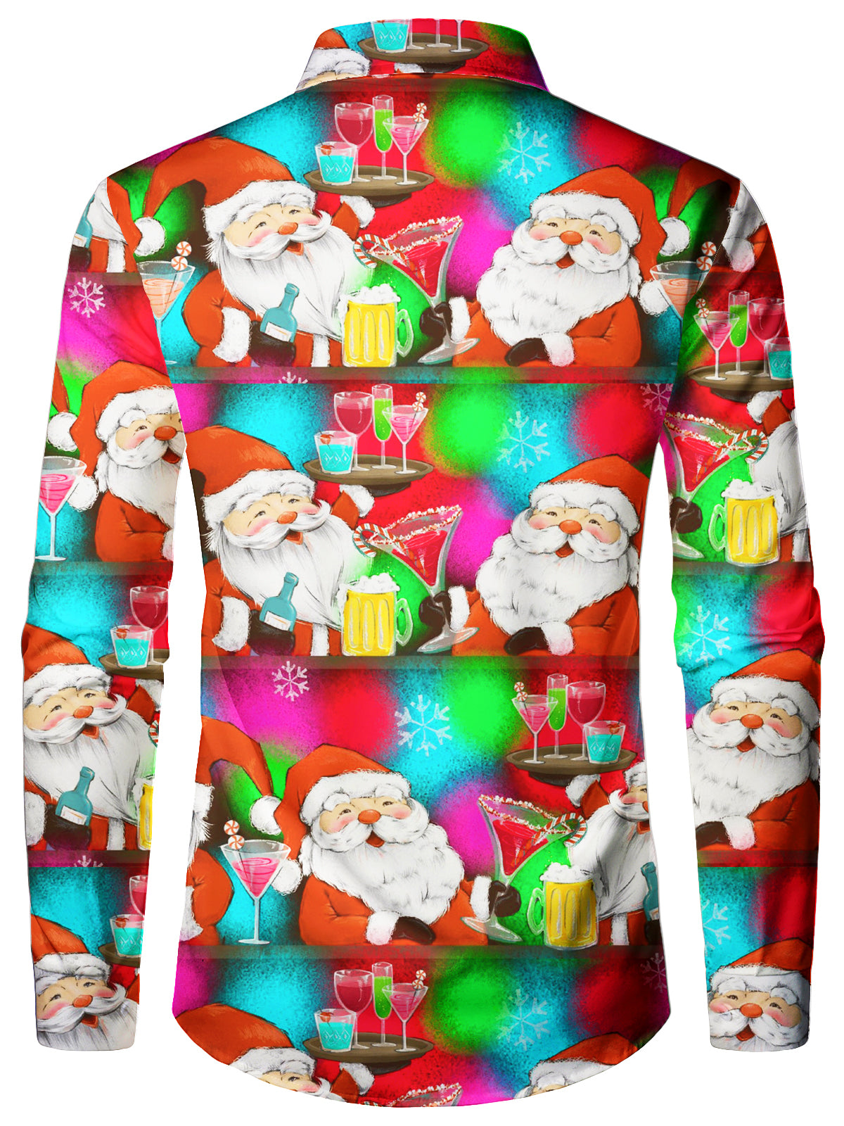 Men's Santa Claus And Beer Disco Cool Christmas Themed Party Long Sleeve Shirt