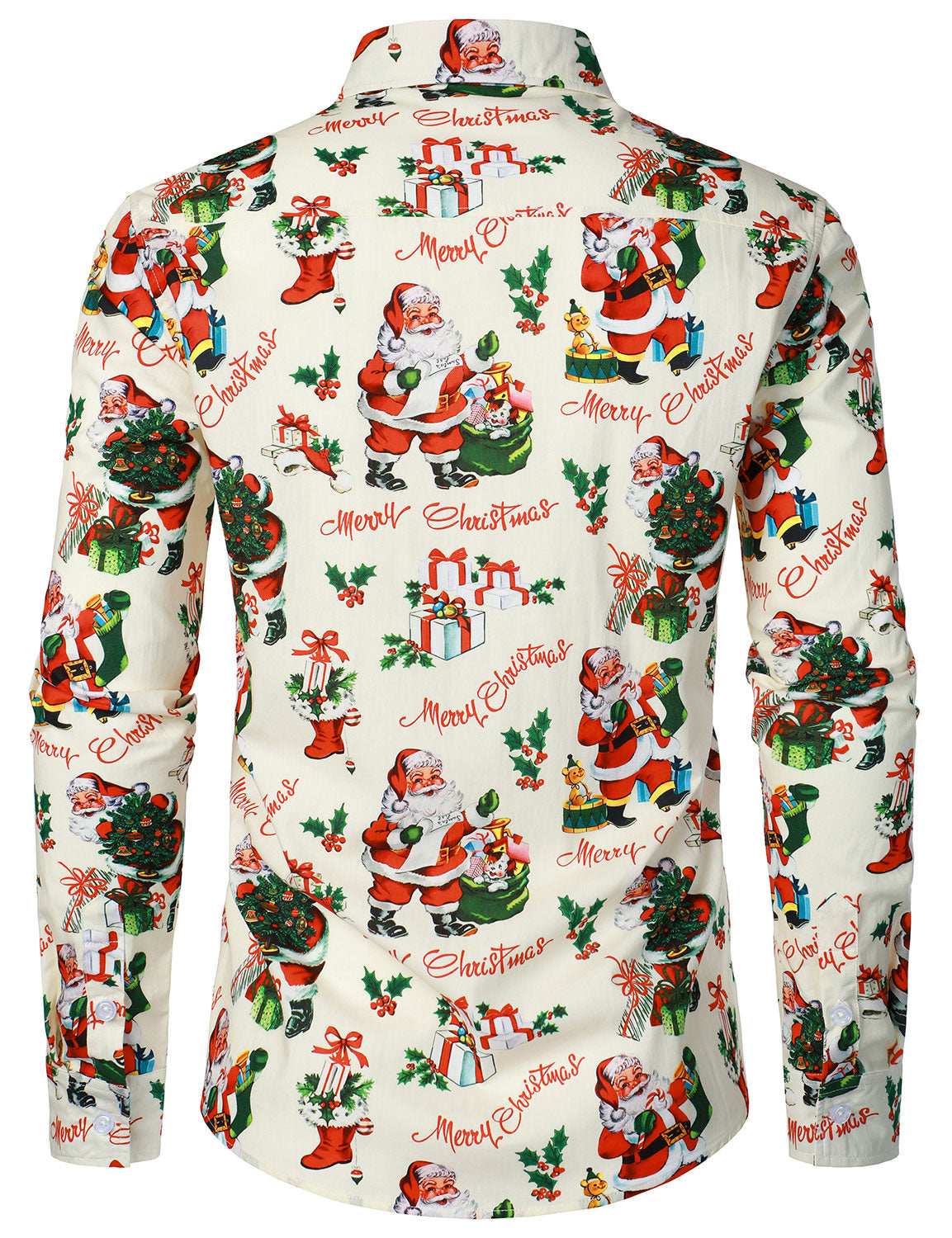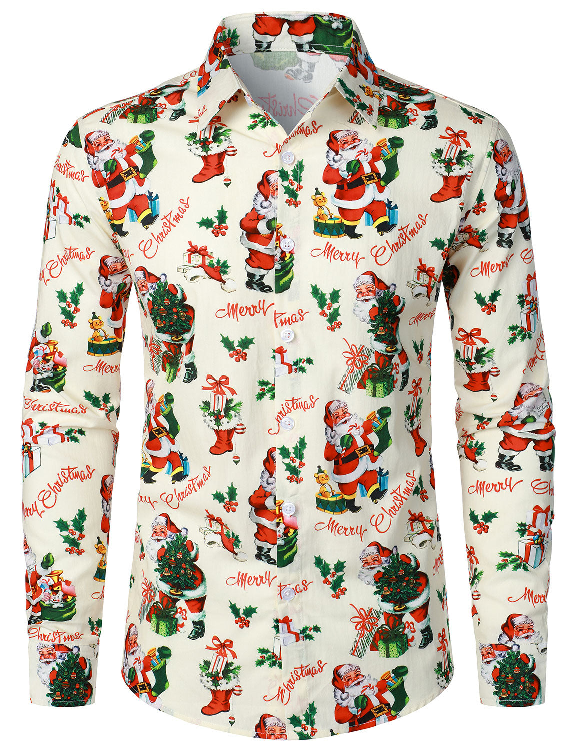 Men's Santa Claus Christmas Long Sleeve Cotton Shirt