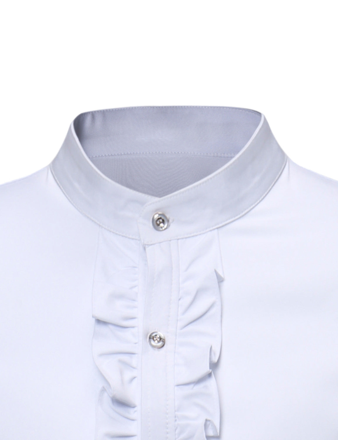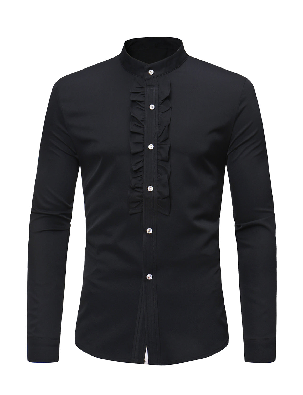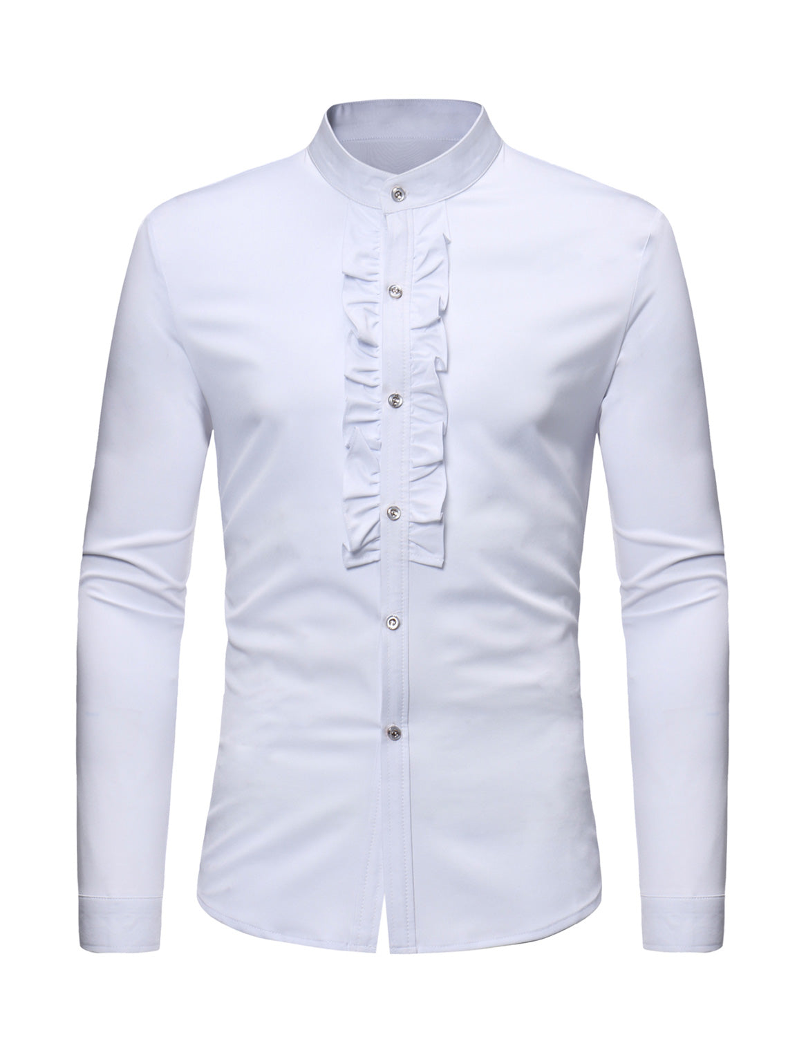Men's Stand Collar Lace Solid Color Long Sleeve Tuxedo Dress Shirt