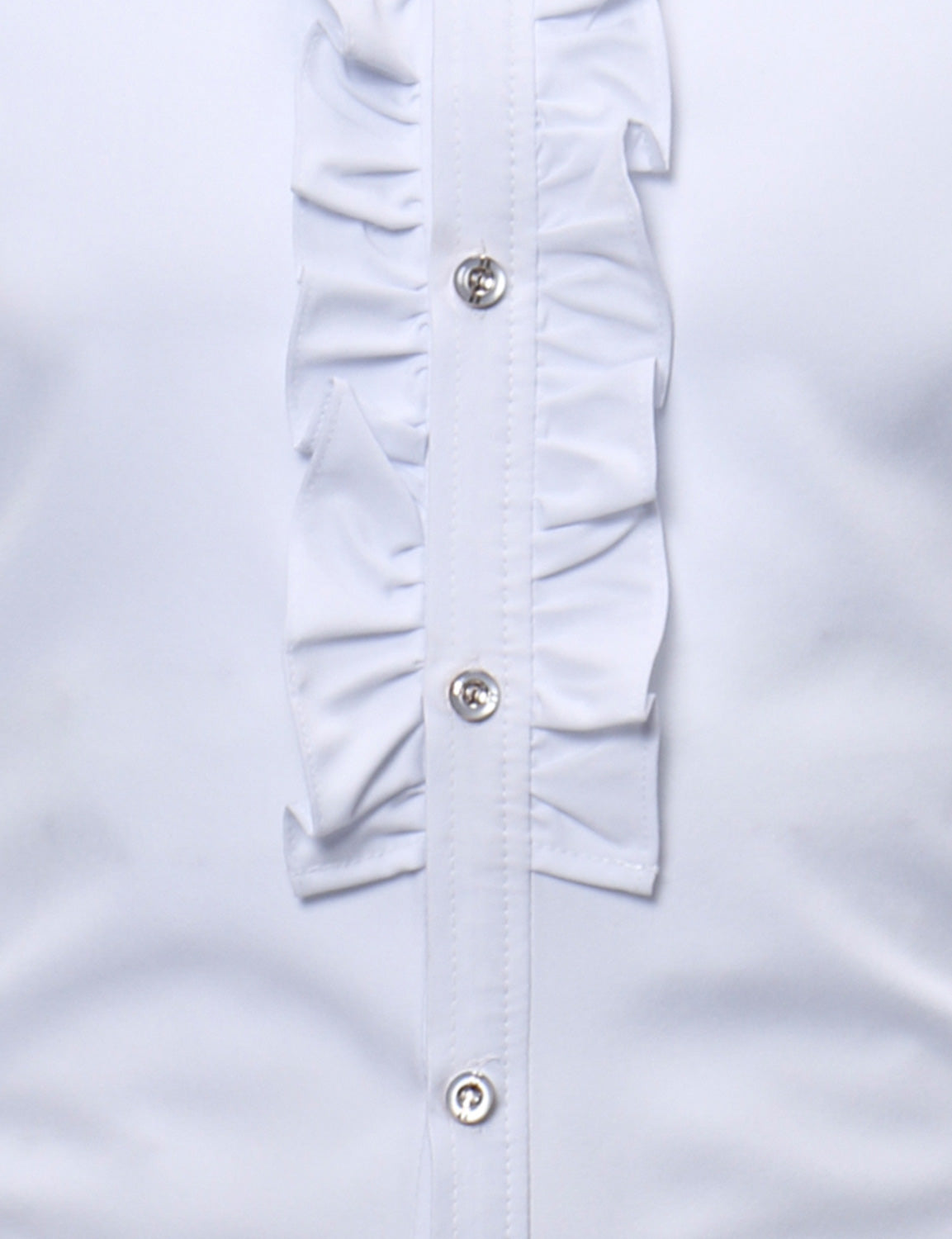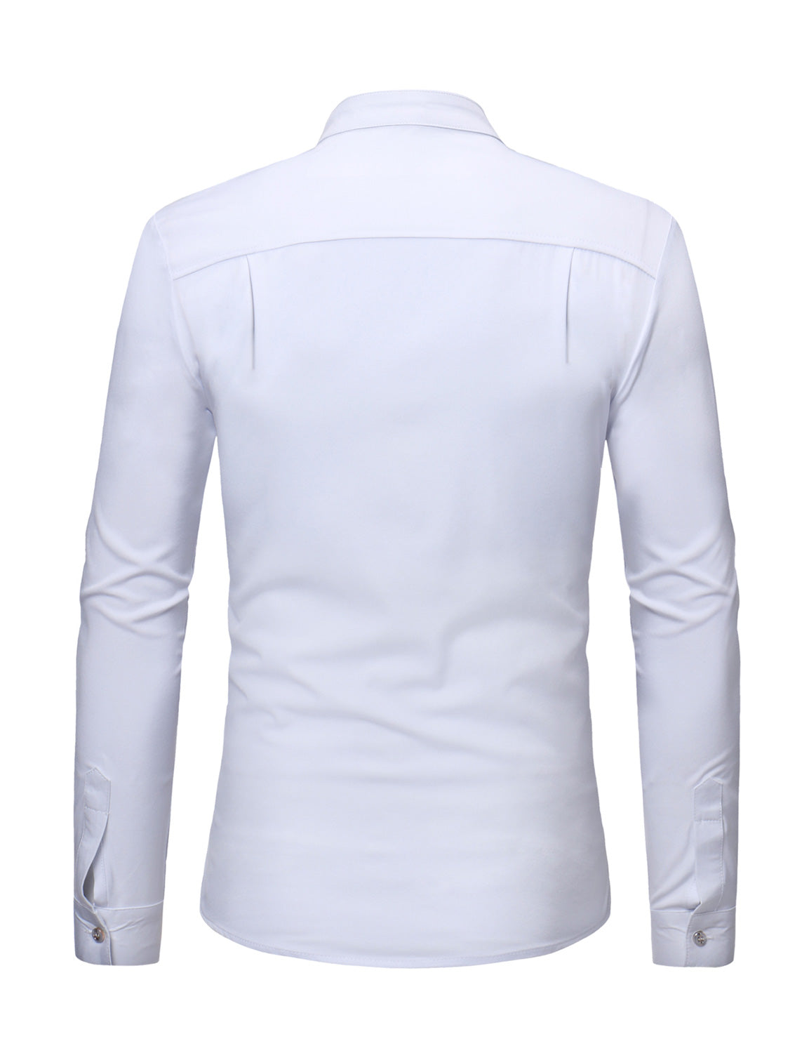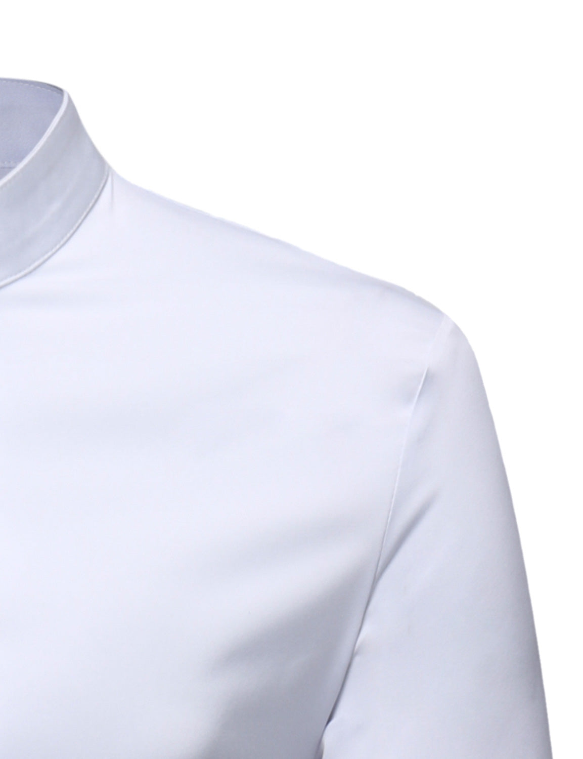 Men's Stand Collar Lace Solid Color Long Sleeve Tuxedo Dress Shirt