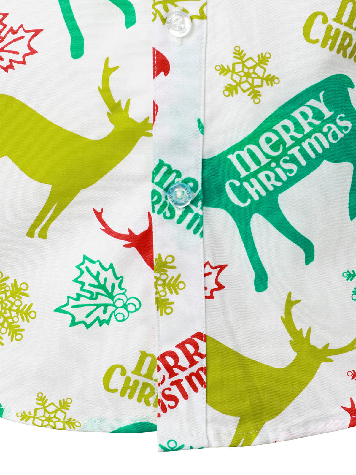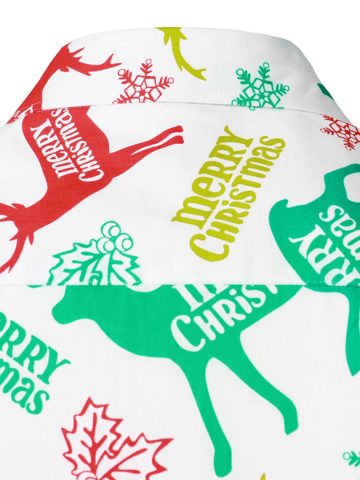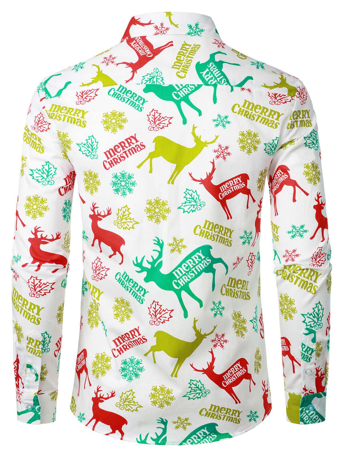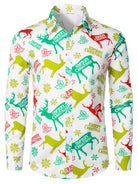Men's White Long Sleeve Christmas Deer Print Button Up Shirt