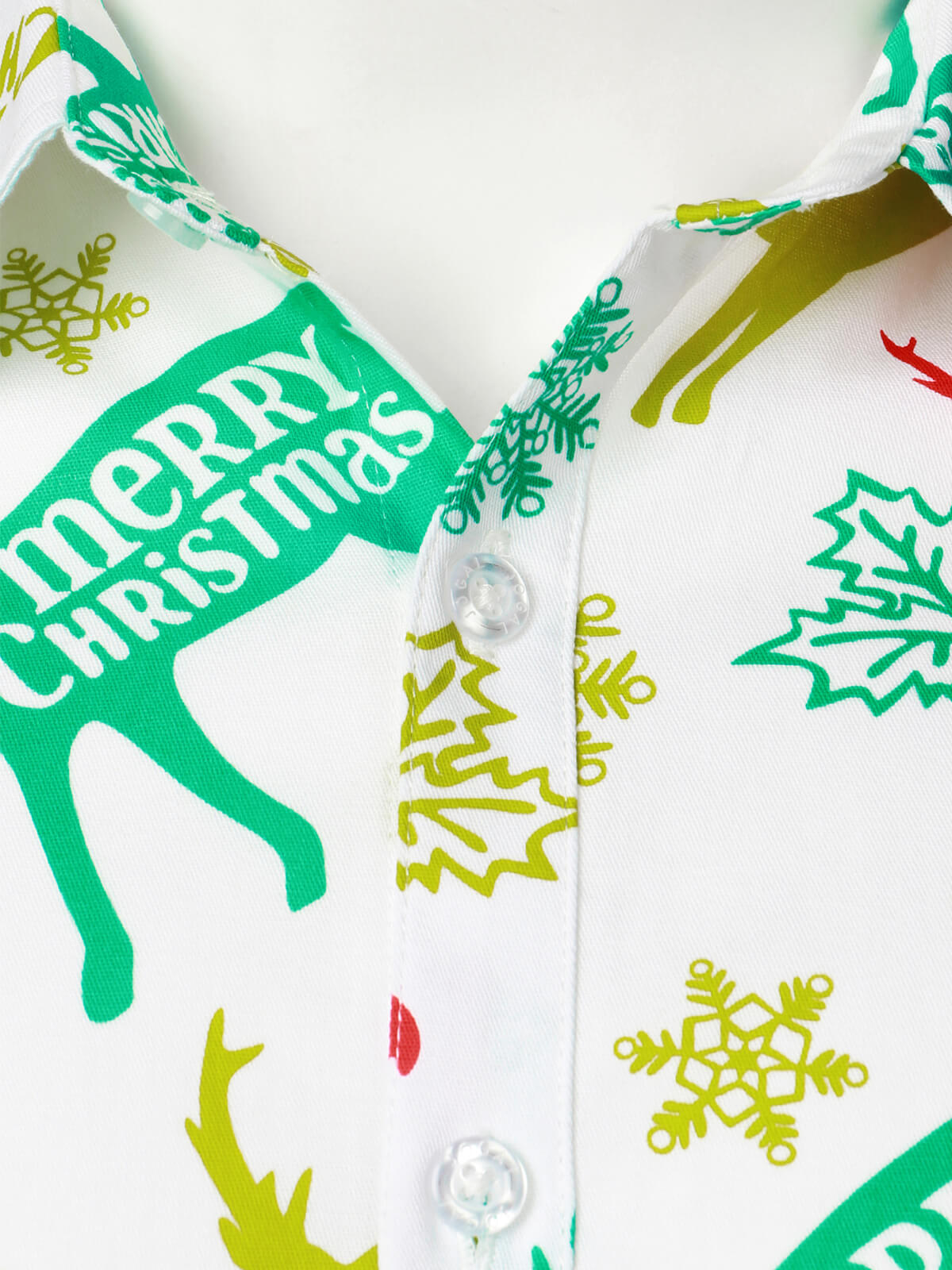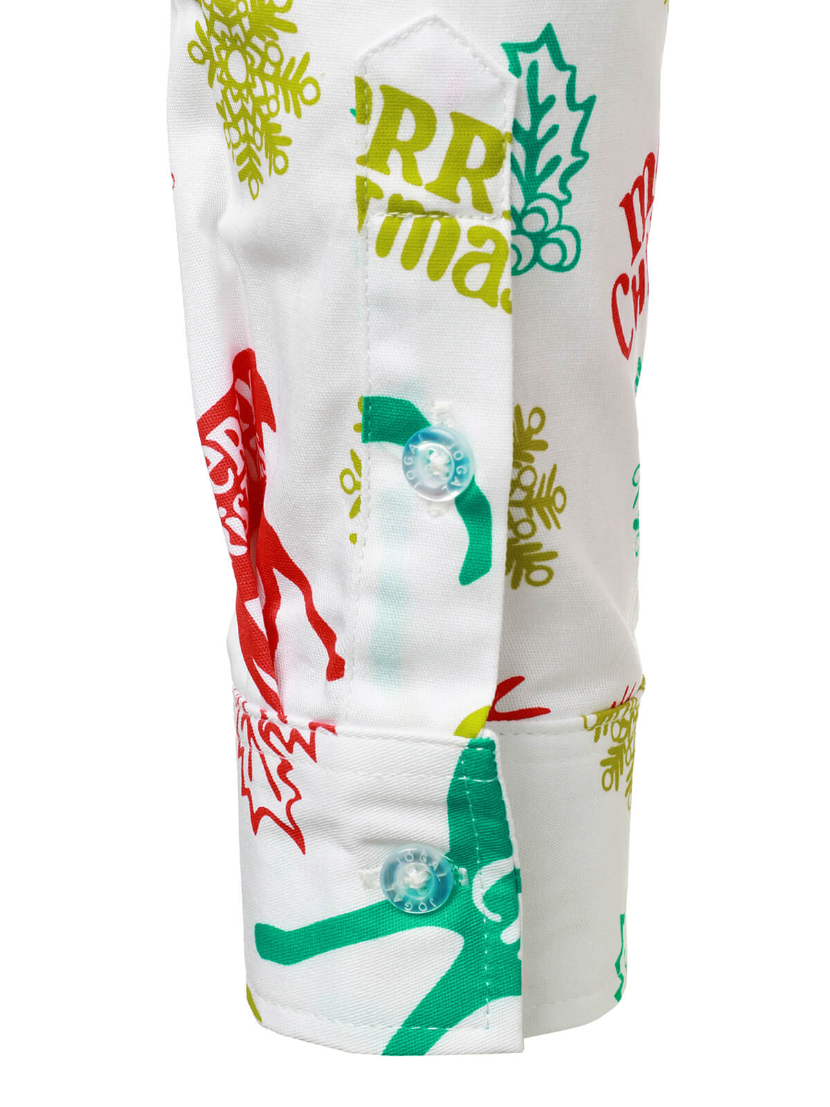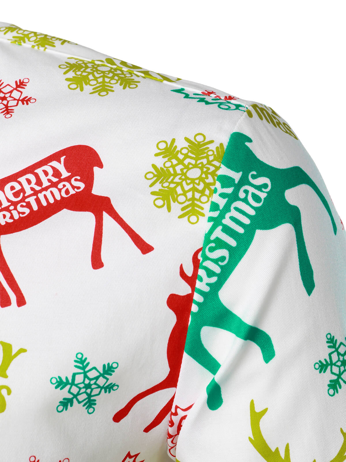 Men's White Long Sleeve Christmas Deer Print Button Up Shirt