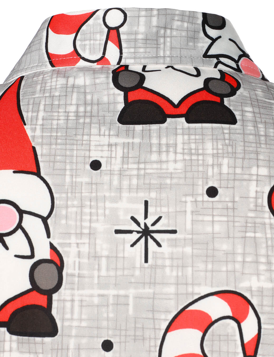 Men's Christmas Holiday Cute Gnome Print Funny Button Up Long Sleeve Shirt