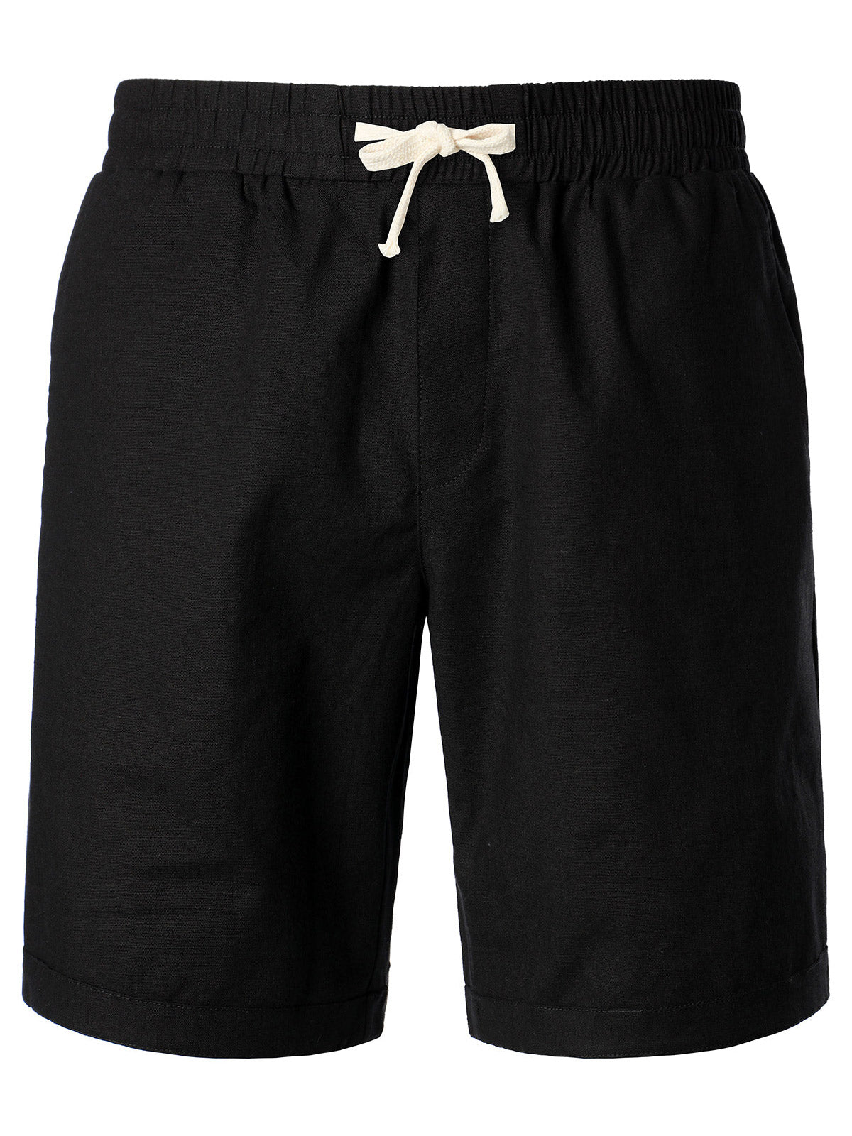 Men's Solid Color Breathable Linen Cotton Casual Shorts