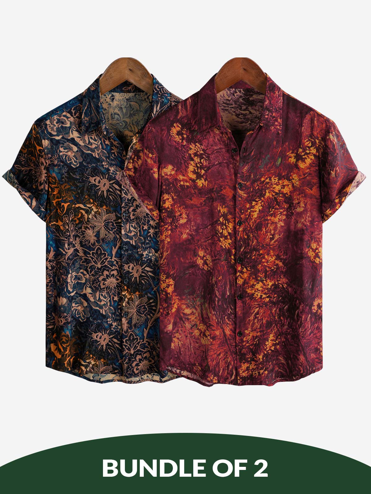 Bundle Of 2 | Men's Retro Holiday Breathable Hawaiian Short Sleeve Shirts