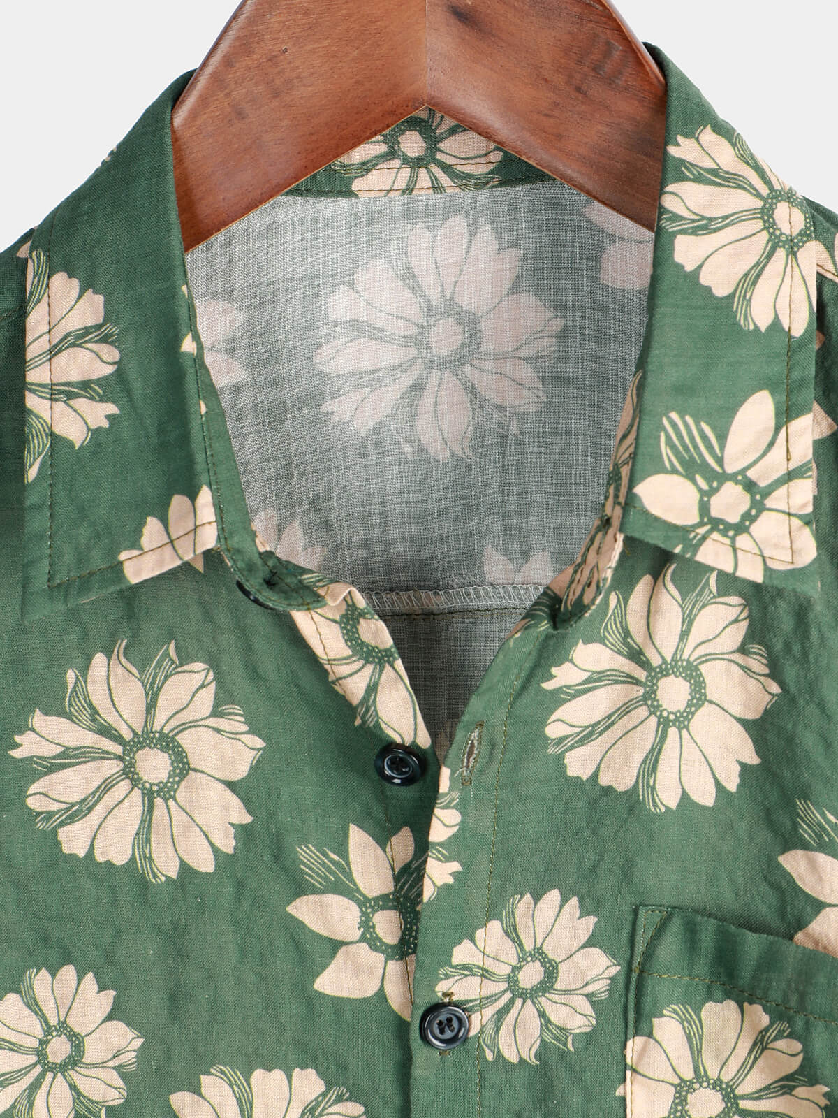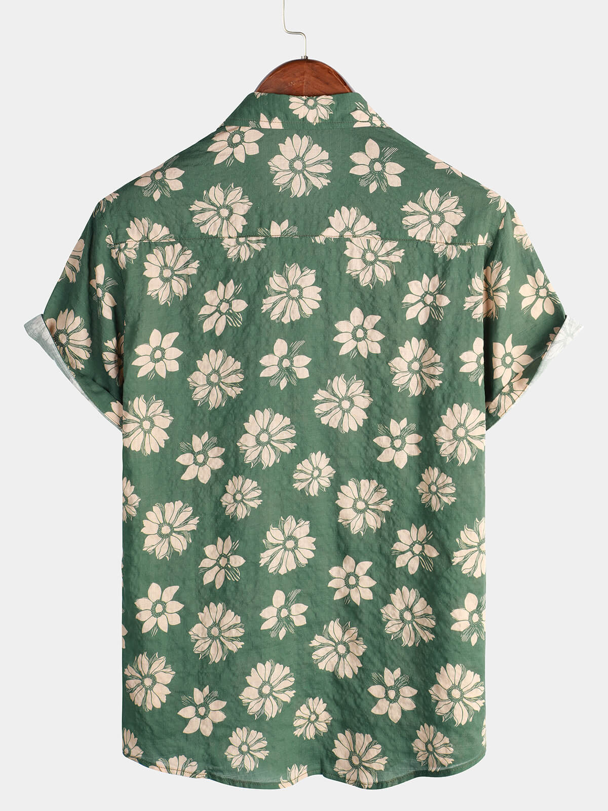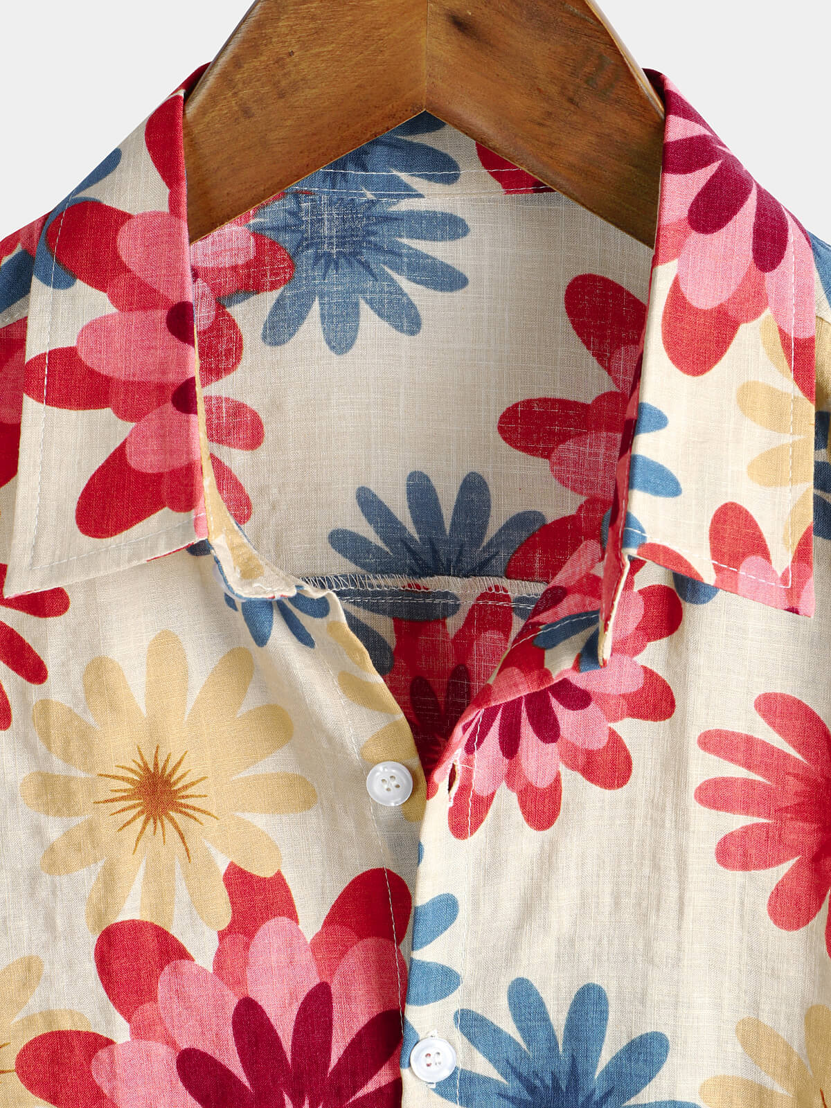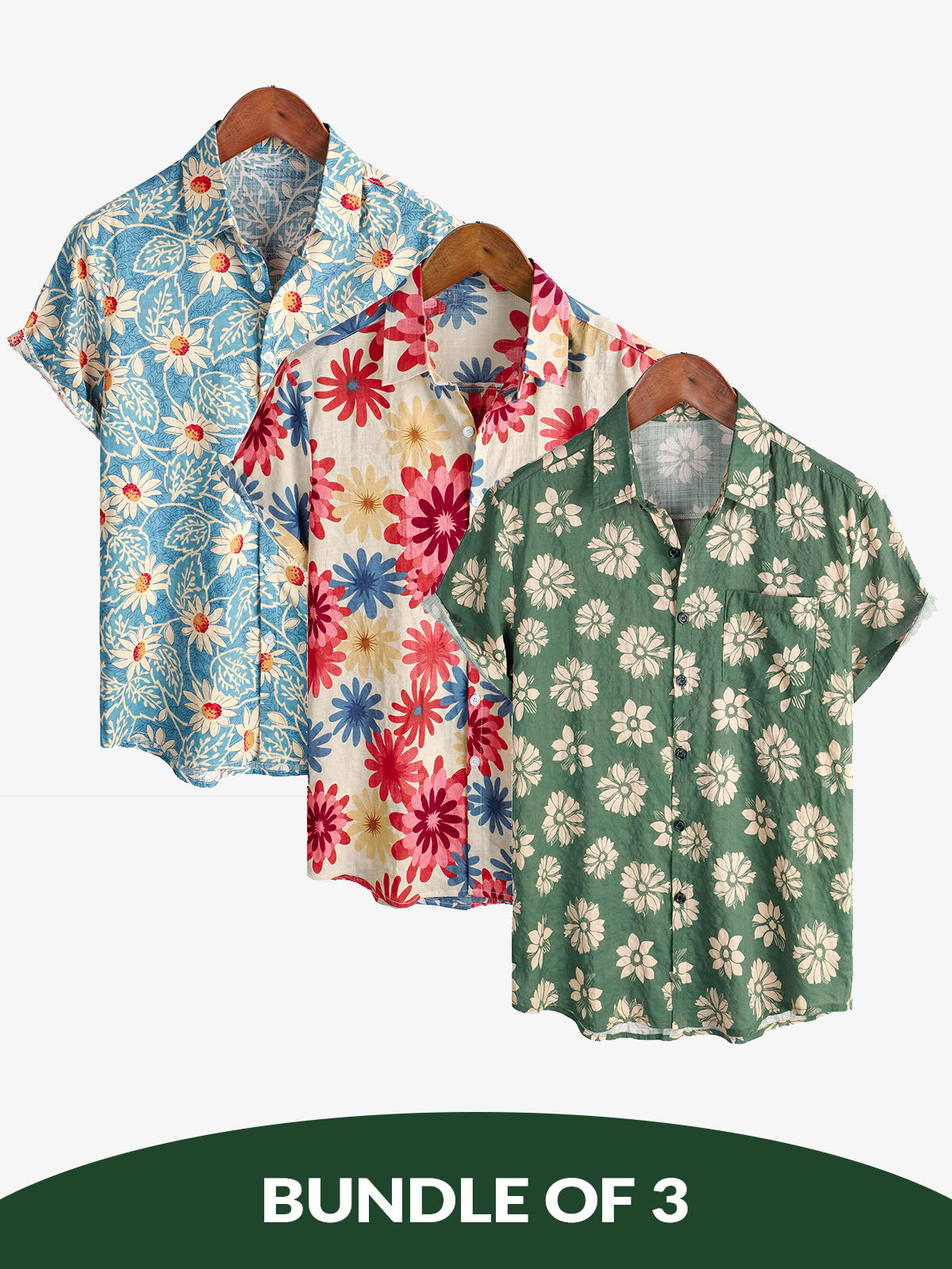 Bundle Of 3 | Men's Floral Cotton Flower Summer Beach Holiday Short Sleeve Hawaiian Button Up Shirts