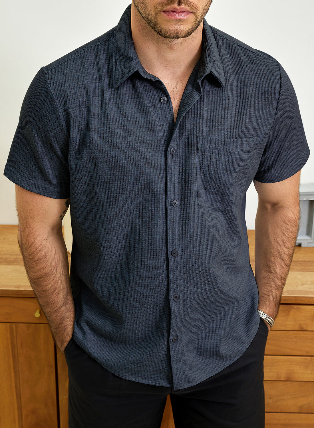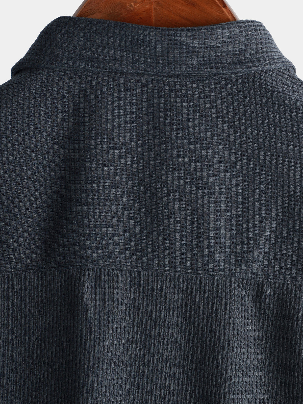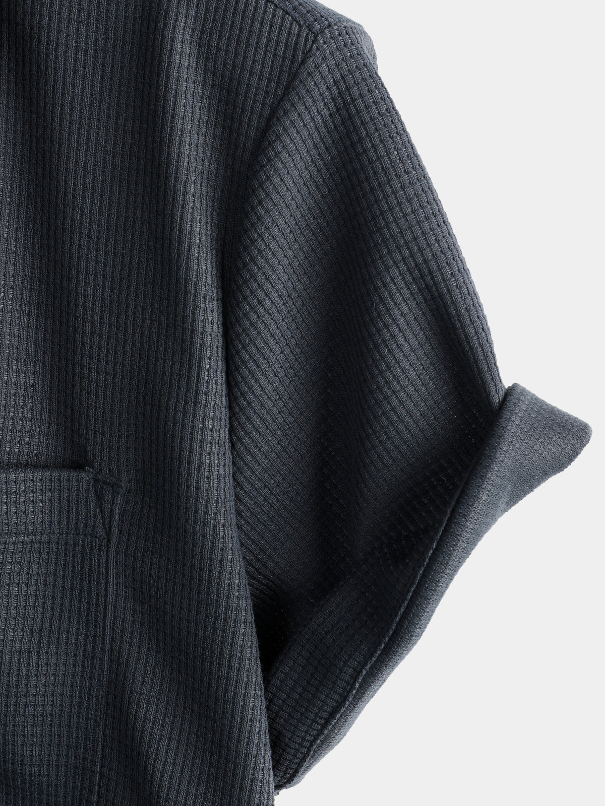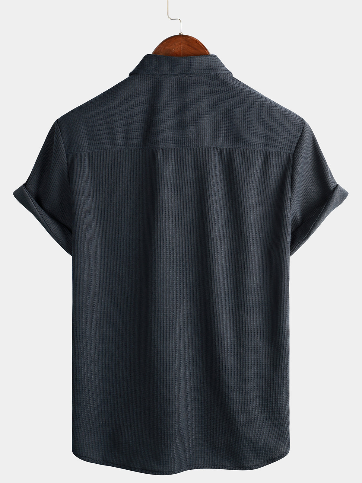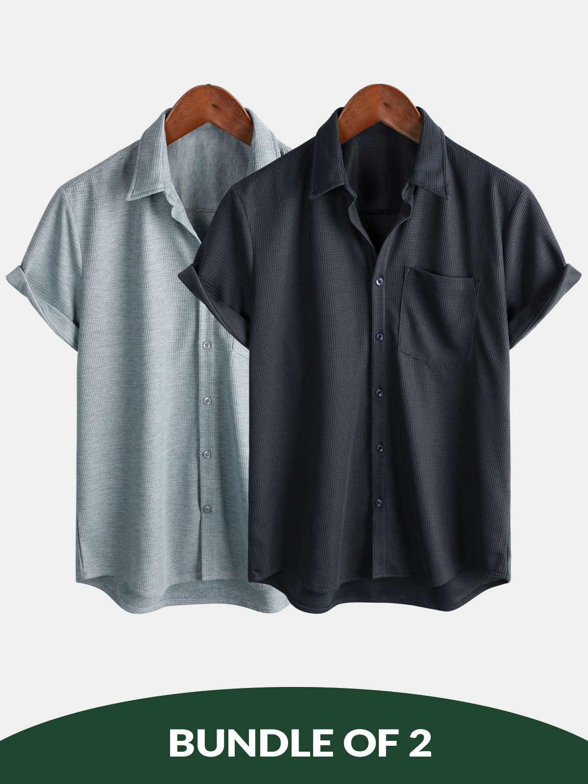 Bundle Of 2 | Men's Casual Waffle Short Sleeve Button Up Summer Loose Fit Beach Shirts