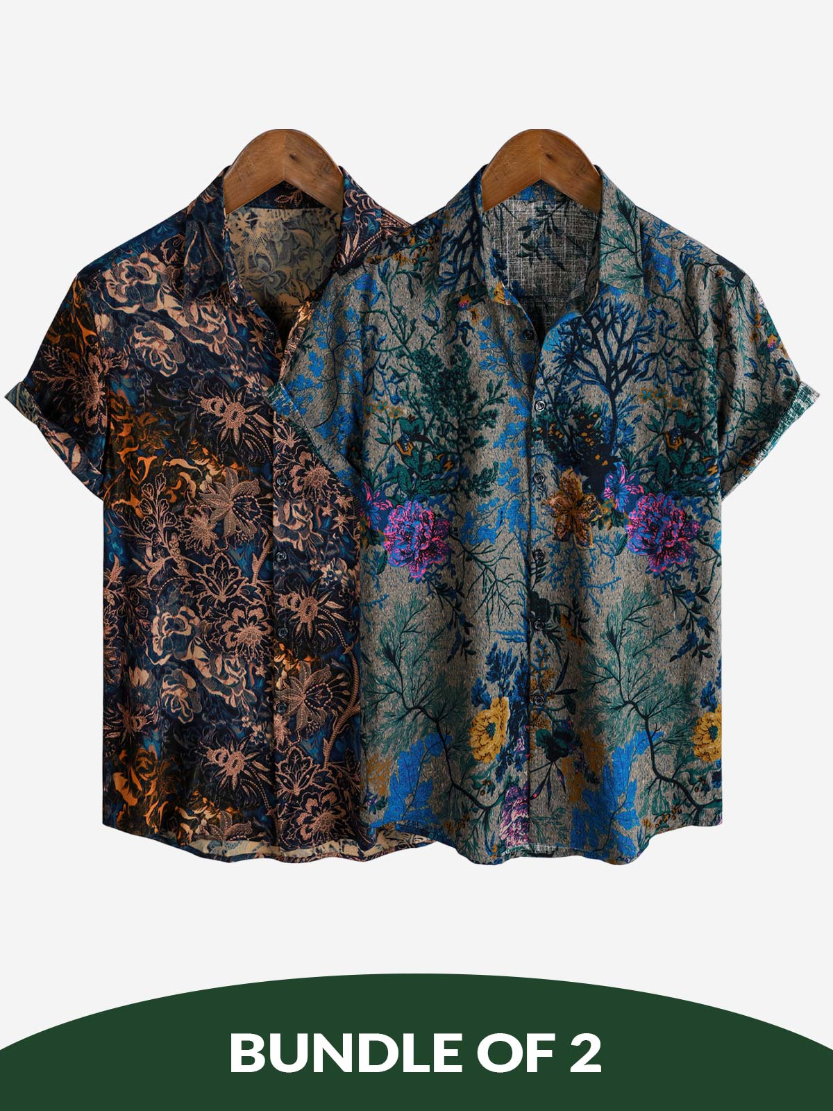 Bundle Of 2 | Men's Retro Floral Pattern Breathable Short Sleeve Shirts