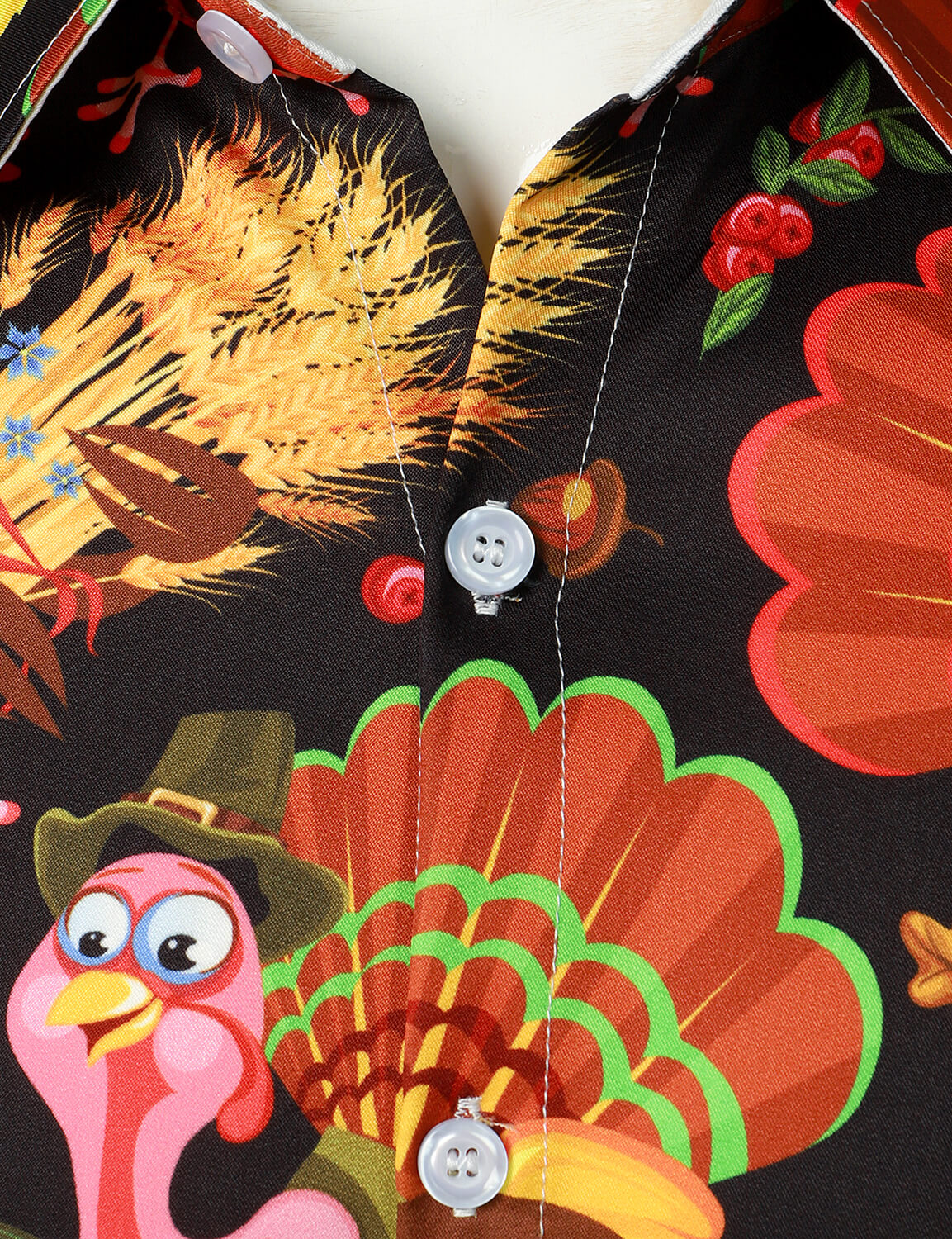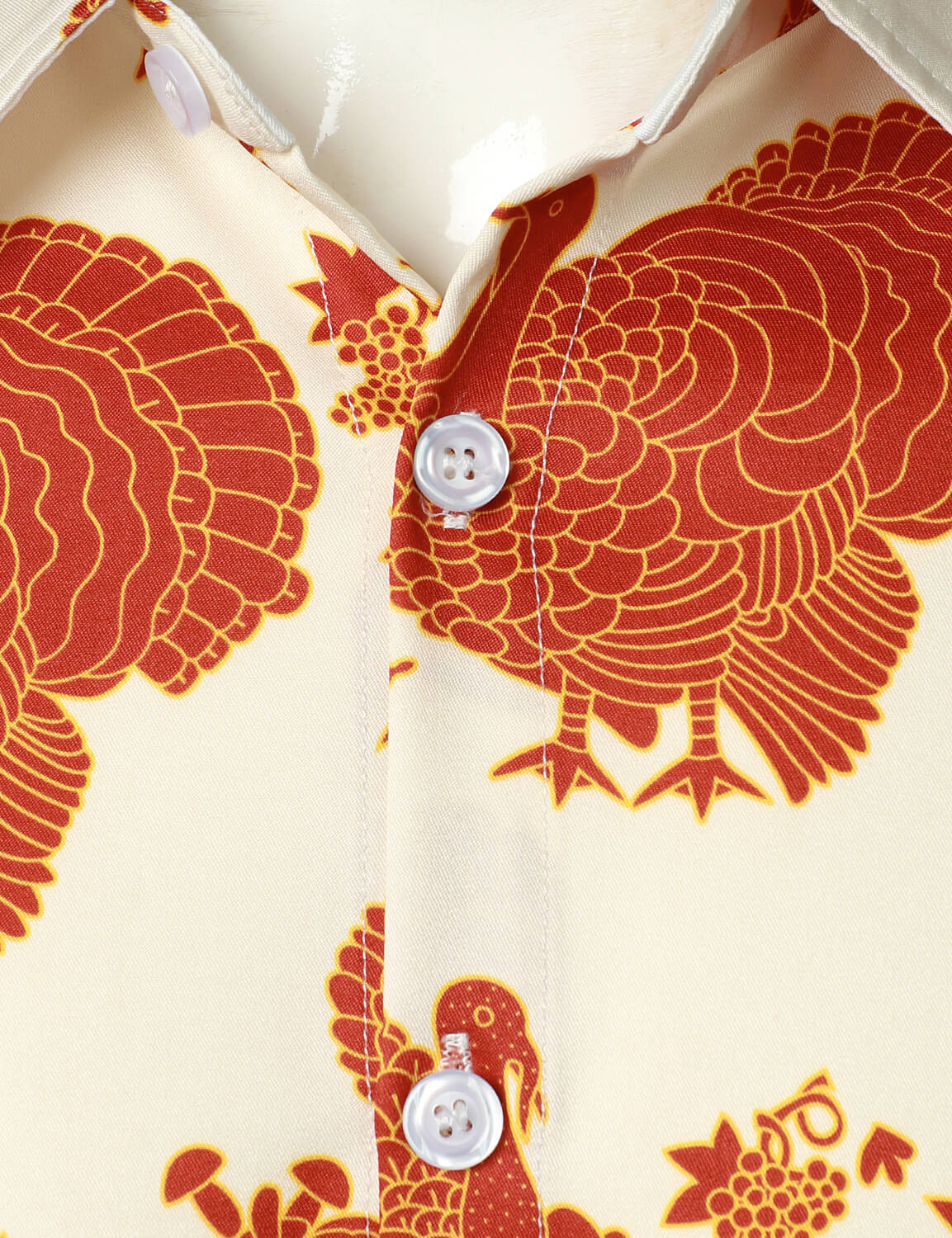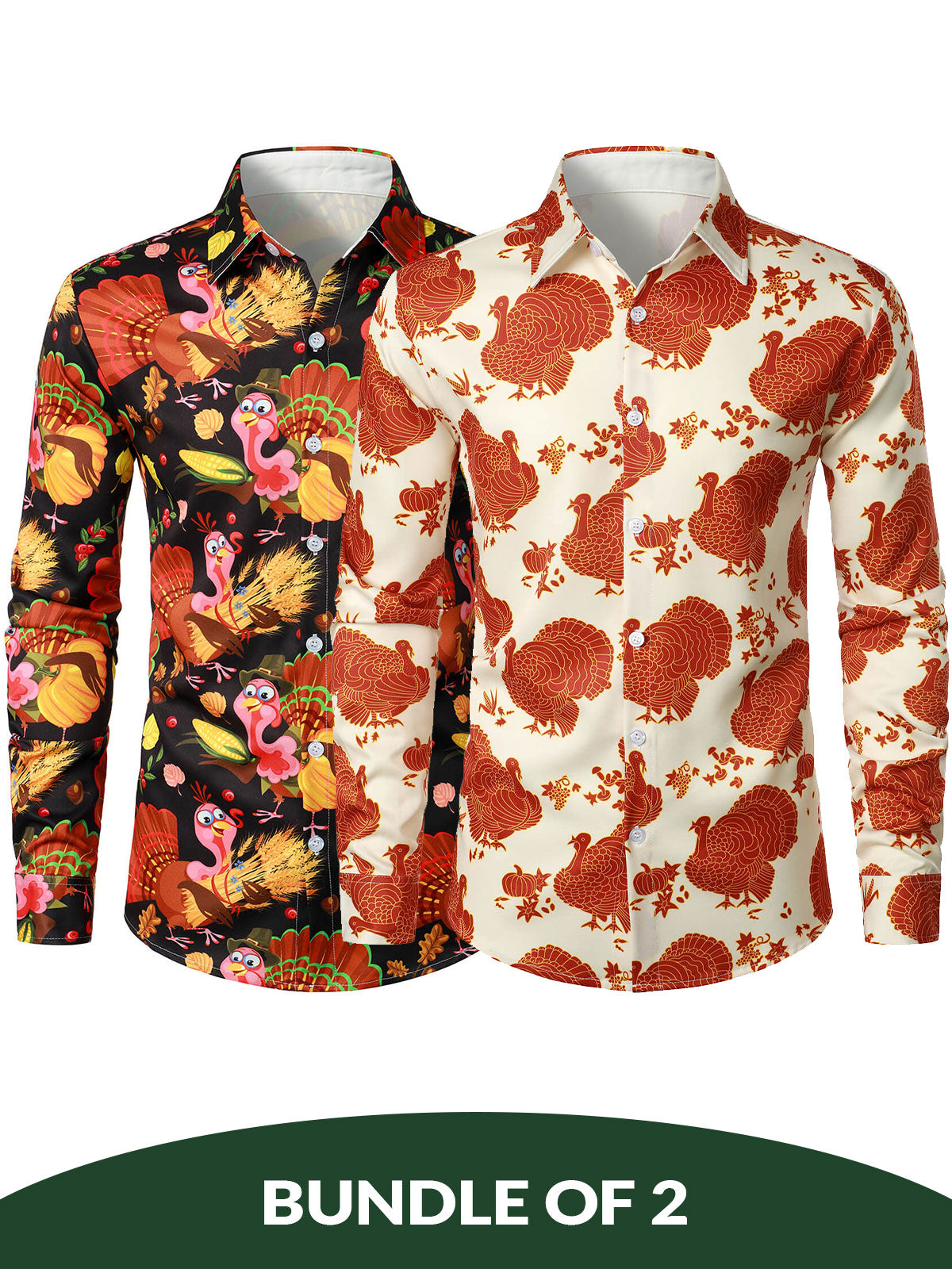 Bundle Of 2 | Men's Turkey Harvest Print Funny Thanksgiving Holiday Button Up Long Sleeve Shirts