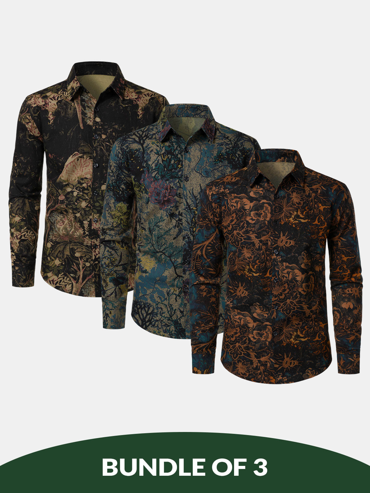 Bundle Of 3 | Men's Floral Print Long Sleeve Retro Shirts