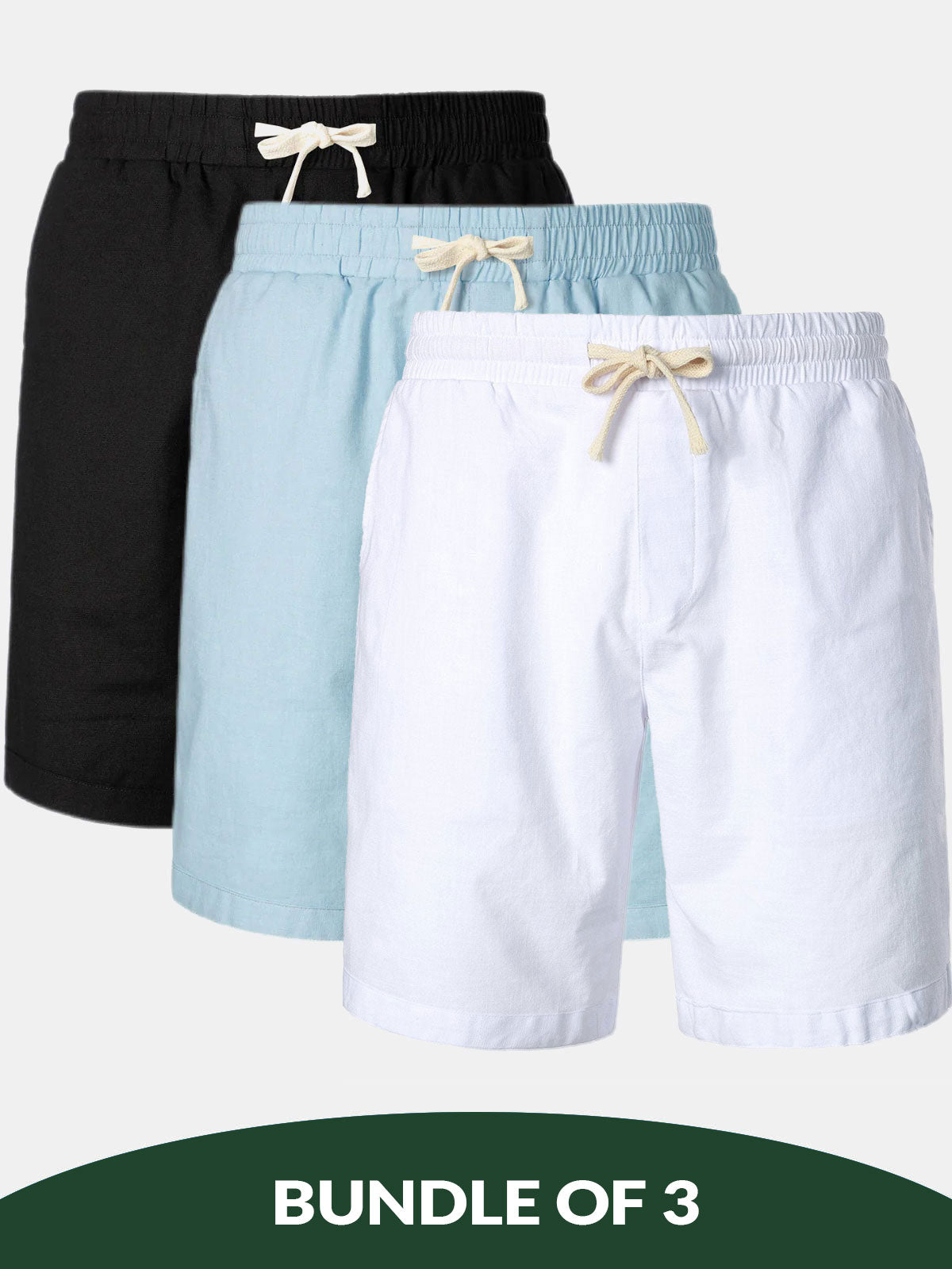 Bundle Of 3 | Men's Solid Color Breathable Linen Cotton Casual Shorts