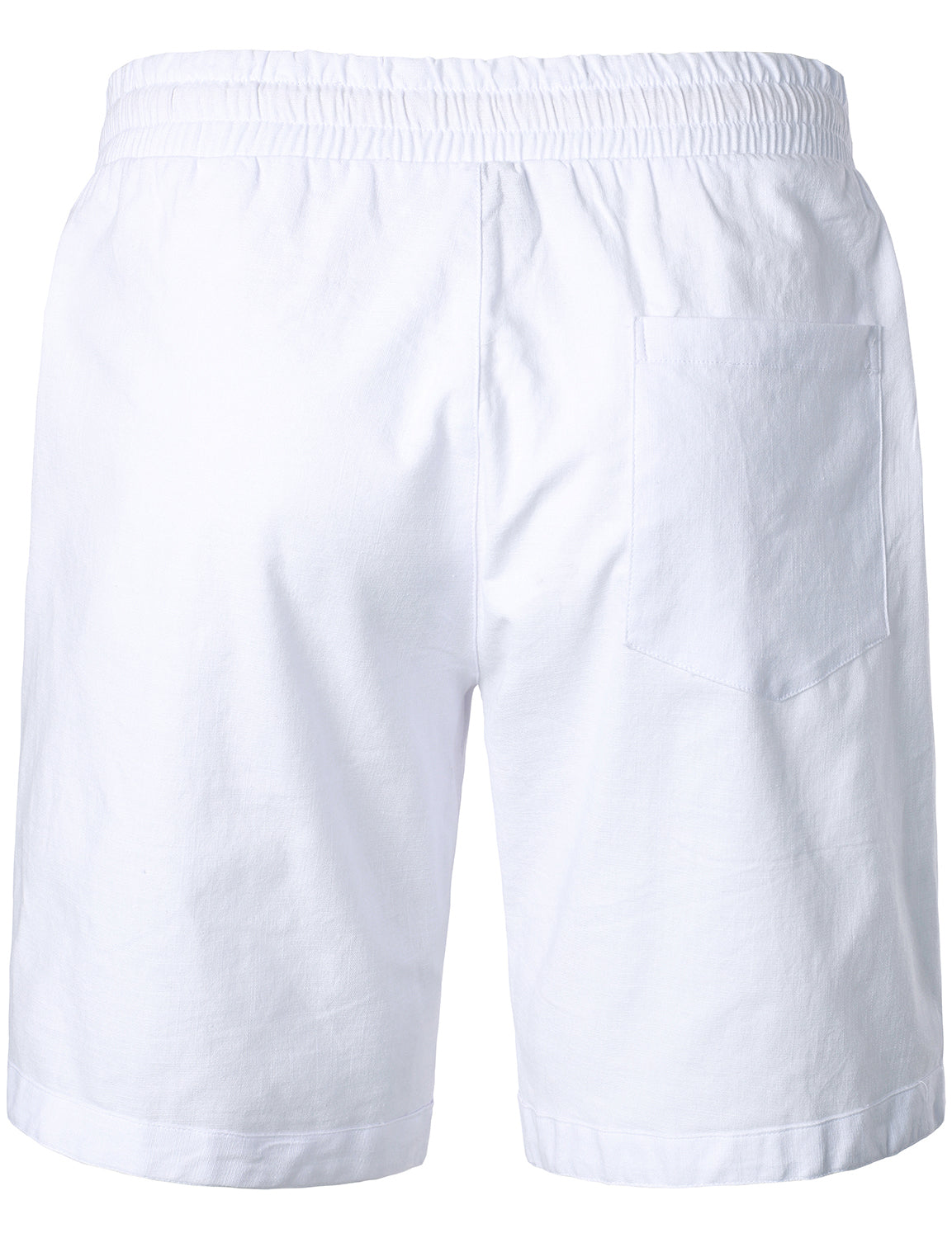- Flat-front casual shorts with slanted side pockets and rear pockets, mid-rise, elastic waist and drawstring closure