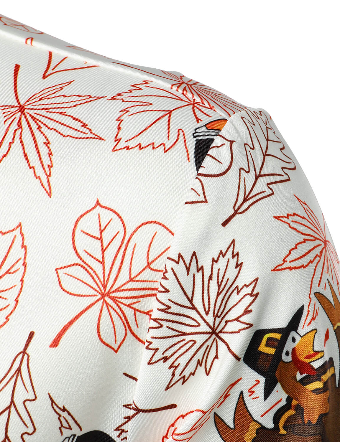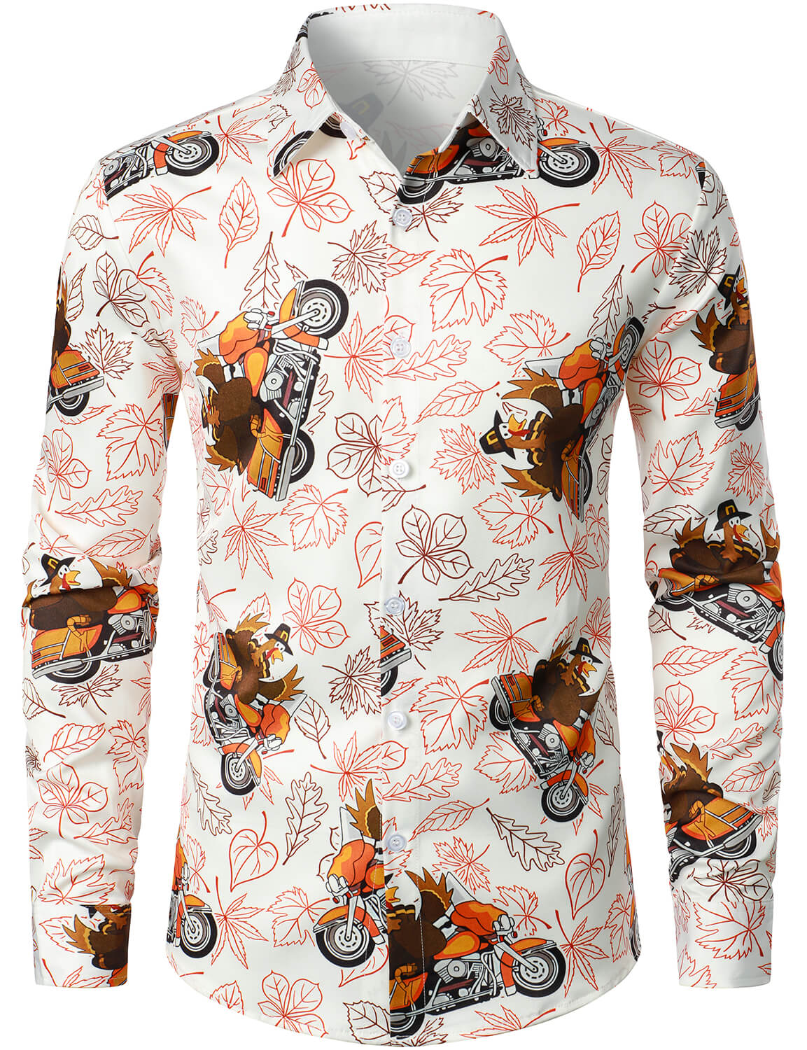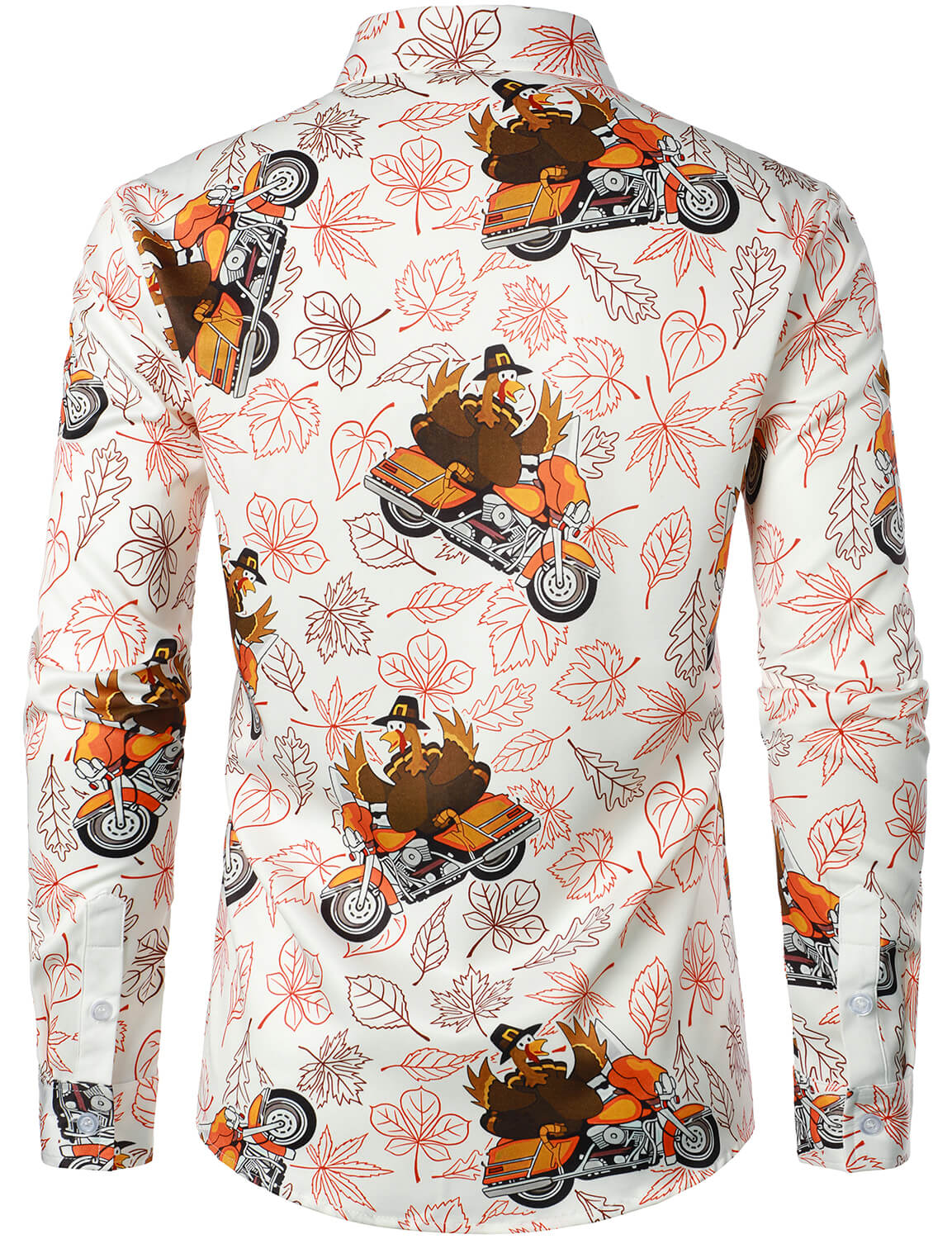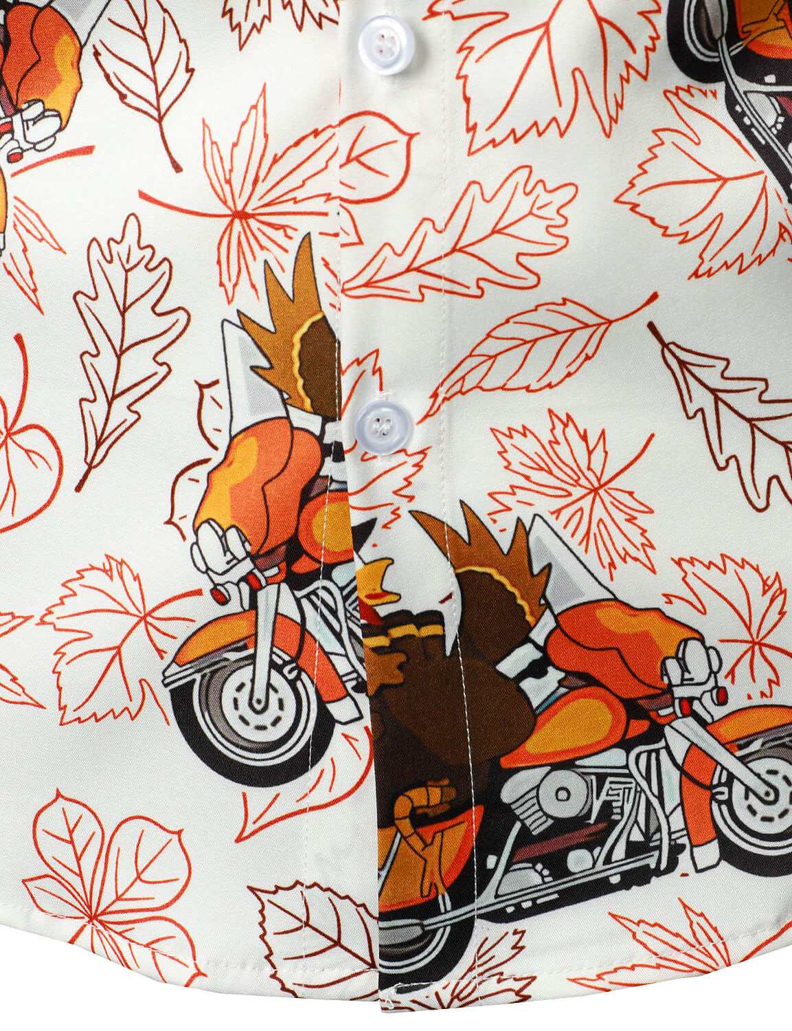 Men's Thanksgiving Funny Turkey Riding Motorcycle Hilarious Holiday Button Up Cute Long Sleeve Shirt