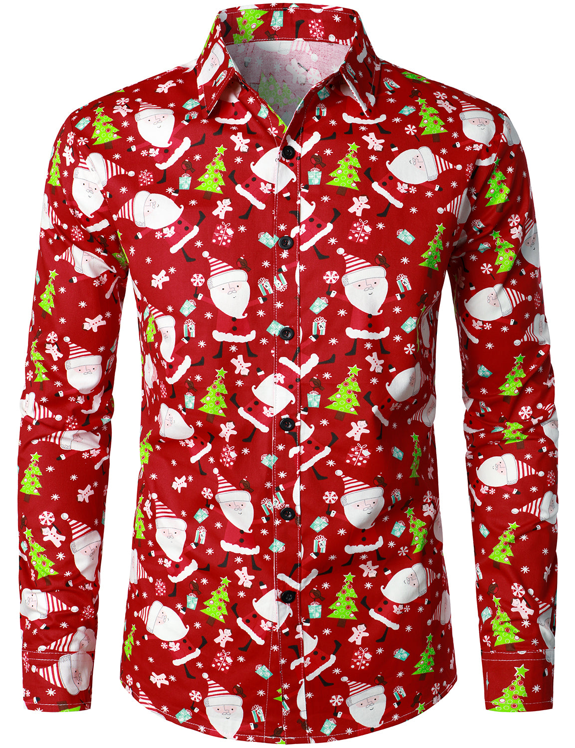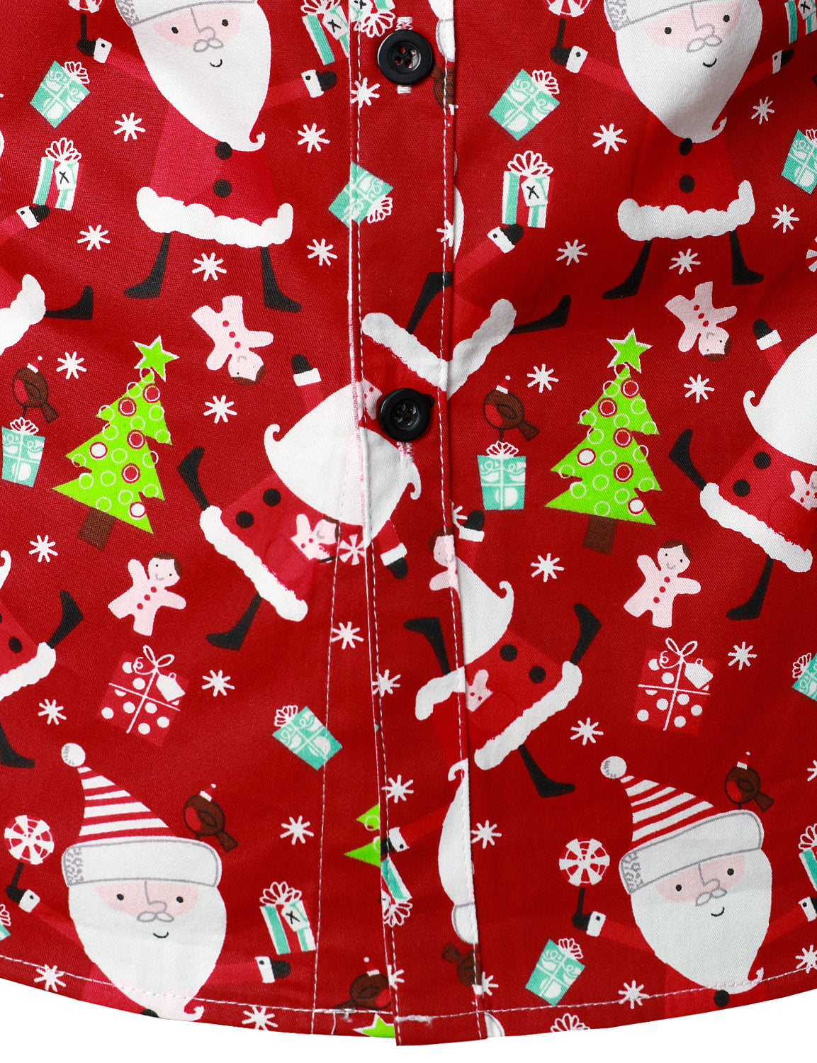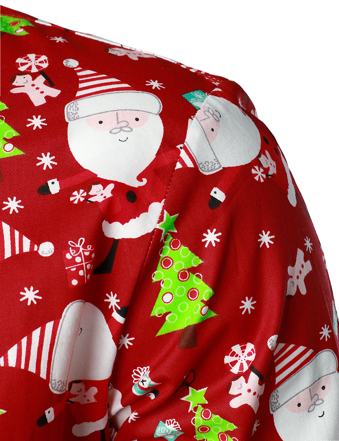 Men's Christmas Santa Print Regular Fit Red Button Up Long Sleeve Dress Shirt