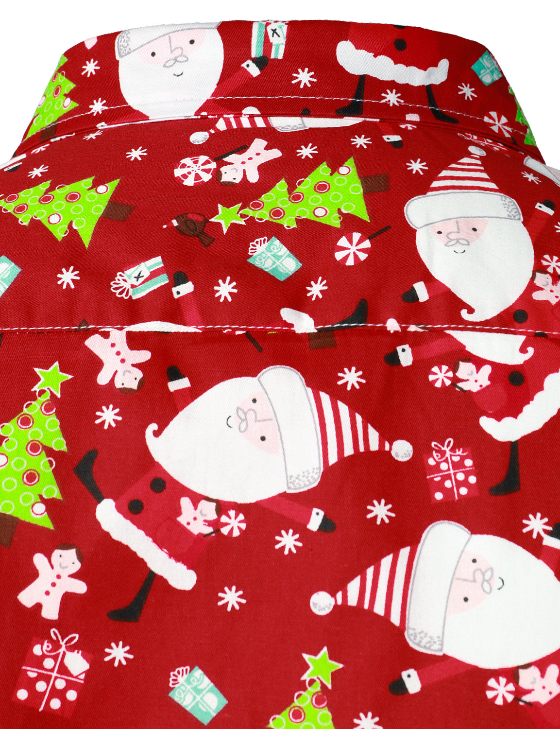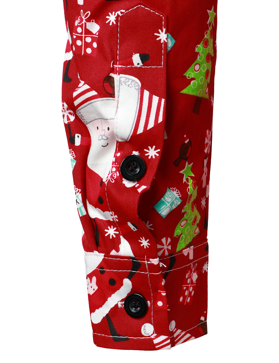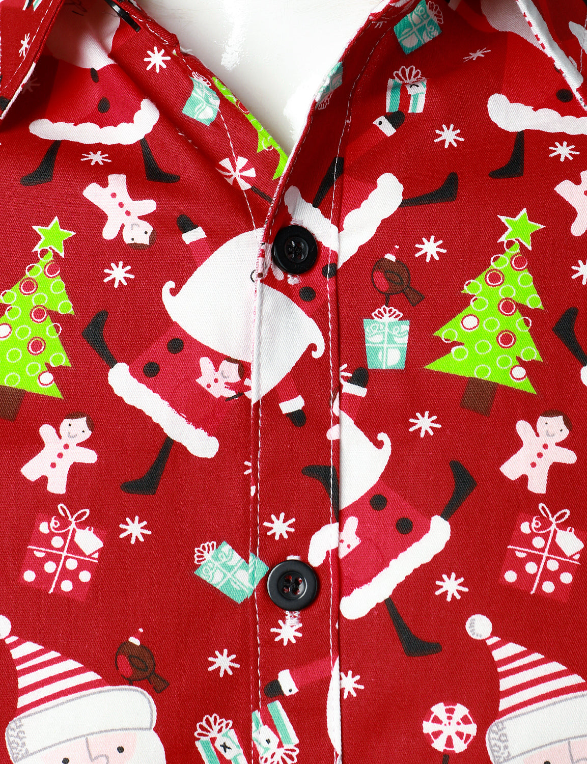 Men's Christmas Santa Print Regular Fit Red Button Up Long Sleeve Dress Shirt