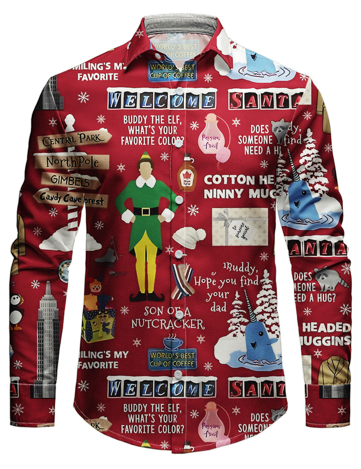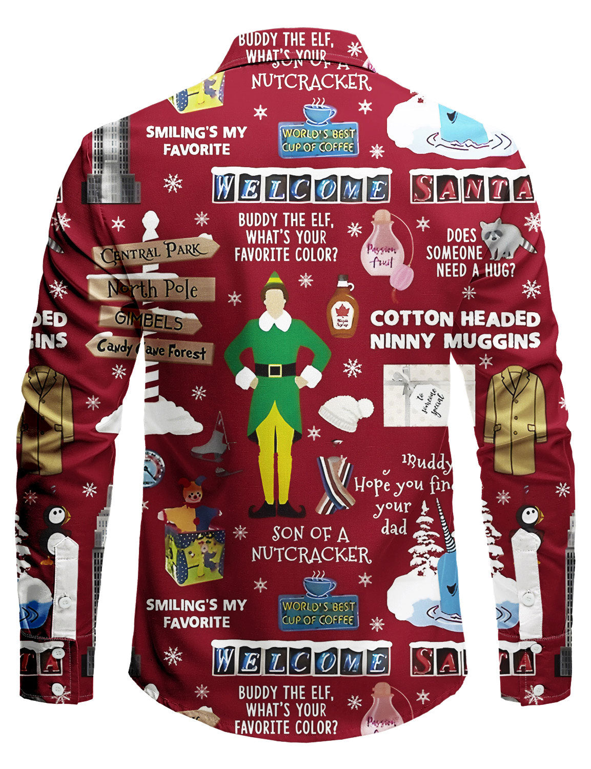 Men's Christmas Vacation Holiday Print Long Sleeve Button Shirt
