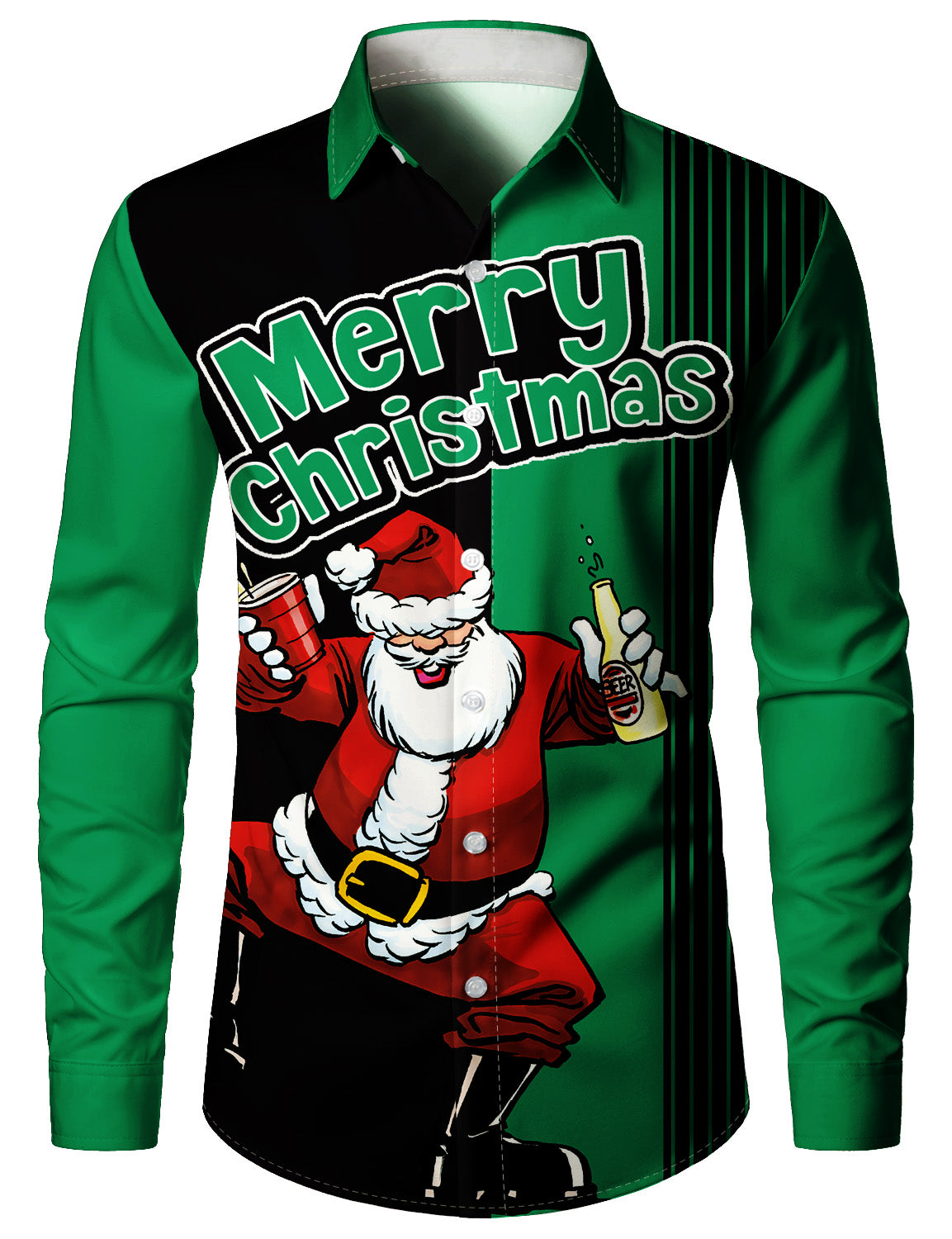 Men's Merry Christmas Beer Santa Claus Funny Holiday Long Sleeve Shirt