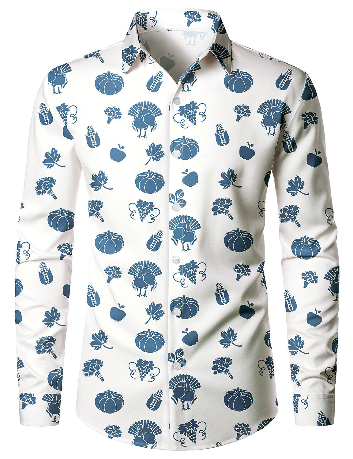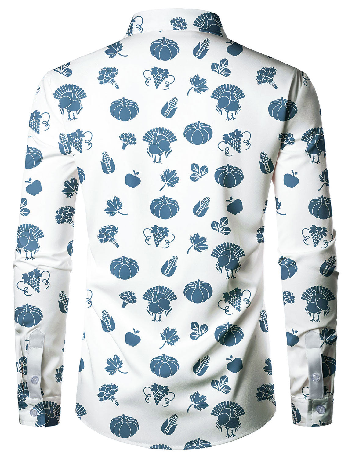 Men's Cute Turkey Print Thanksgiving Funny Holiday Button Up Long Sleeve Shirt