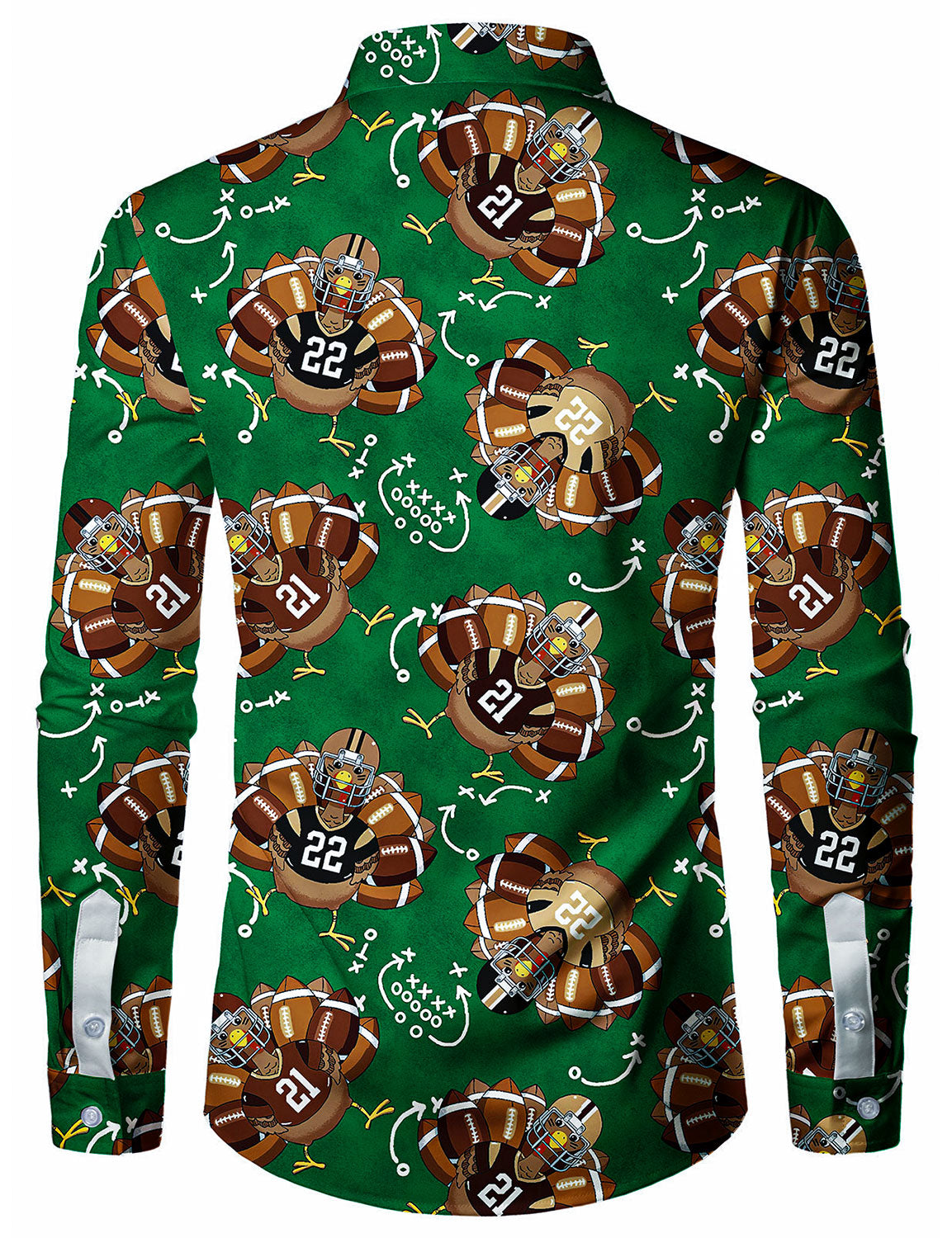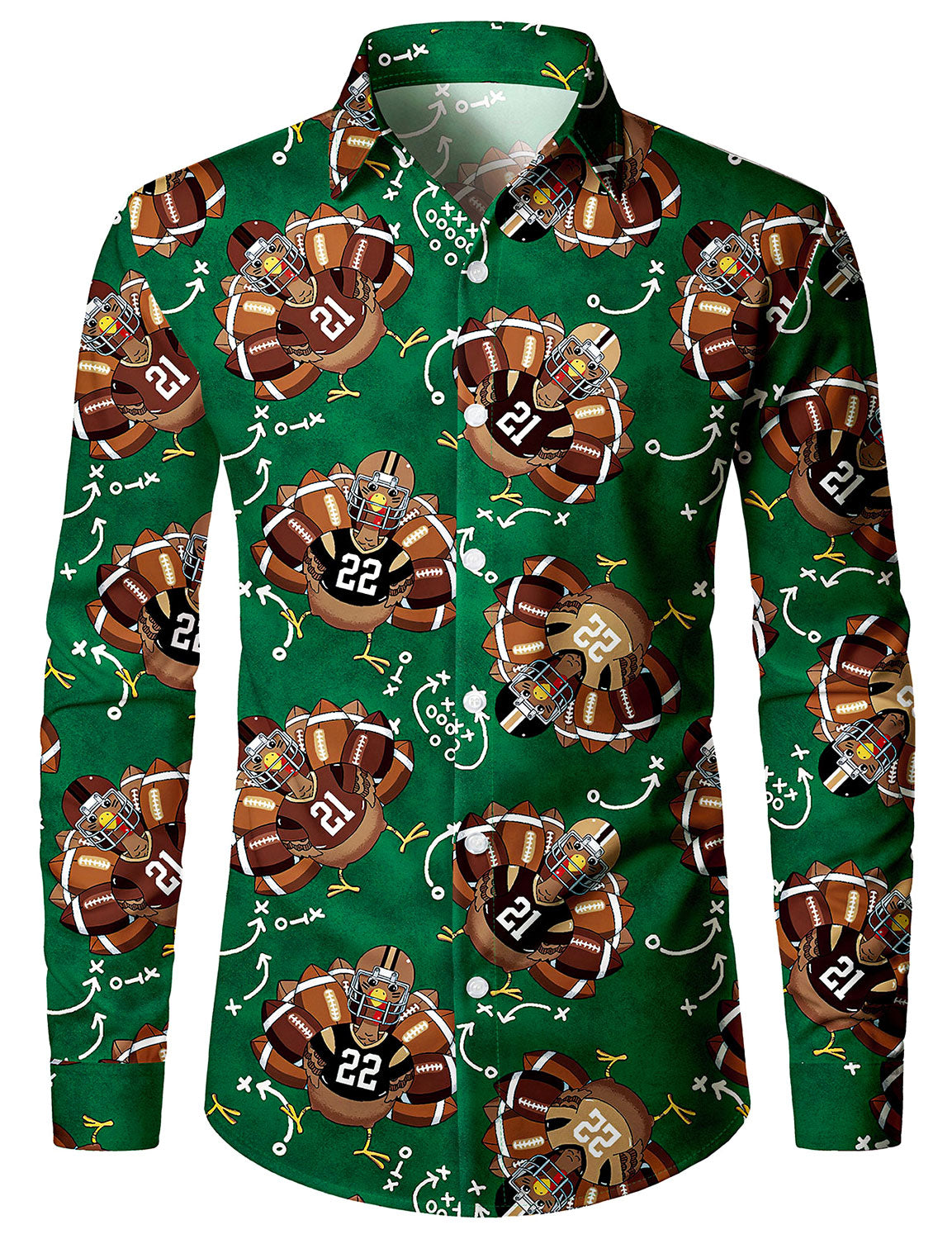 Men's Funny Thanksgiving Turkey Football Holiday Green Button Long Sleeve Shirt
