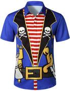 Men's Pirate Skull Costume Art Dark Blue Caribbean Cruise Themed Party Halloween Short Sleeve Shirt