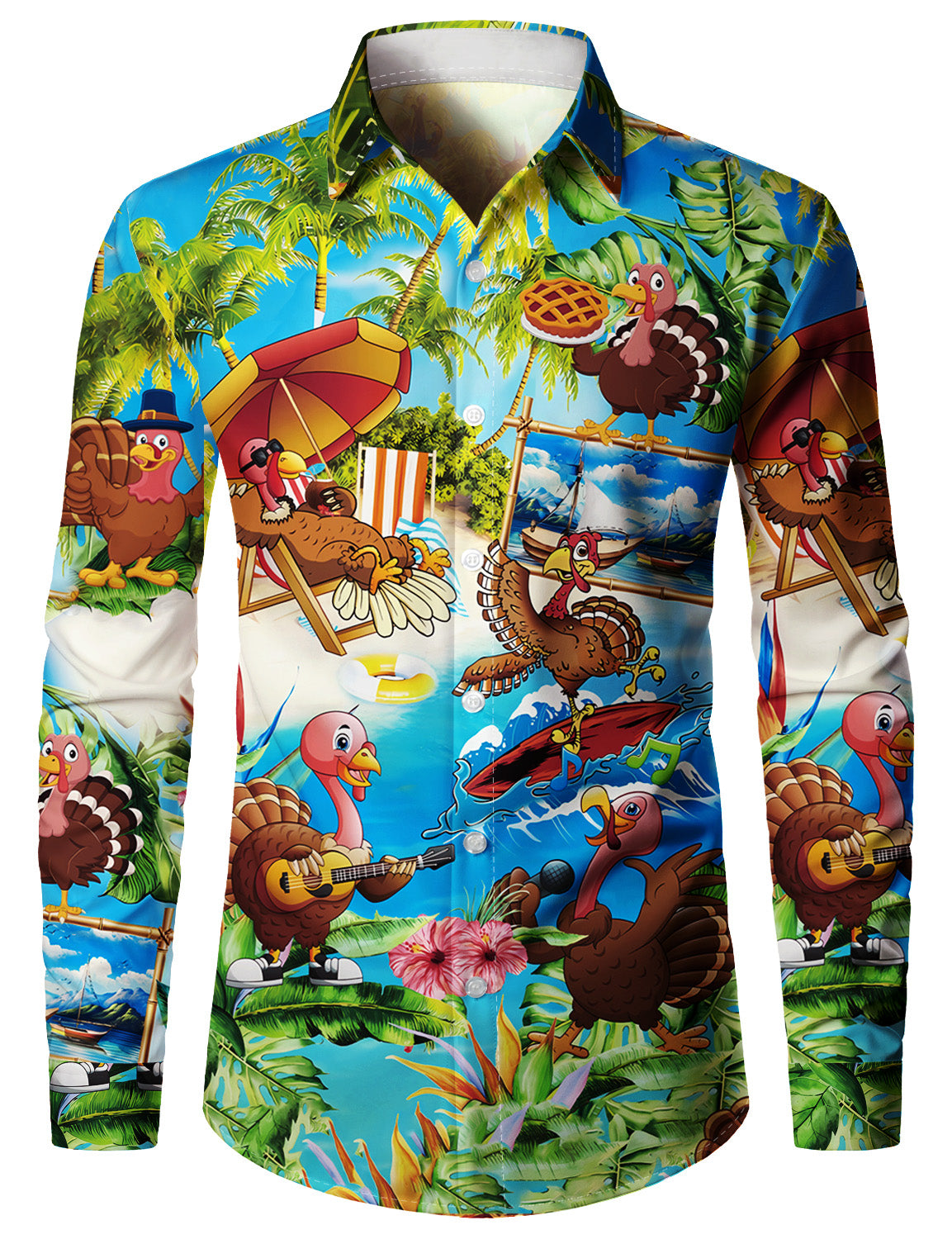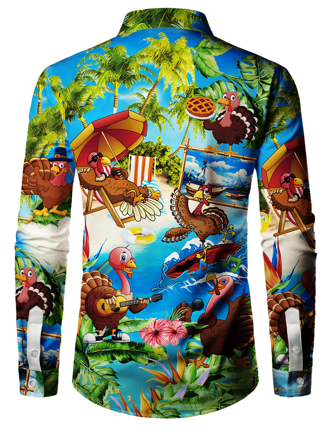 Men's Thanksgiving Turkey Button Up Hawaiian Thankful Vacation Long Sleeve Shirt