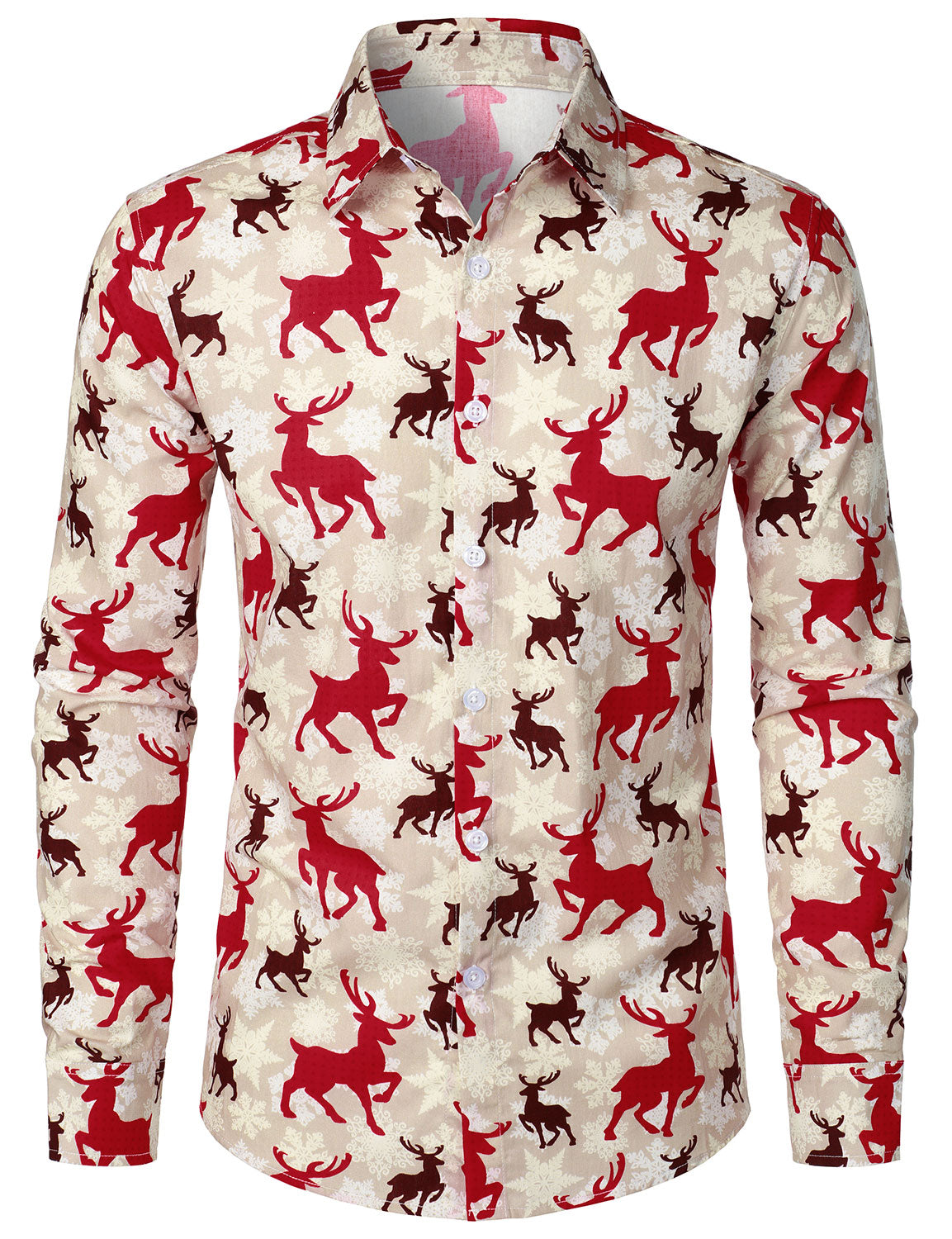 Men's Christmas Reindeer Cotton Holiday Long Sleeve Shirt