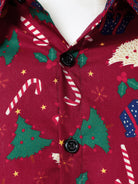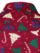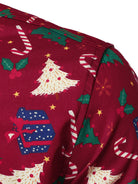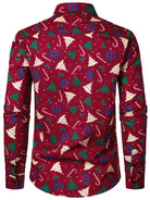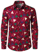 Men‘s Christmas Tree Print Red Cotton Long Sleeve Shirt