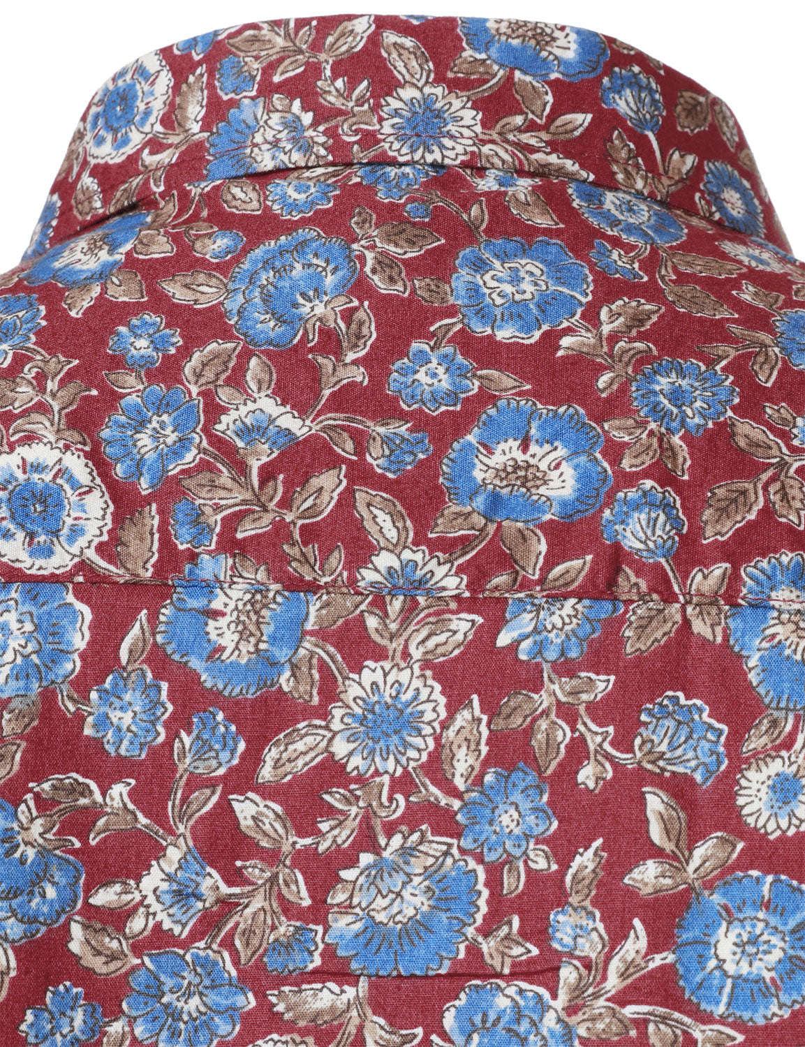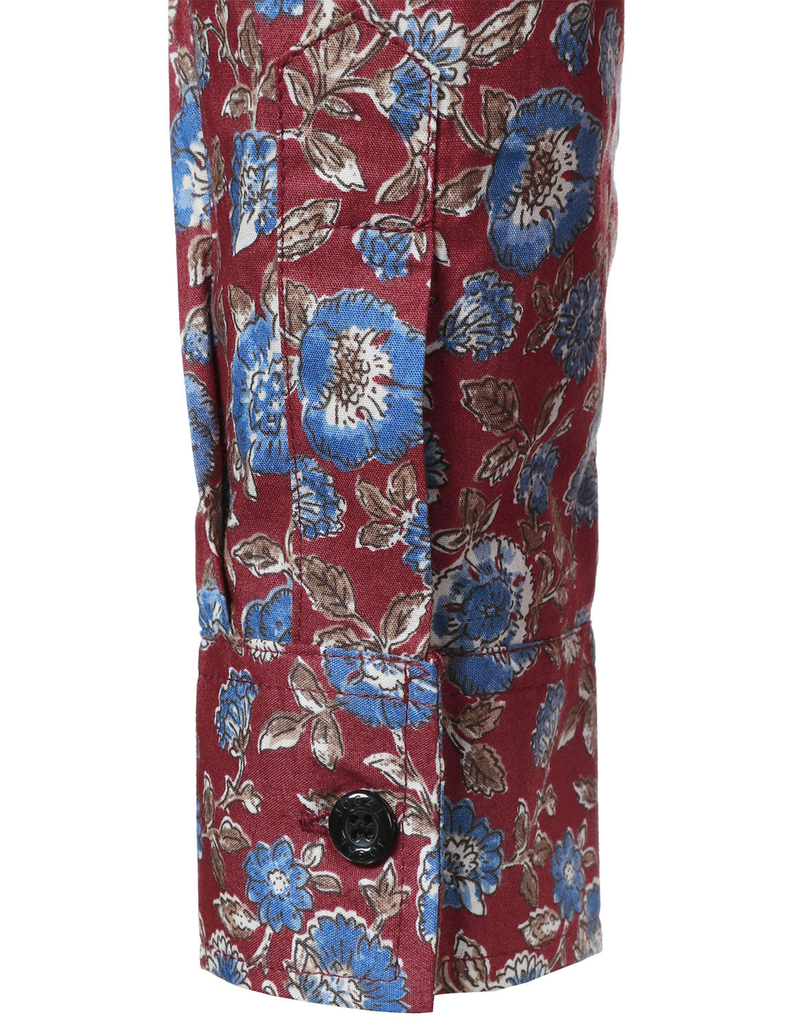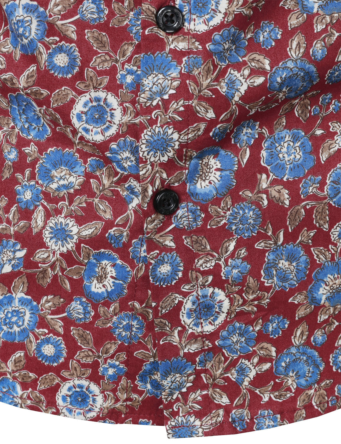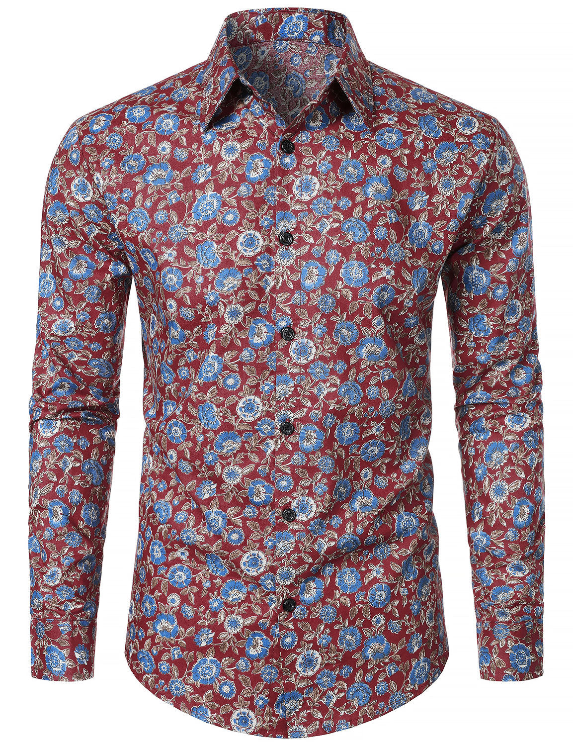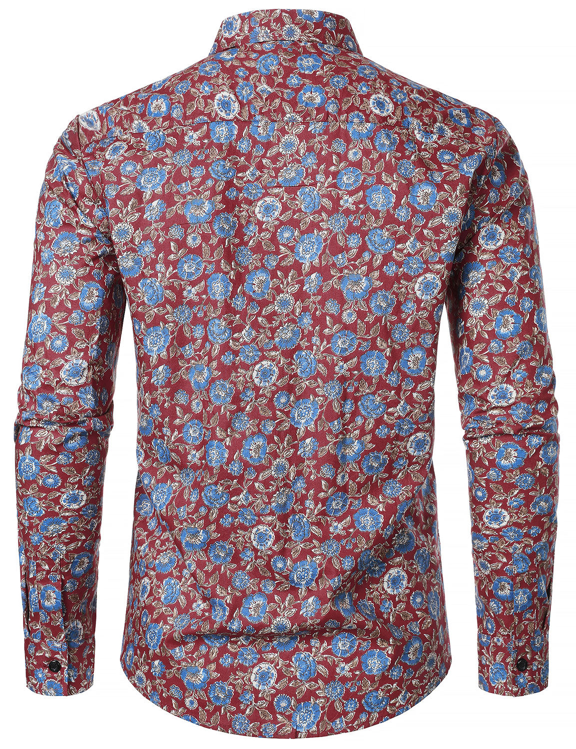 Men's 70s Breathable Cotton Floral Print Red Long Sleeve Shirt